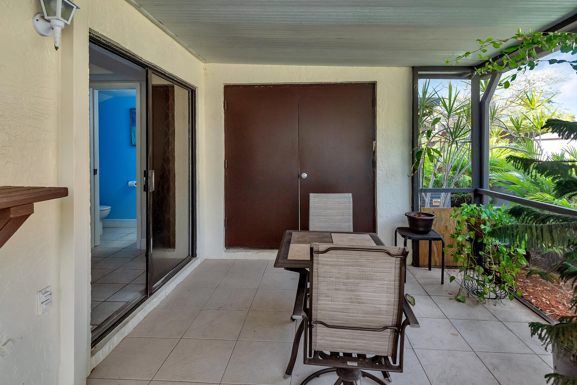 Come home to a shady, tree-lined street, in this charming townhouse with two large screened patios. Unit has recessed lighting, impact windows with cordless blinds, tiled first floor with half bath downstairs. Washer & dryer in unit. Laminate flooring upstairs. Second floor has main bedroom with en suite bath, second bedroom and full guest bathroom. Community has pool & racquetball courts.