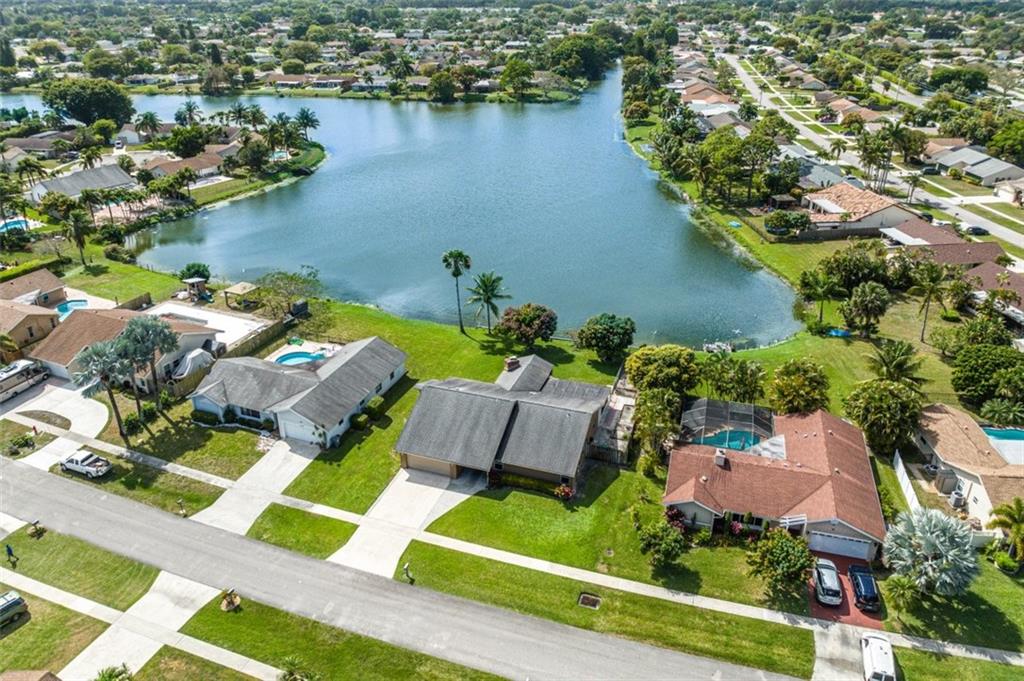 Spectacular lakefront property. You will fall in love with the magnificent lake view and natural lighting throughout the home. One of the largest lots and homes in the community. Enormous backyard with screened patio and extra parking. Brand new tile flooring. Entire home freshly painted. Upgraded smart appliances, smart electrical panel, recessed lighting, fireplace, beautiful lake wall, upgraded irrigation system for a private garden, hurricane impact windows, hurricane impact garage door, and much much more! Security cameras and system to convey. Great central location with A-rated schools. Community pool, playground with swings and slides, and four tennis courts.