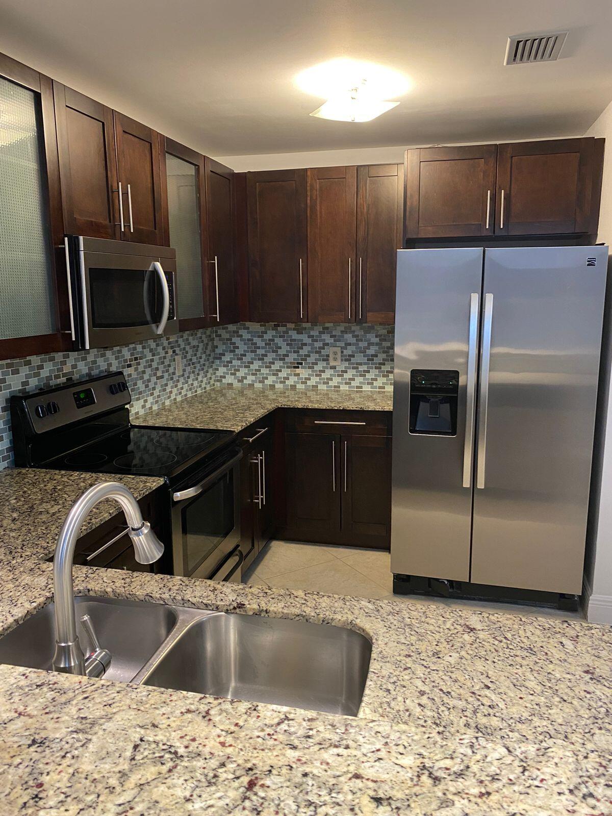 The only unit available in Castle Del Mar! Fantastic sort out location, very spacious, Vaulted ceilings, updated 2 level CORNER unit townhome in the heart of Boca Raton, 4 large bedrooms, 3 full bathrooms, mahogany L/wood floors, updated open kitchen, balcony off of the master bedroom, private fenced in patio. Conveniently located with easy access to I-95, Turnpike and close to shoppings, restaurants, coffee shops, YMCA, walking distance to Del Prado A+ schools and houses of Worship. TWO parking spots + guest parking. Community Pool. LOW HOA fee. All ages welcome. Pet friendly. The townhome is currently rented.
