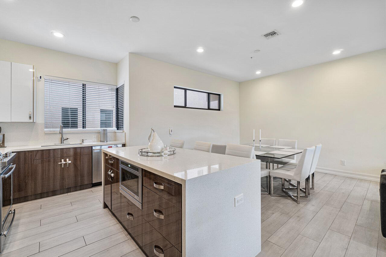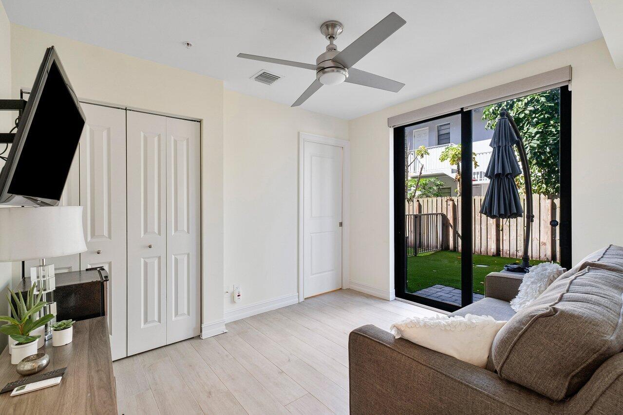 Elegant & Modern 3 story townhome in The Mandarin , a boutique Victoria Park community (built in 2018). This amazing layout features a full bedroom and bathroom downstairs, spacious two-car garage, expansive open-concept kitchen and living space on the 2nd floor, oversized master bedroom on the 3rd floor along with the 3rd bedroom and bathroom plus a bonus loft/den area & full laundry room upstairs. This exquisite property has impact windows and doors including a hurricane rated garage door, designer white lacquer cabinetry in the kitchen & bathrooms, high-end stainless steel Jenn-Aire appliances with gas range, fabulous Quartz countertops, light grey plank tile flooring, a private fenced yard with artificial grass turf and grilling area, custom motorized blinds throughout, tankless water