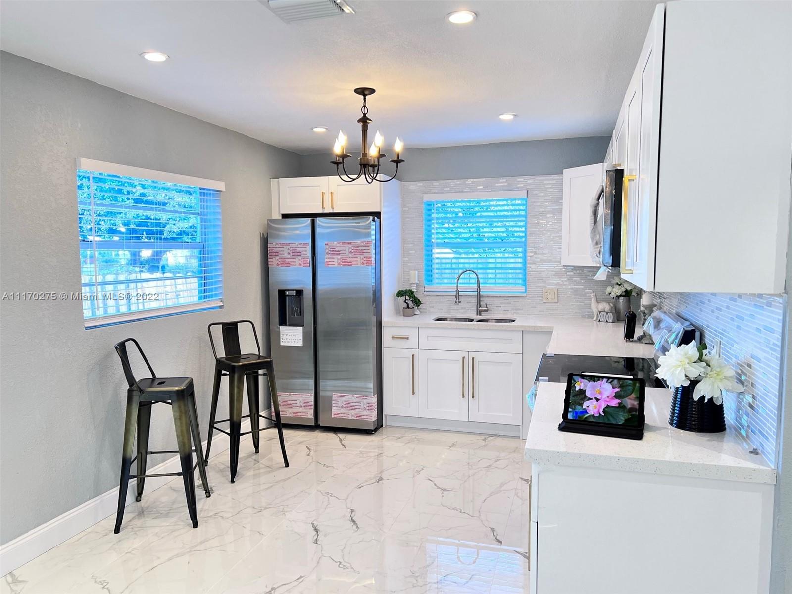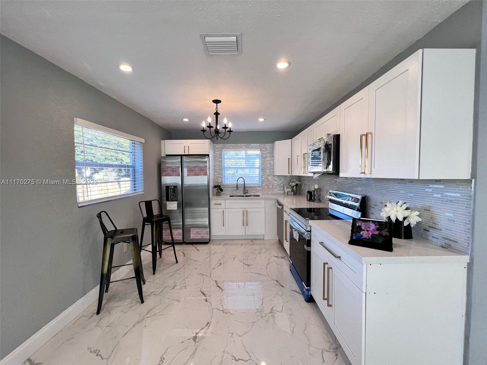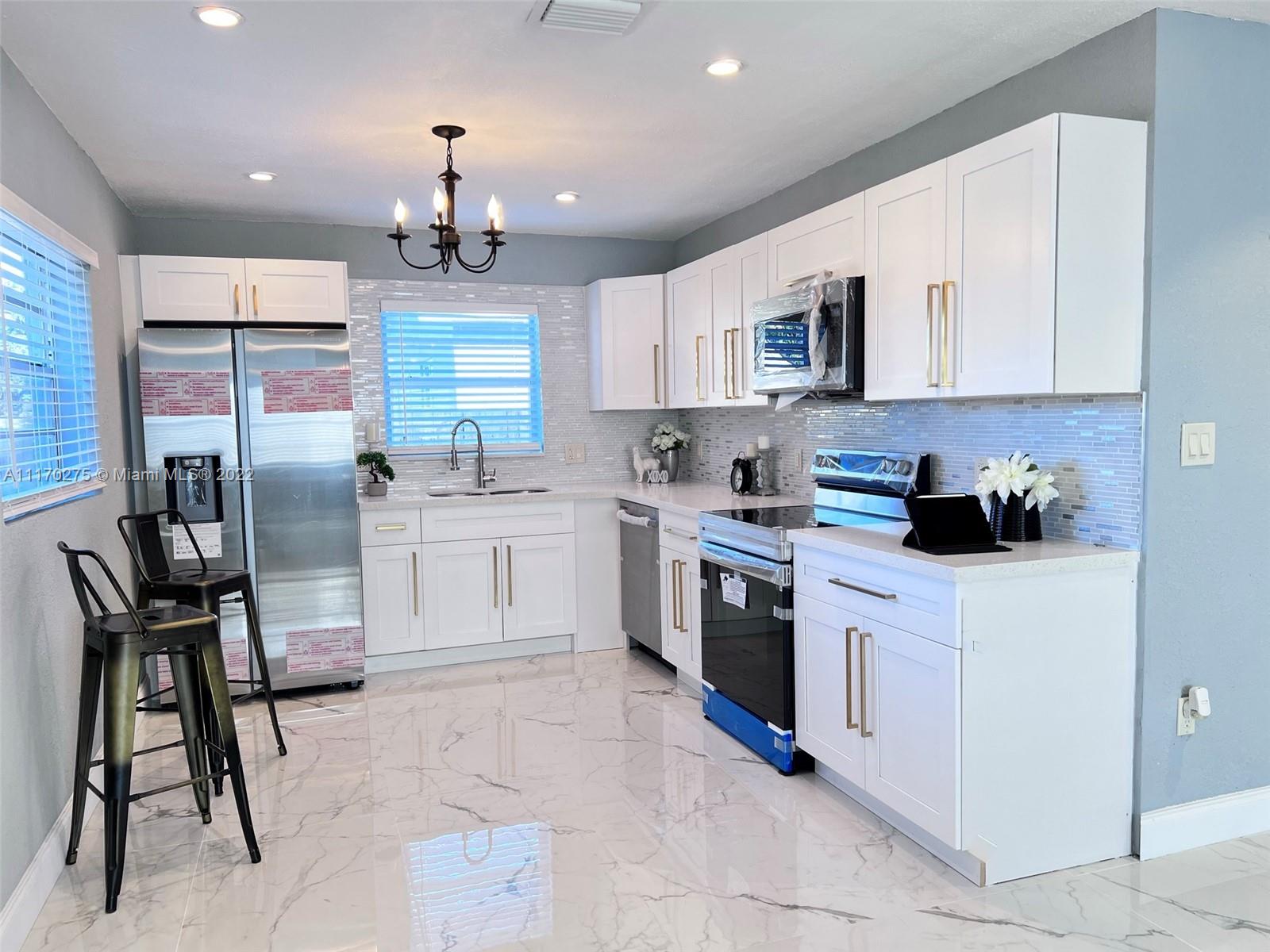 This unique GEM is in a league of its own in this area. Luminous elegant single family home full remodeled w/ 3 Bedrooms,2 Full Bathrooms. New Roof is done with permit. New Water heater.New Plumbing and Electric fixtures. 2 car Garage.New interior and exterior doors.New hard wood vanities w/ glass doors in bathrooms.New Tile Flooring through home & Wood laminate in bedrooms.New Kitchen with quartz countertop on soft closing hard wood cabinets W/New SS Appliances.New full-size Washer& Dryer.New ceiling drywall.New Electrical wiring in Kitchen,bathrooms. New Landscaping.New Smoke detectors.House. Freshly painted interior & exterior building. A/C is 2017 and works properly. Fully Fence backyard.Centrally located in Heart of Hollywood.