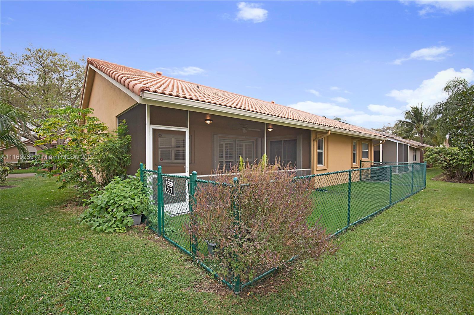 Nestled in the highly desired community of Brookside Isle where the streets are lined with mature trees, you will find this perfect home to call your own. Enter through the front door & your greeted by the vaulted ceilings. Neutral tile throughout the living areas & bedrooms. Formal living room, dining room, updated eat-in kitchen w/ newer appliances. Interior laundry room. Recessed lighting. Plantation Shutters. Spacious rooms. Master features large walk-in closet w/ built-ins. Screened patio. Fenced yard w/ artificial turf. Walk-able to the community pool & schools nearby. Perfect location surrounded by Coral Springs parks, skate park, splash pad & close to downtown Coral Springs. Low HOA of $185/m includes lawn care & community pool. Pet friendly. Hurricane Shutters & much more!