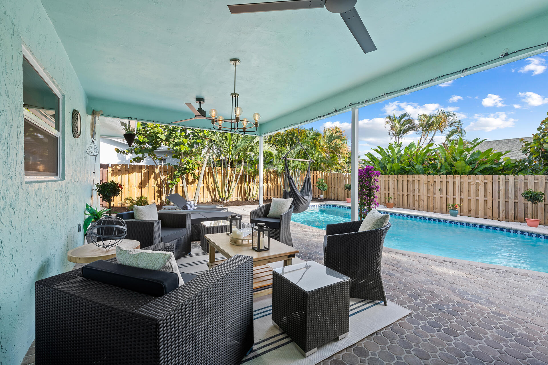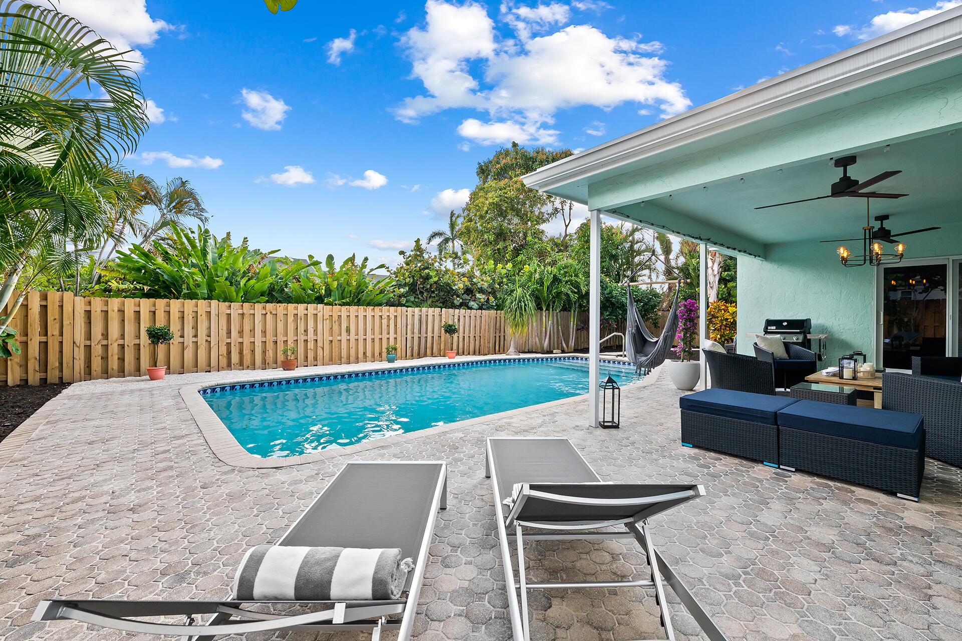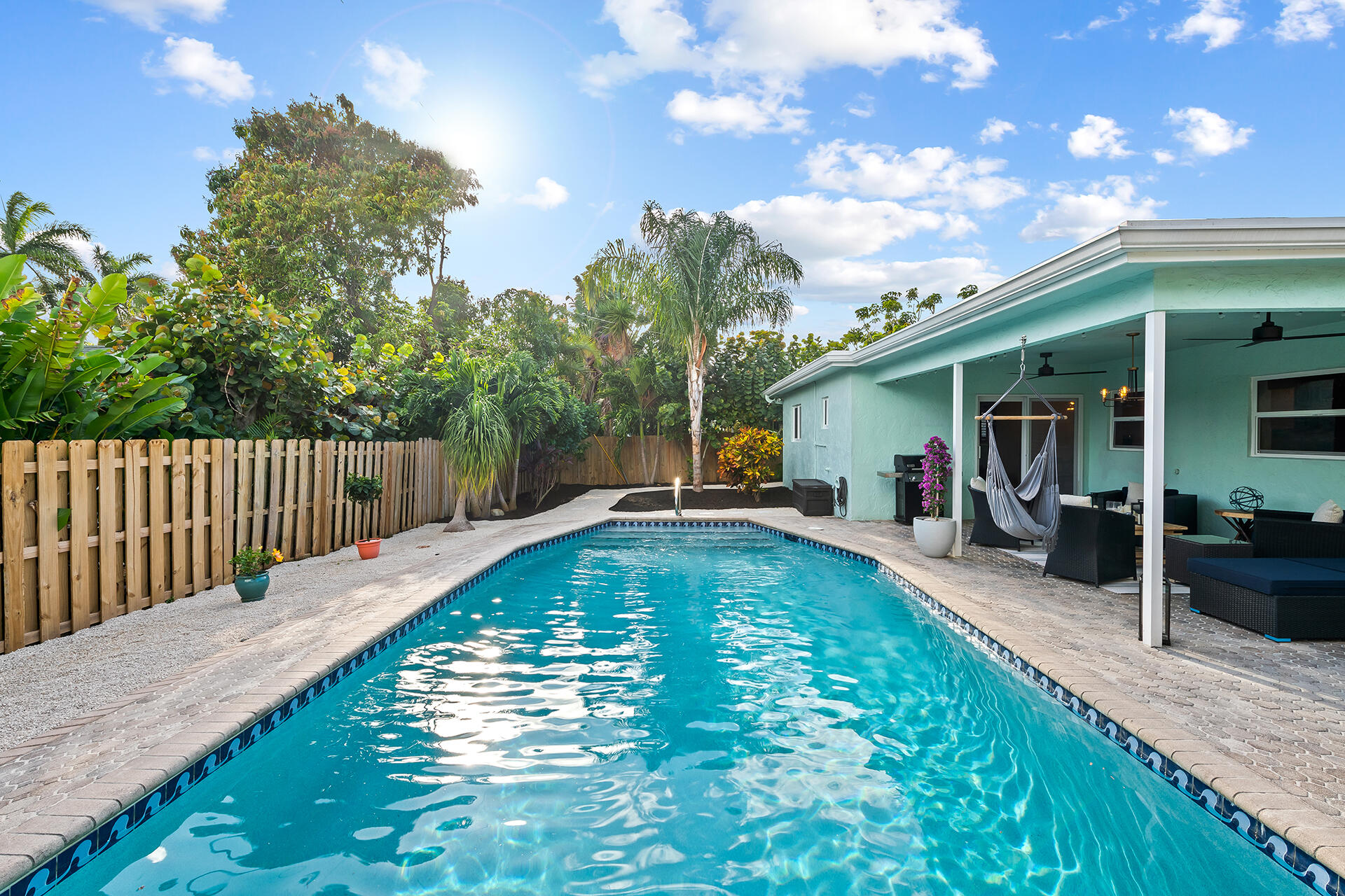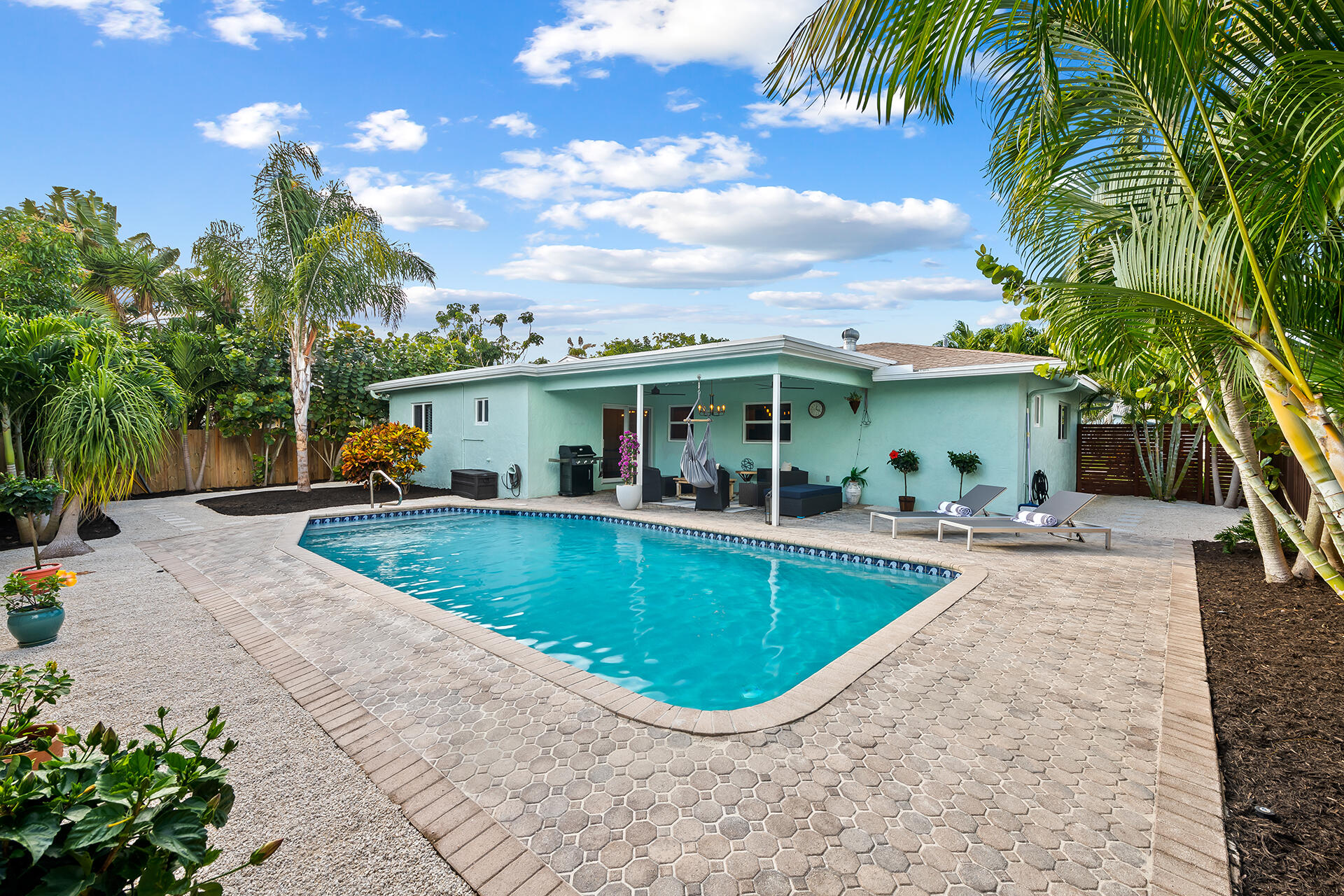 Lowest priced RENOVATED home in East Boca. METICULOUSLY MAINTAINED. Exquisitely LANDSCAPED TROPICAL OASIS. OPEN FLOOR PLAN. Well-appointed kitchen flows between the living room, breakfast bar and dining room. Sliding doors invite you into the Lanai and outdoor entertainment. Large RESORT STYLE POOL. Full IMPACT WINDOWS, GARAGE and DOORS. SOLID WOOD interior DOORS. LUXURY vinyl plank FLOORING. No Popcorn ceiling and textured walls removed. NEW level 5 finished walls, electrical receptacles, lighting, fans, fixtures, and PLANTATION SHUTTERS throughout. NEW irrigation and pool motor. NEW SMART HOME: W/D, Nest thermostat, Yale Lock, Hello doorbell and Nest Protect Smoke/CO Alarm. 1 MILE to the beautiful BEACHES. Nestled between Atlantic Ave and Mizner's shops & restaurants. NO HOA. A+ SCHOOLS