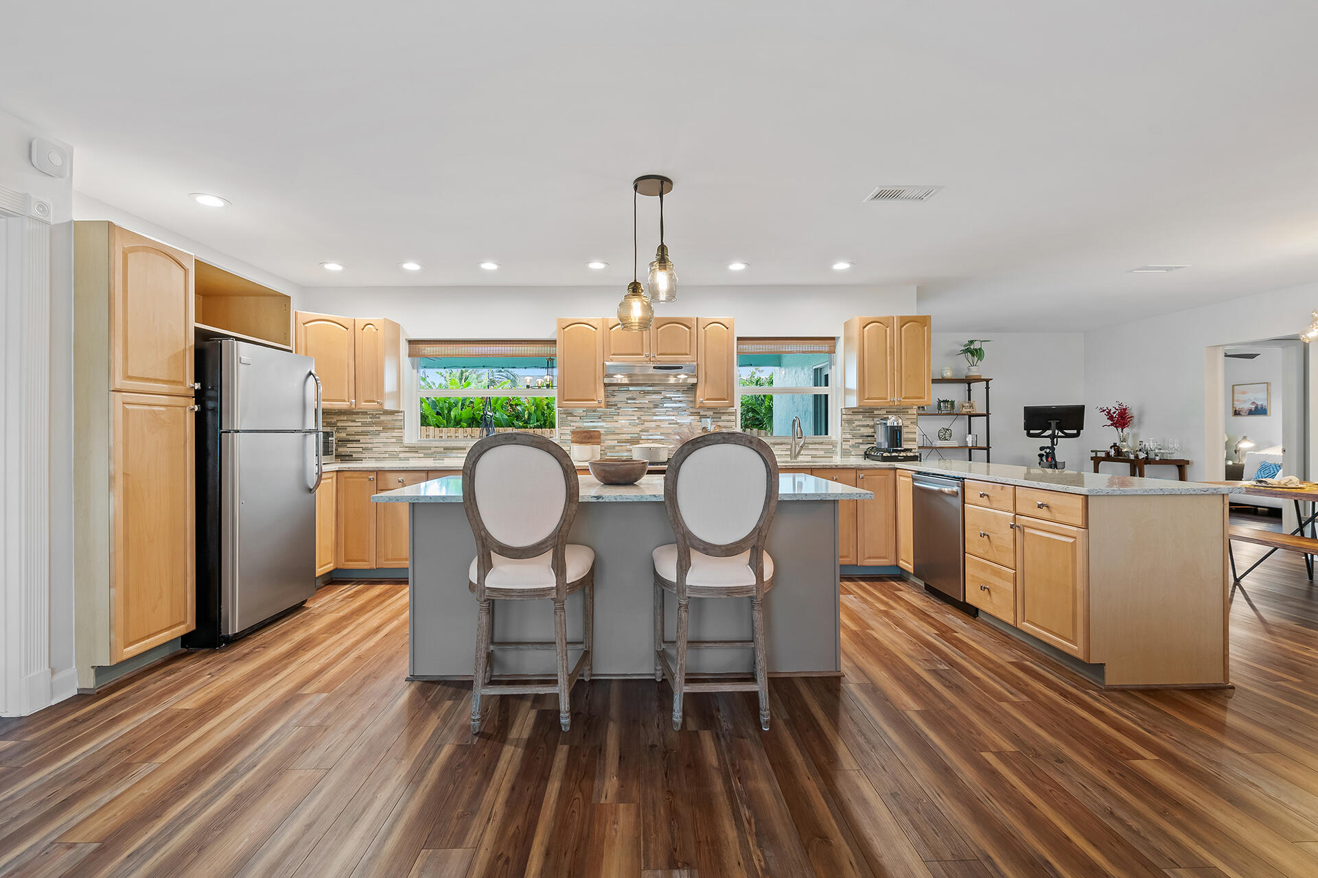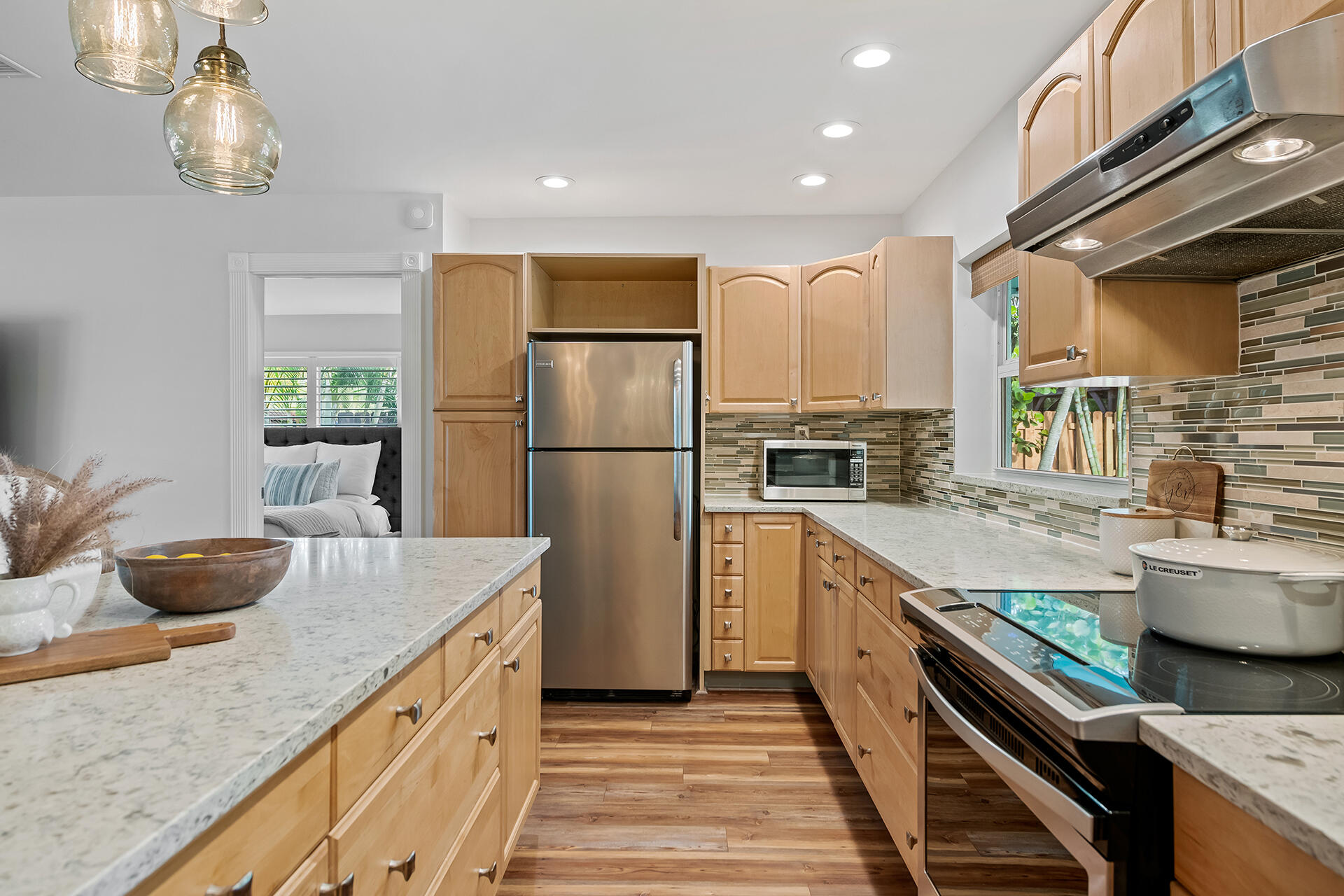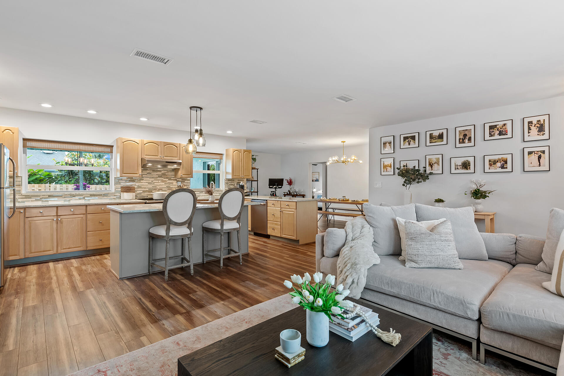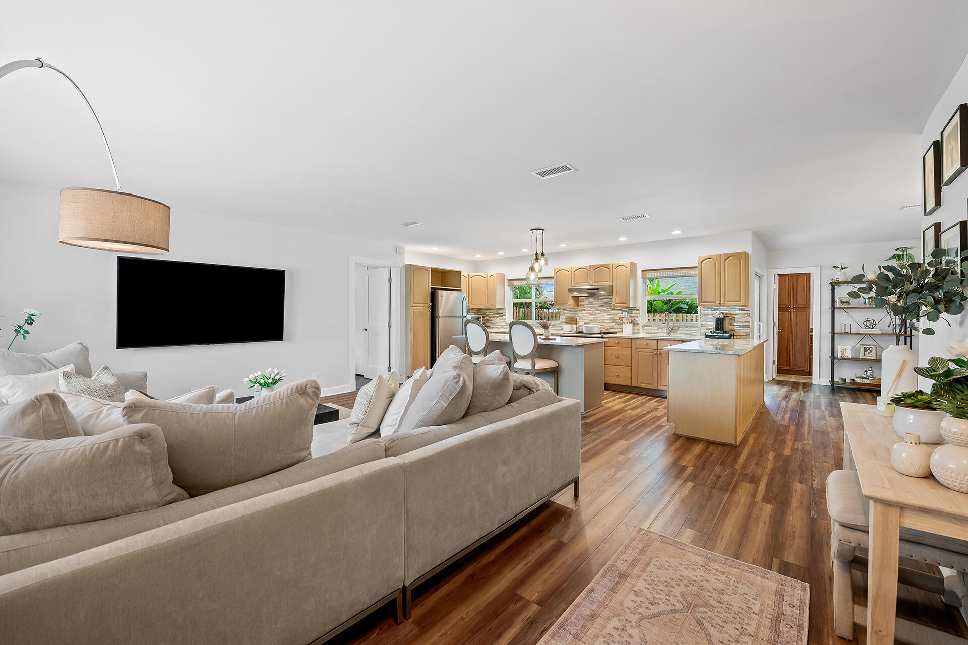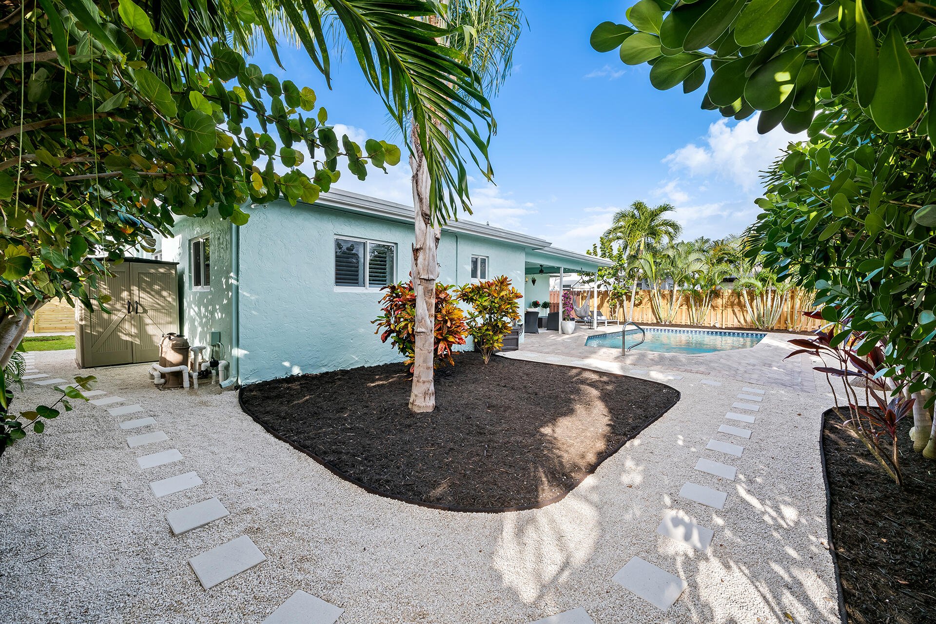 Lowest priced RENOVATED home in East Boca. METICULOUSLY MAINTAINED. Exquisitely LANDSCAPED TROPICAL OASIS. OPEN FLOOR PLAN. Well-appointed kitchen flows between the living room, breakfast bar and dining room. Sliding doors invite you into the Lanai and outdoor entertainment. Large RESORT STYLE POOL. Full IMPACT WINDOWS, GARAGE and DOORS. SOLID WOOD interior DOORS. LUXURY vinyl plank FLOORING. No Popcorn ceiling and textured walls removed. NEW level 5 finished walls, electrical receptacles, lighting, fans, fixtures, and PLANTATION SHUTTERS throughout. NEW irrigation and pool motor. NEW SMART HOME: W/D, Nest thermostat, Yale Lock, Hello doorbell and Nest Protect Smoke/CO Alarm. 1 MILE to the beautiful BEACHES. Nestled between Atlantic Ave and Mizner's shops & restaurants. NO HOA. A+ SCHOOLS