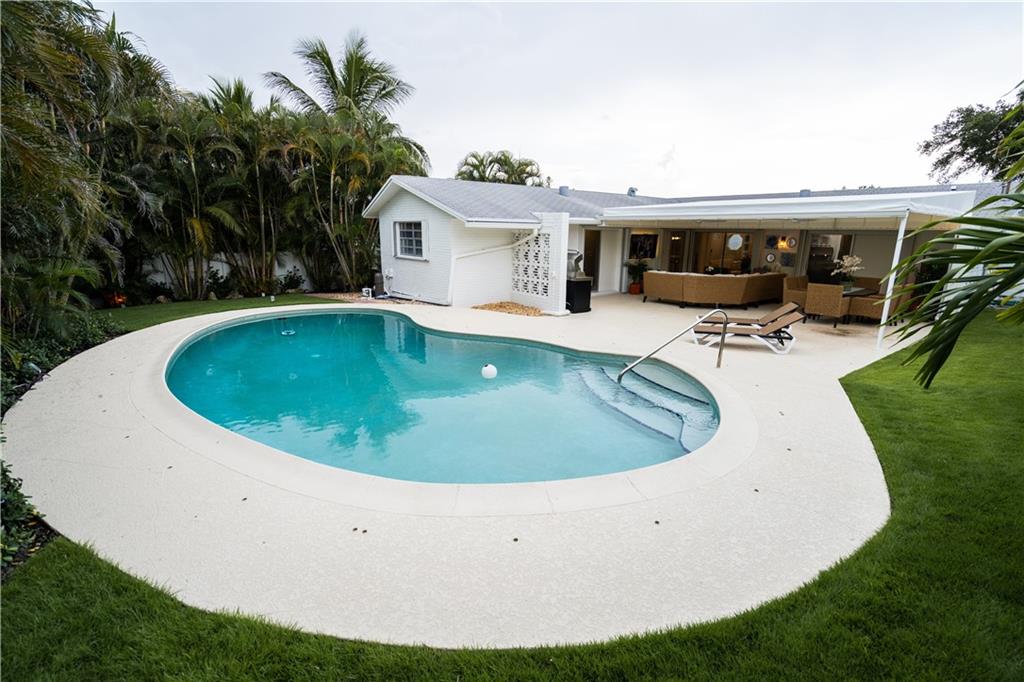 Great opportunity to own a pristine turnkey property in desirable East Boca Raton just 7 minutes to the Beach. Excellent investment property. This one-story home features terrazzo floors, a gourmet kitchen, custom side-by-side refrigerator, quartz countertops, private large tropical-landscaping backyard perfect for entertainment, free form heated swimming pool, Circular driveway, terrazzo floors throughout, and no HOA. Golden Fig Park and historic Old Floresta are within walking distance. You can not beat this location. Ask for a list of updates. Public tennis courts, library, Boca Raton Regional Hospital, restaurants, shopping, Mizner Park, and Royal Palm.