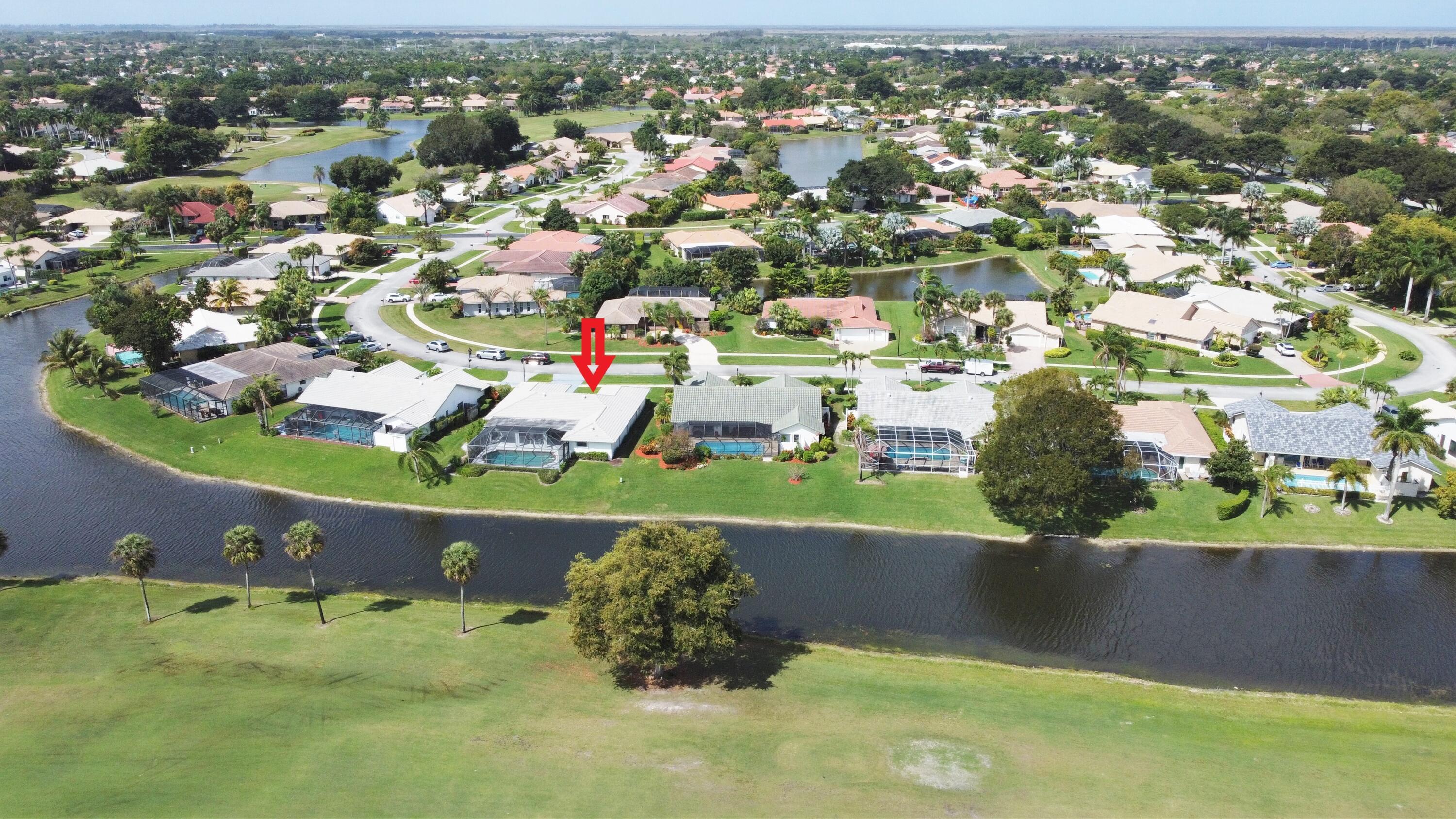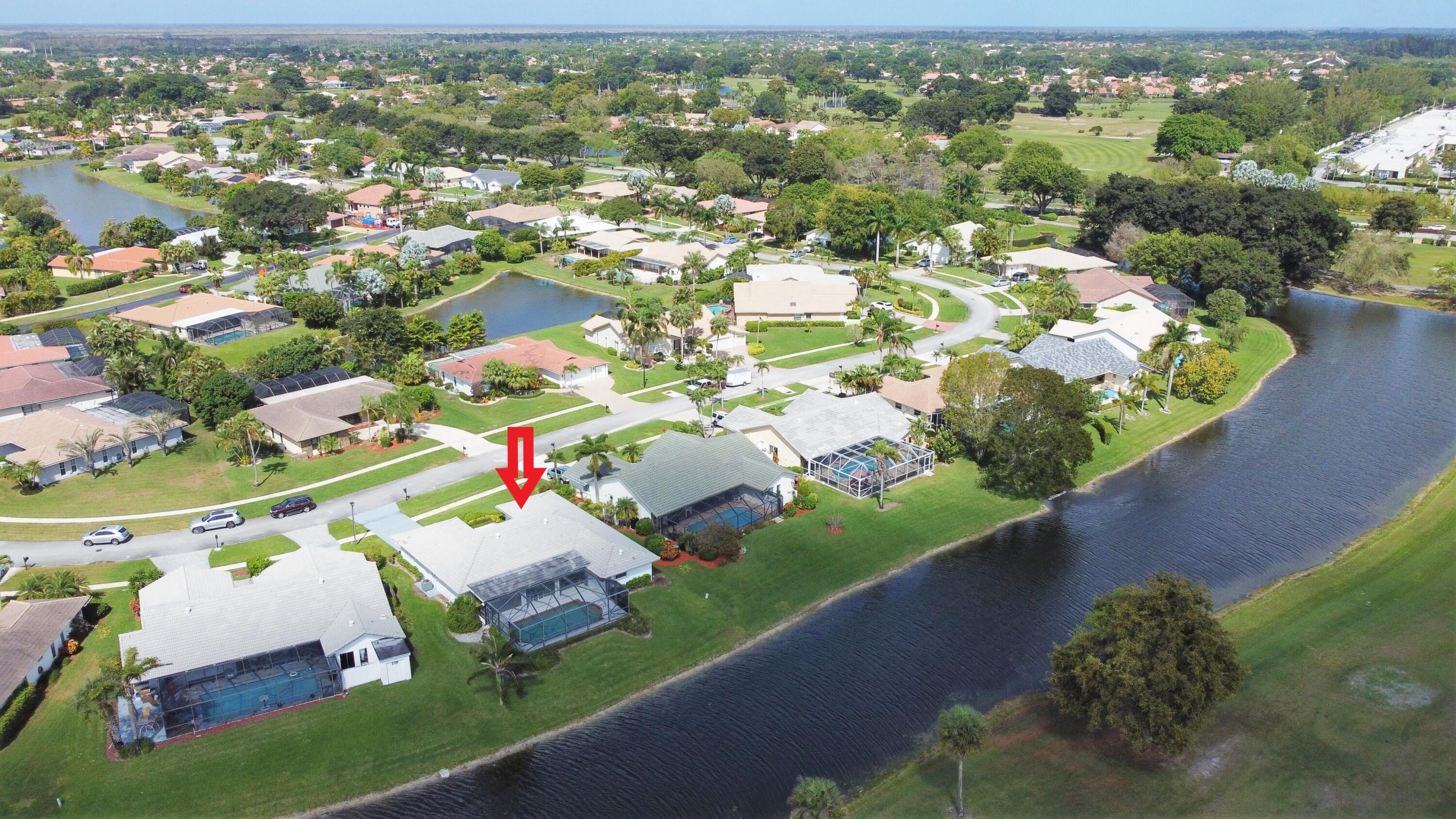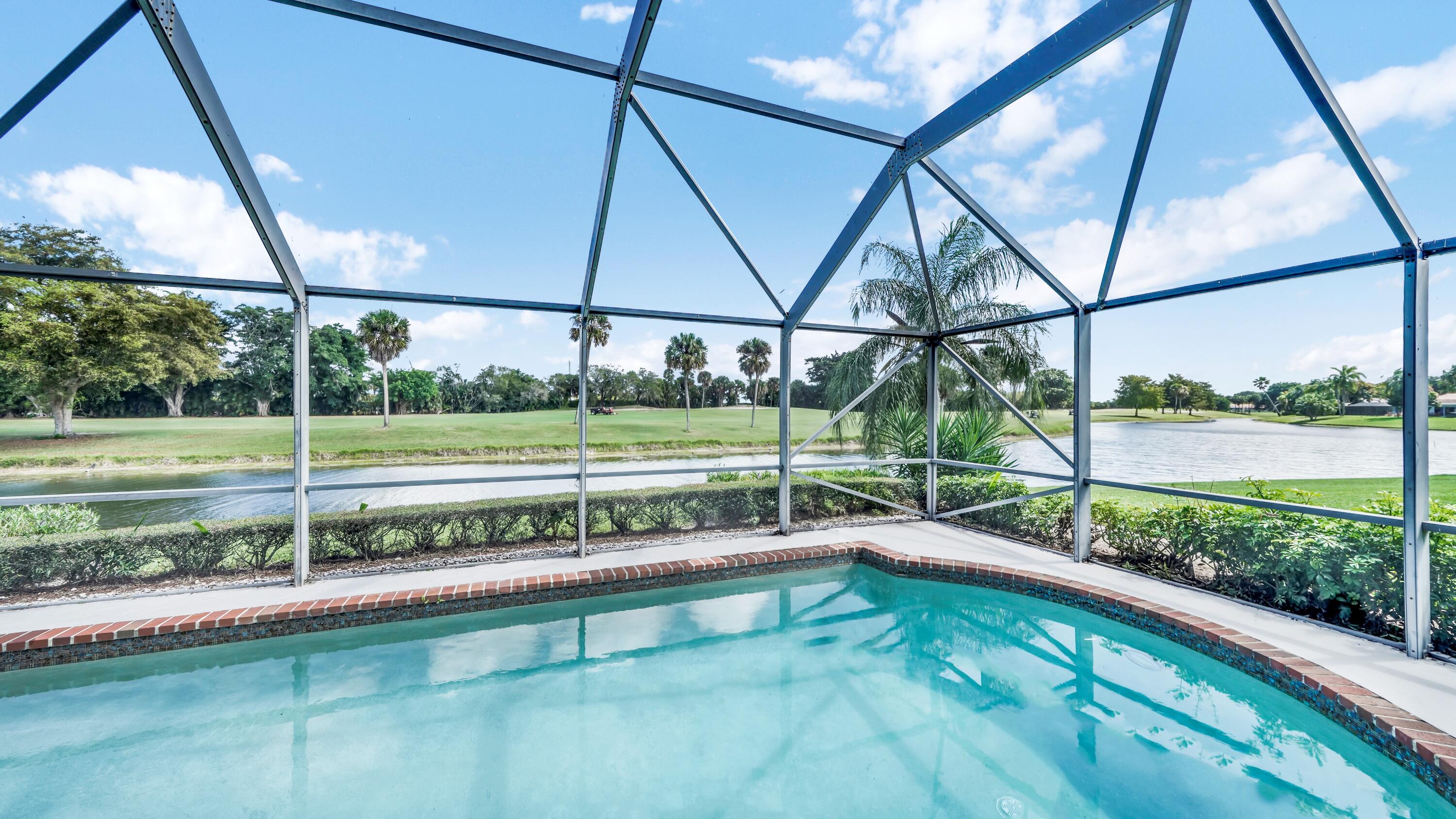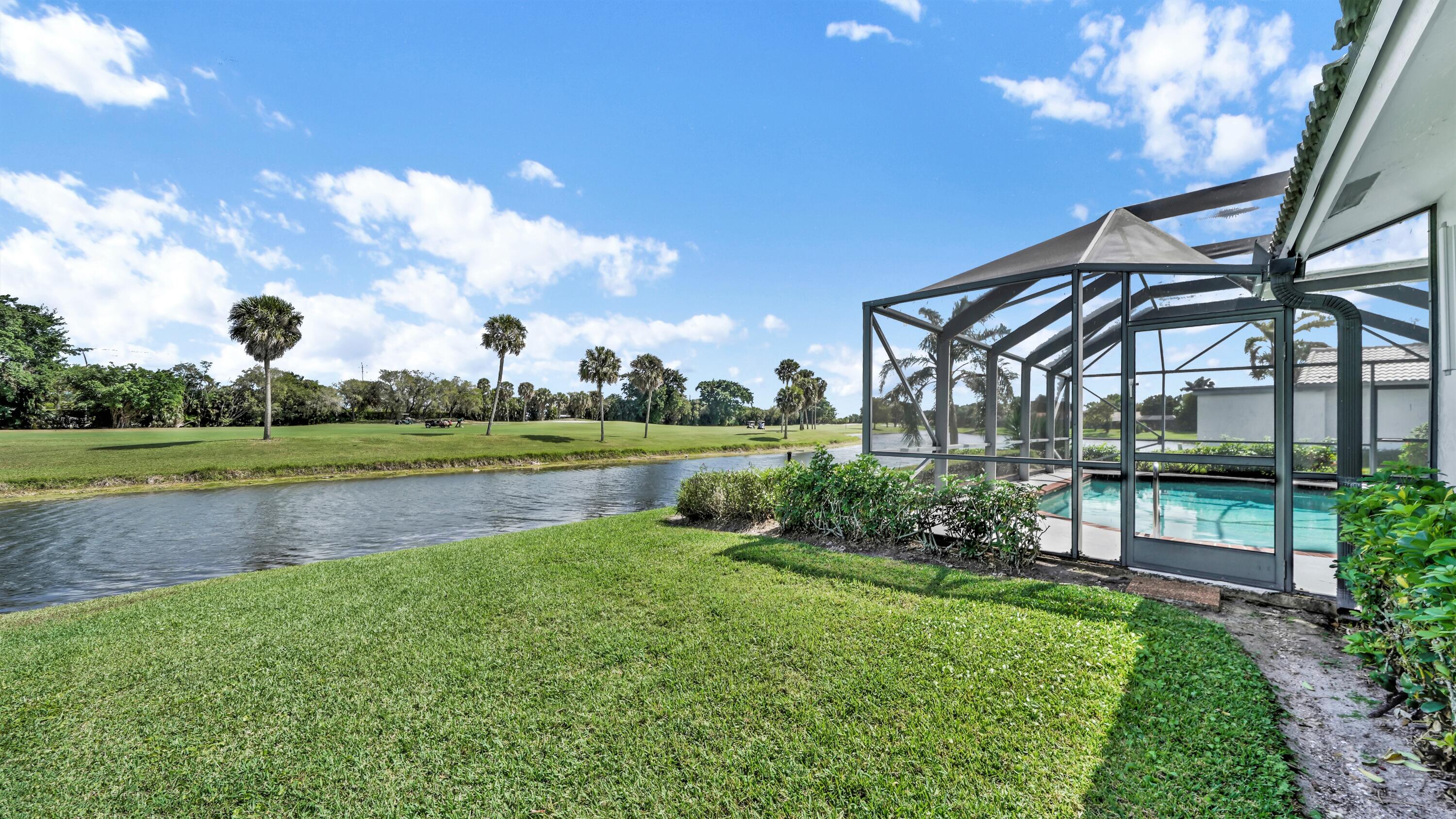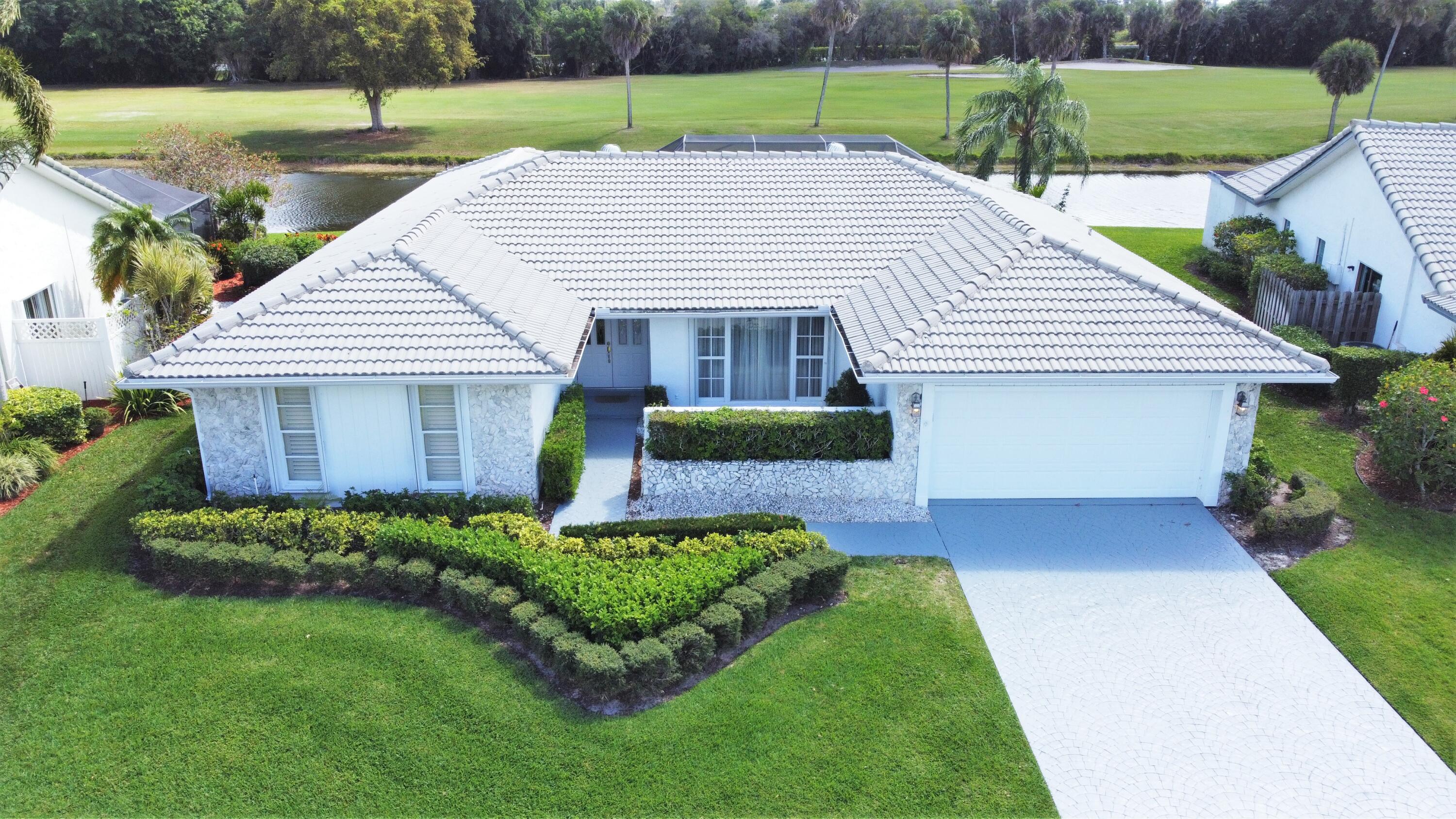Beautiful home in fabulous gated west Boca community! You're going to love the 180 degree WATER AND FAIRWAY VIEWS and the ability to play golf at a club without equity fees. This spacious one-story home has been lovingly cared for with many charming features: real HICKORY WOOD floors in most rooms, updated kitchen cabinets with Corian countertops and Corian deep sink. THREE tastefully remodeled full baths. Plantation shutters, neutral decor and closets galore add to the home's appeal. Check out the photos and room sizes and you will be impressed. Accordion hurricane shutters on windows and enclosing the entire porch. This home is located close to the entrance of the community. For more details about this home, local schools and Boca Greens Country Club, click here