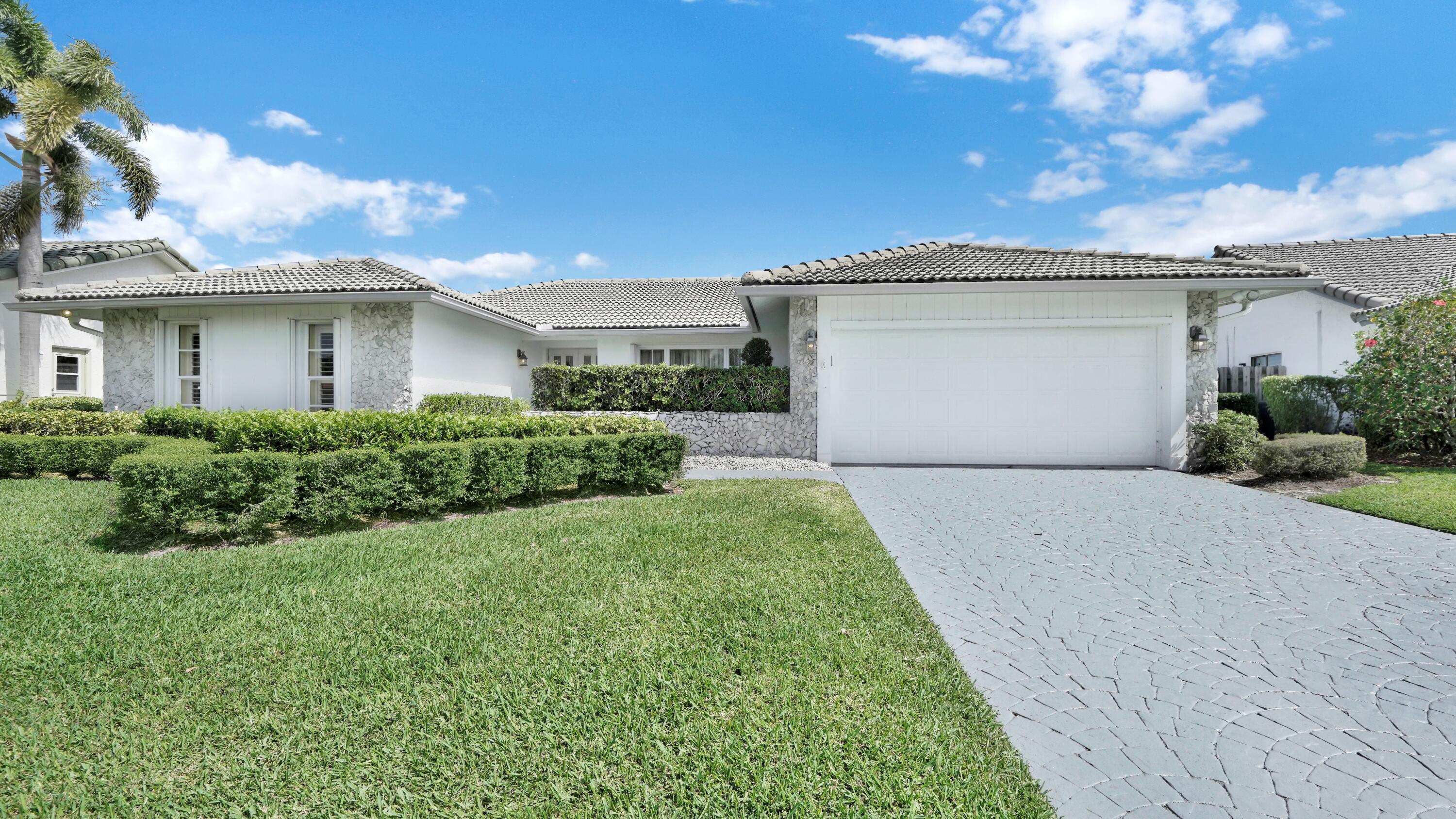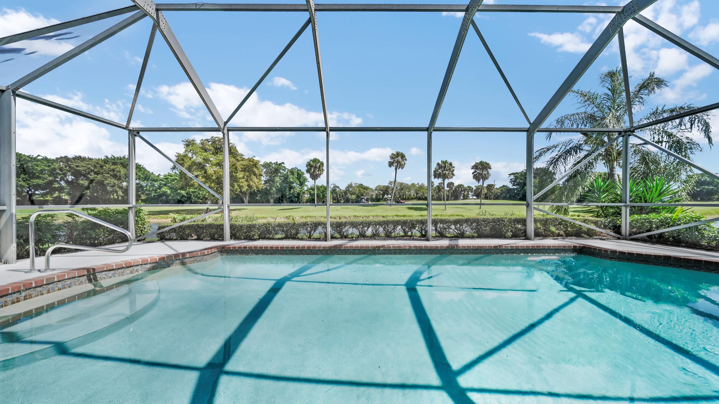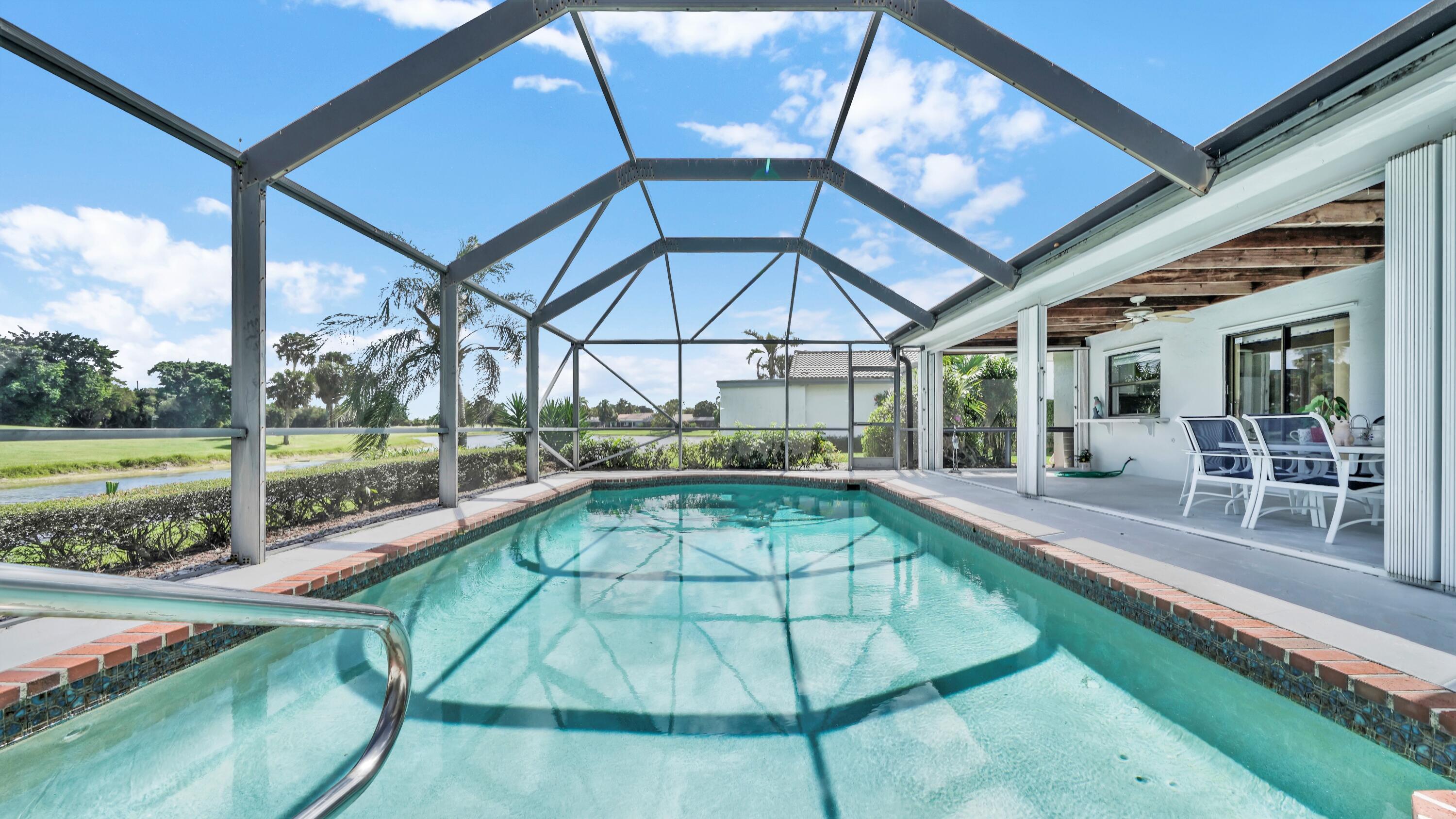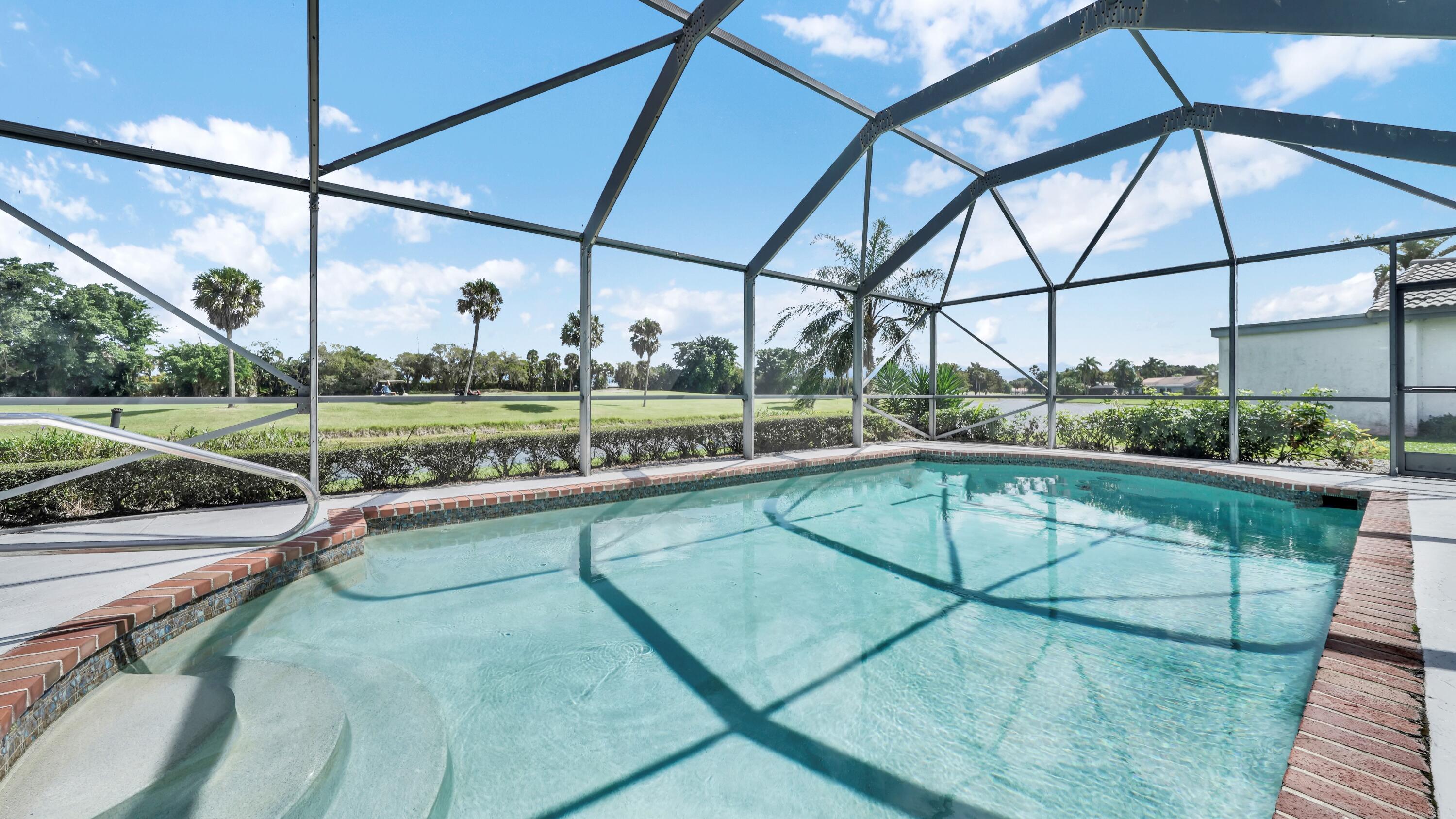 Beautiful home in fabulous gated west Boca community! You're going to love the 180 degree WATER AND FAIRWAY VIEWS and the ability to play golf at a club without equity fees. This spacious one-story home has been lovingly cared for with many charming features: real HICKORY WOOD floors in most rooms, updated kitchen cabinets with Corian countertops and Corian deep sink. THREE tastefully remodeled full baths. Plantation shutters, neutral decor and closets galore add to the home's appeal. Check out the photos and room sizes and you will be impressed. Accordion hurricane shutters on windows and enclosing the entire porch. This home is located close to the entrance of the community. For more details about this home, local schools and Boca Greens Country Club, click here
