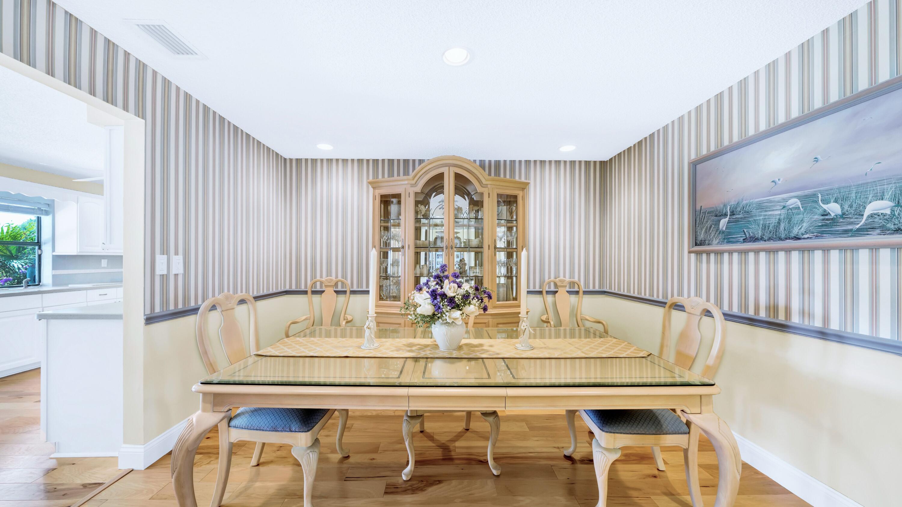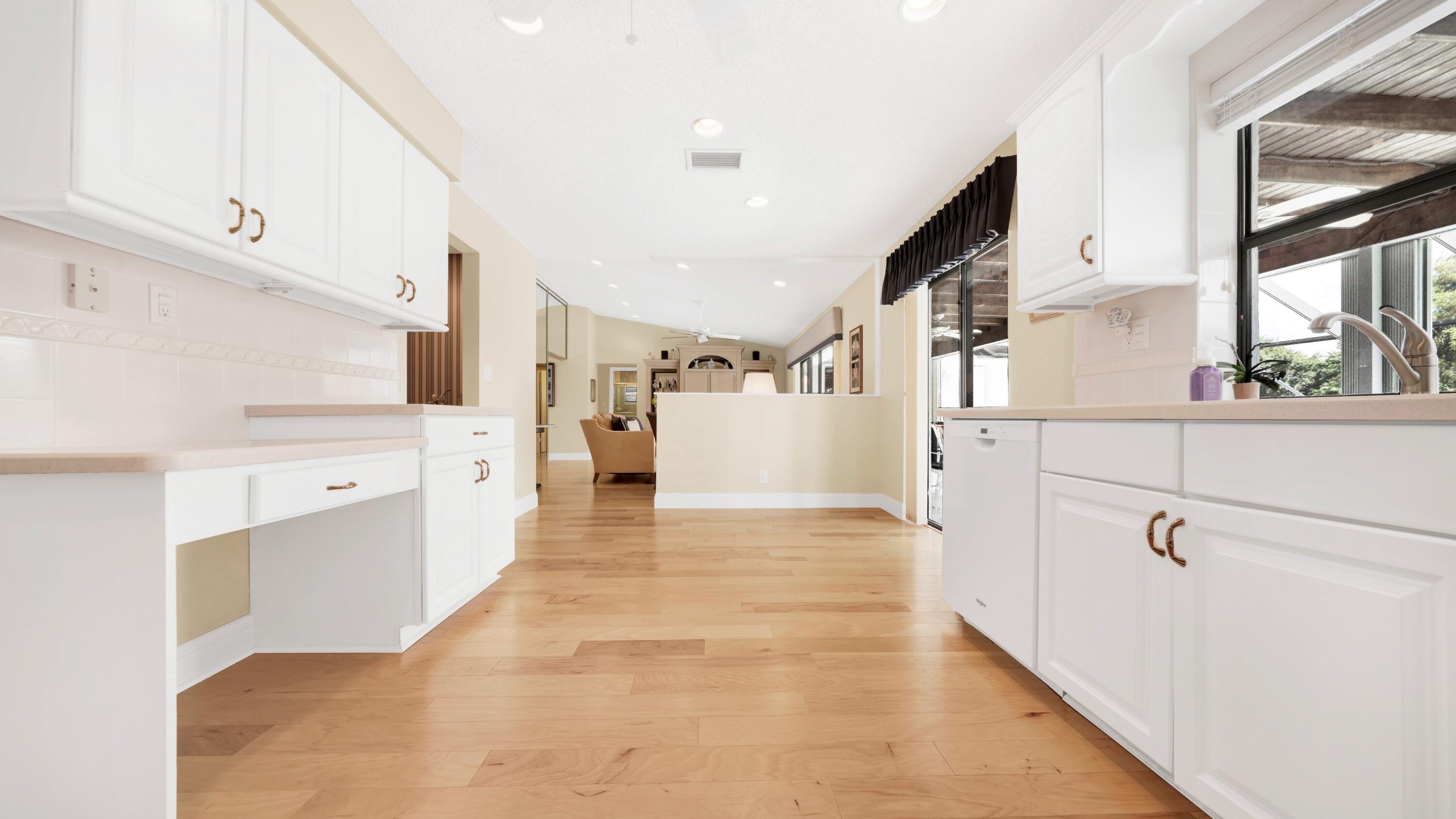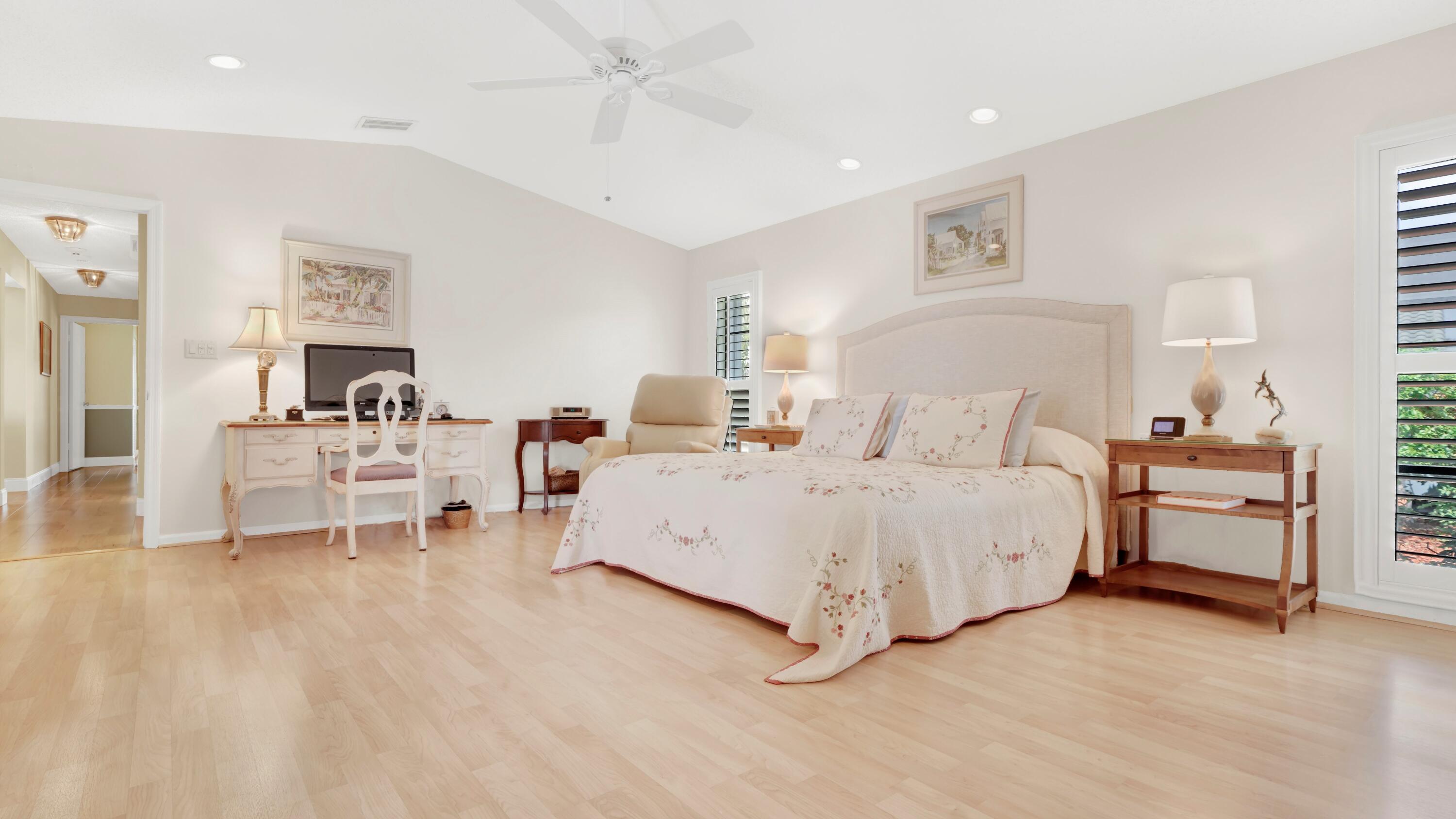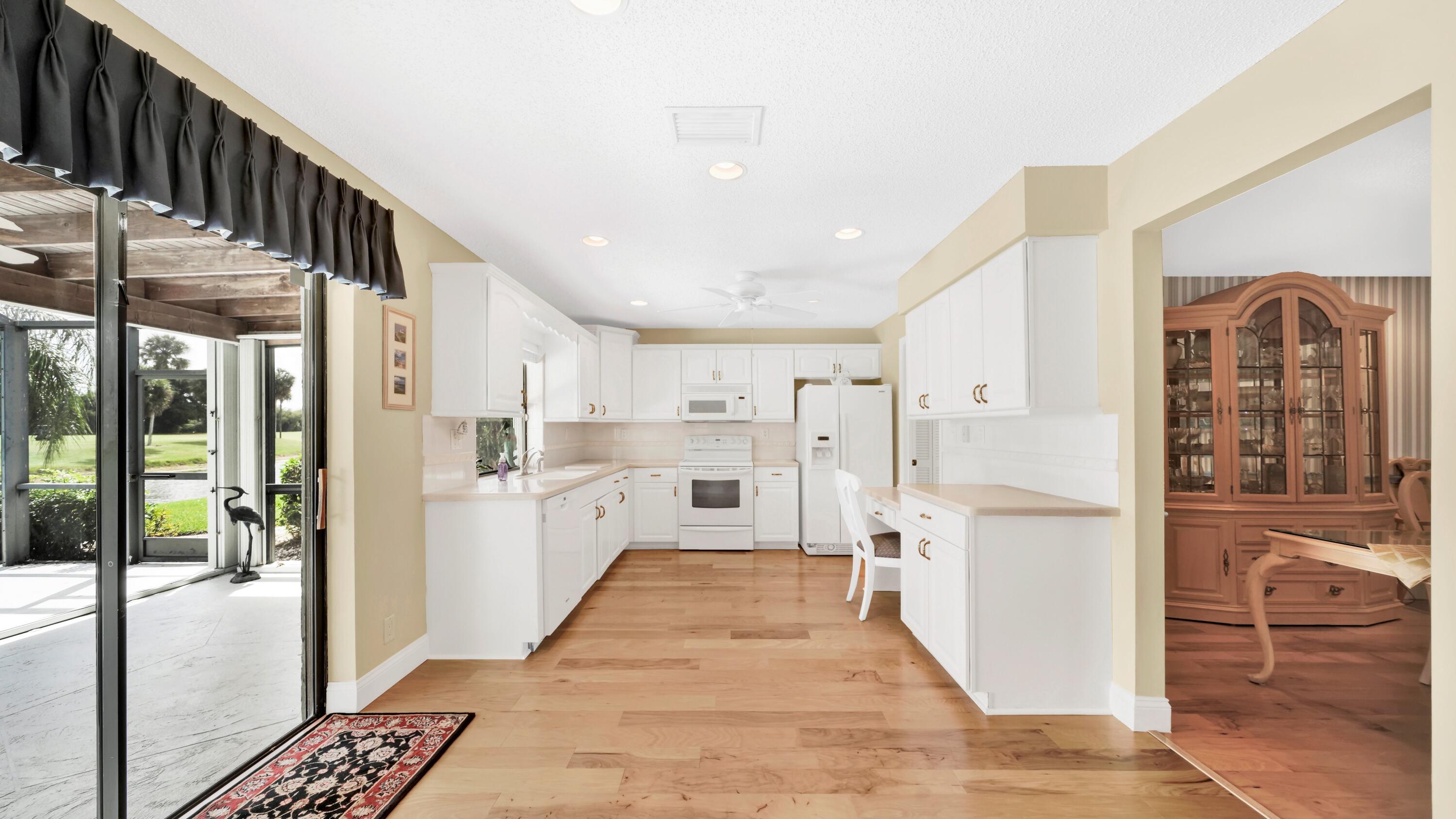 Beautiful home in fabulous gated west Boca community! You're going to love the 180 degree WATER AND FAIRWAY VIEWS and the ability to play golf at a club without equity fees. This spacious one-story home has been lovingly cared for with many charming features: real HICKORY WOOD floors in most rooms, updated kitchen cabinets with Corian countertops and Corian deep sink. THREE tastefully remodeled full baths. Plantation shutters, neutral decor and closets galore add to the home's appeal. Check out the photos and room sizes and you will be impressed. Accordion hurricane shutters on windows and enclosing the entire porch. This home is located close to the entrance of the community. For more details about this home, local schools and Boca Greens Country Club, click here