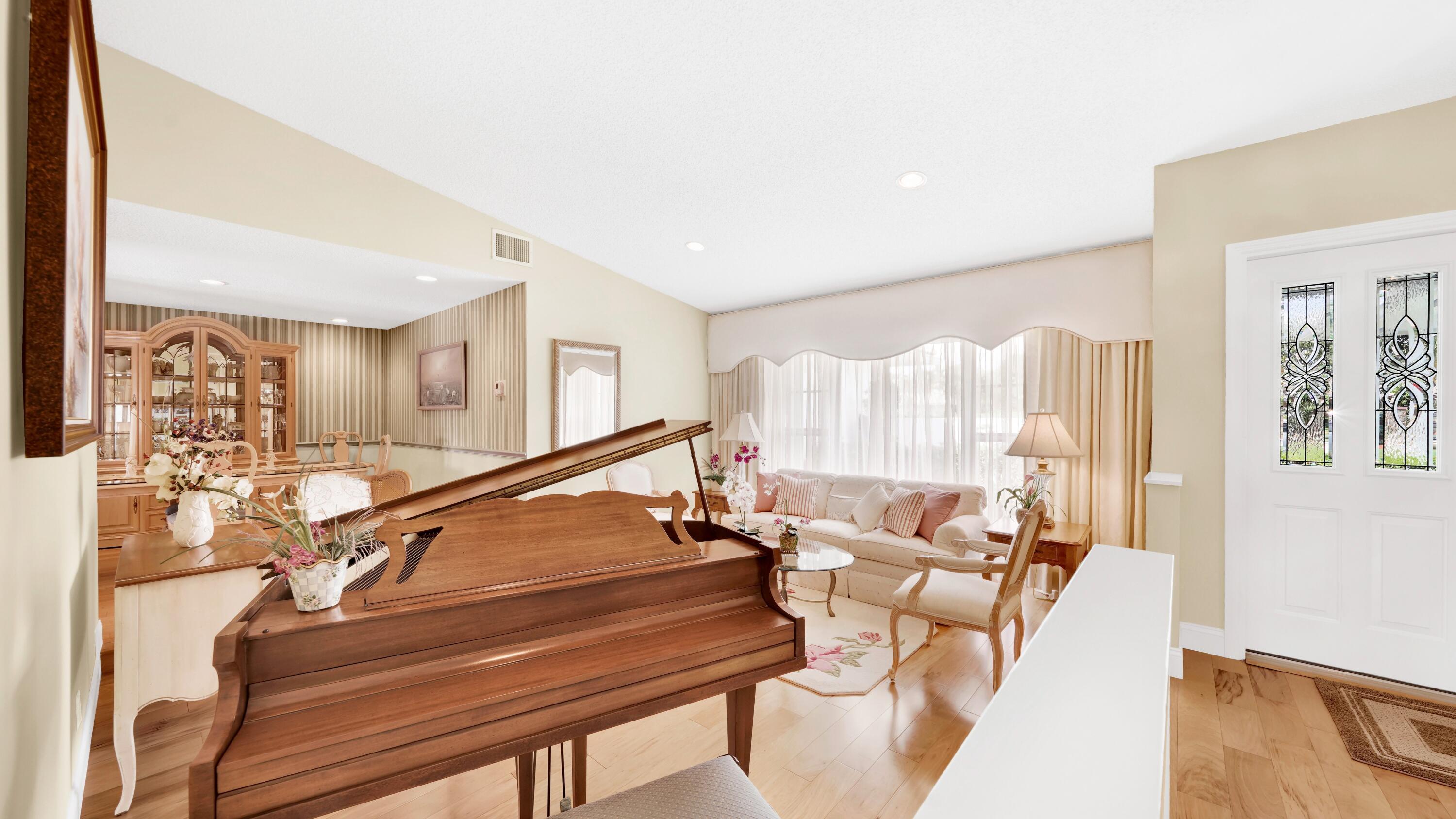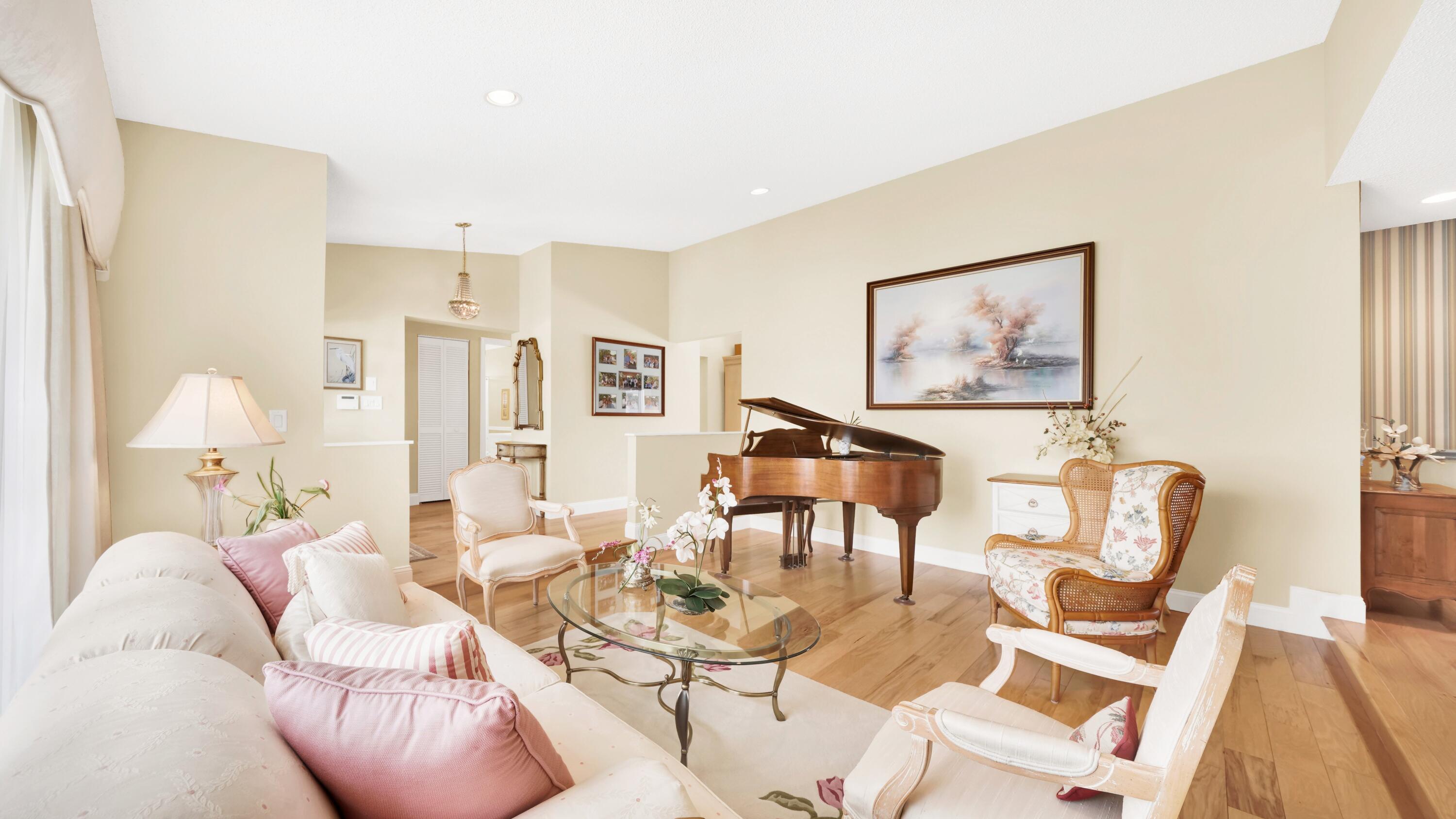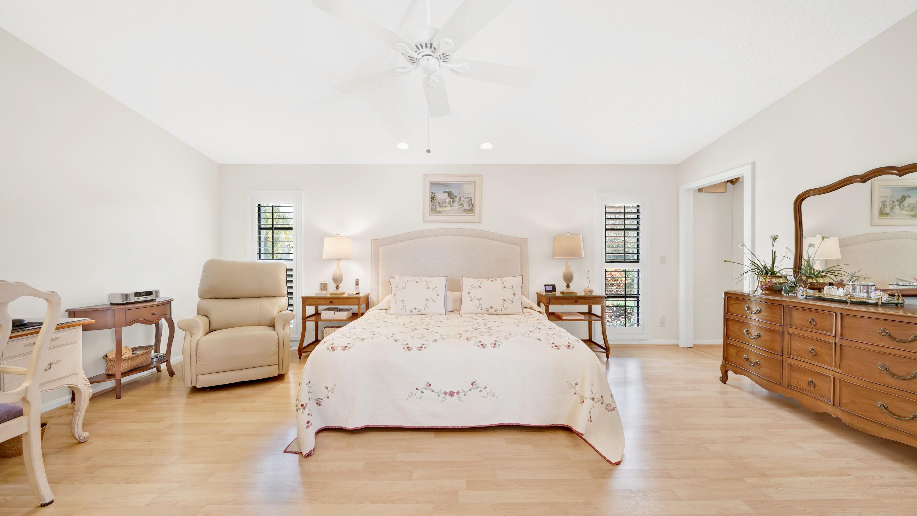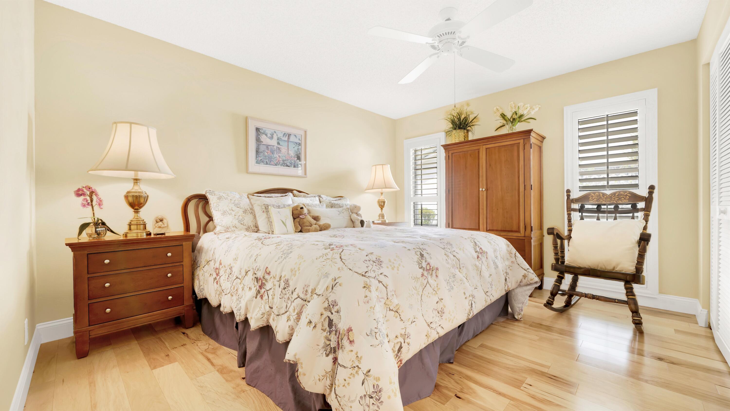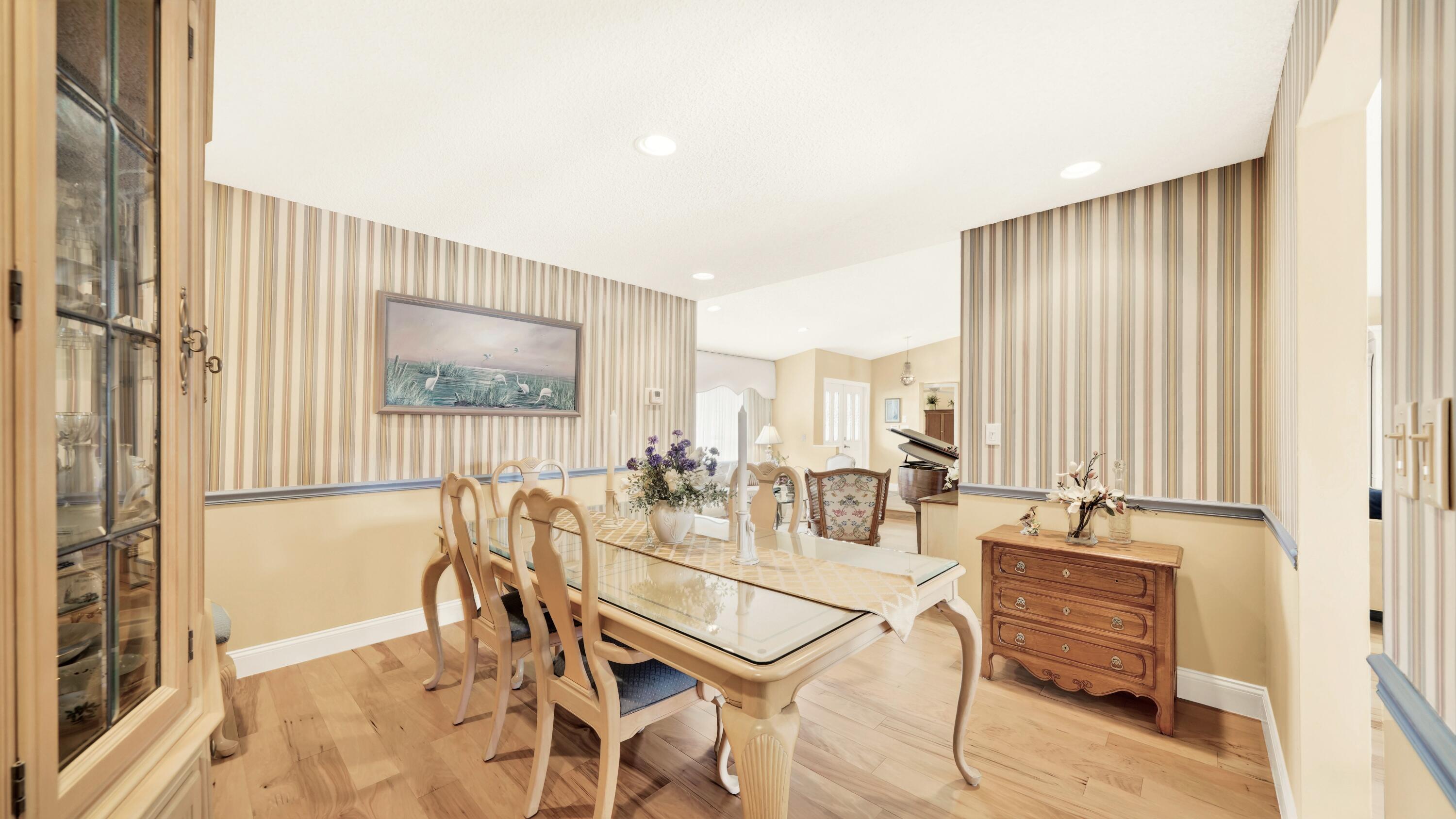 Beautiful home in fabulous gated west Boca community! You're going to love the 180 degree WATER AND FAIRWAY VIEWS and the ability to play golf at a club without equity fees. This spacious one-story home has been lovingly cared for with many charming features: real HICKORY WOOD floors in most rooms, updated kitchen cabinets with Corian countertops and Corian deep sink. THREE tastefully remodeled full baths. Plantation shutters, neutral decor and closets galore add to the home's appeal. Check out the photos and room sizes and you will be impressed. Accordion hurricane shutters on windows and enclosing the entire porch. This home is located close to the entrance of the community. For more details about this home, local schools and Boca Greens Country Club, click here