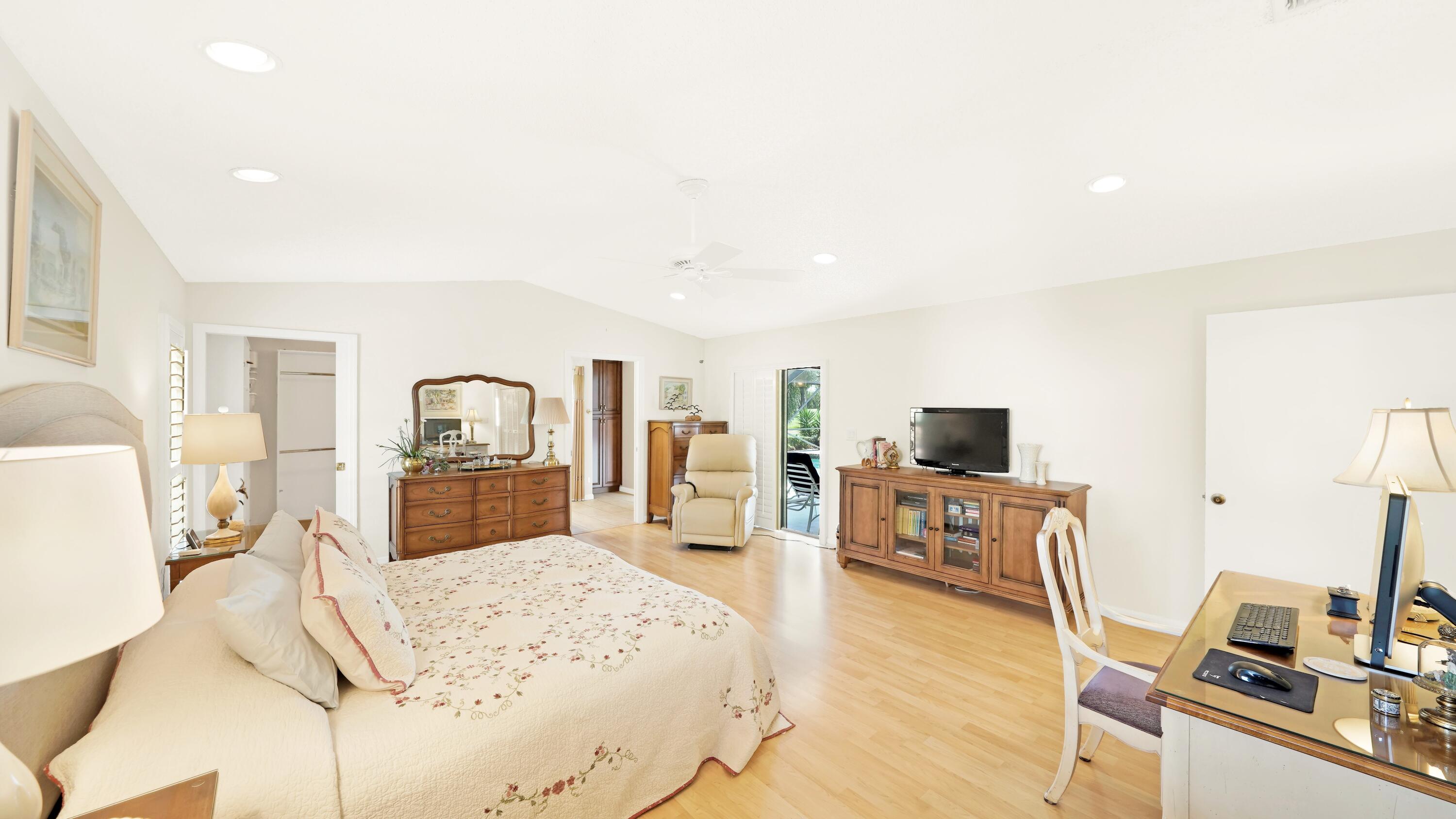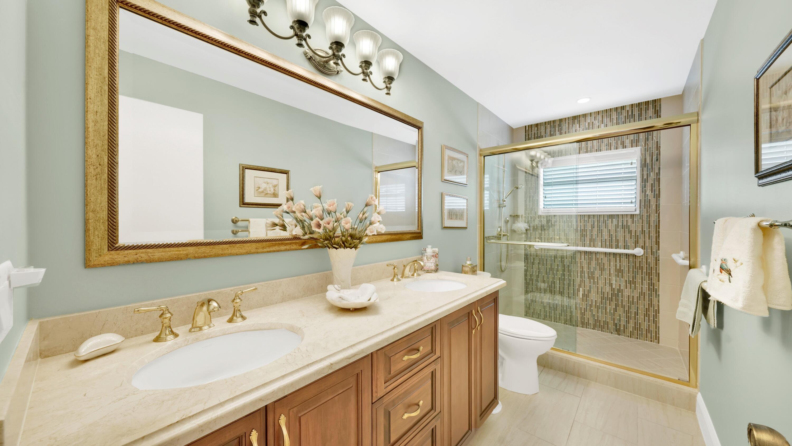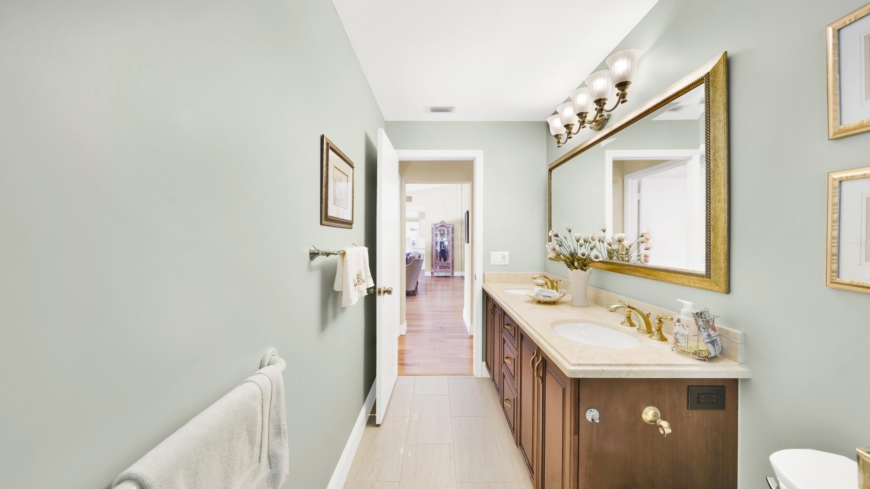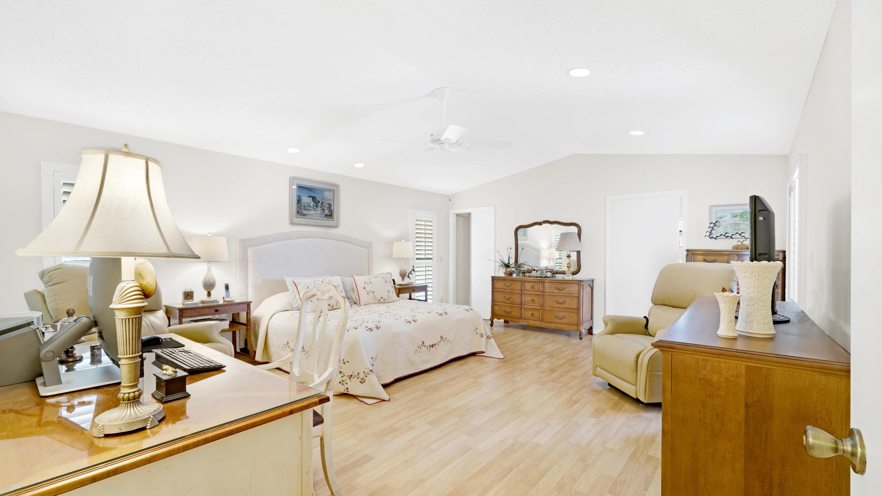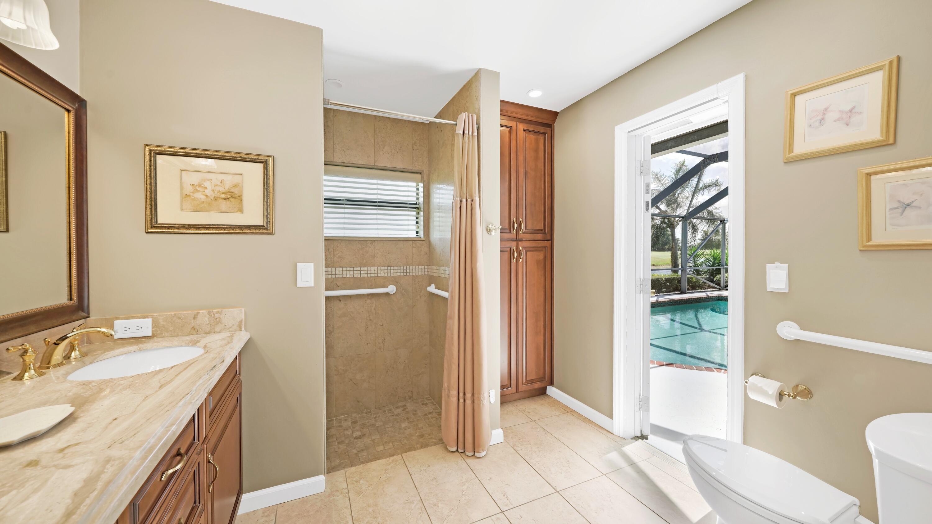 Beautiful home in fabulous gated west Boca community! You're going to love the 180 degree WATER AND FAIRWAY VIEWS and the ability to play golf at a club without equity fees. This spacious one-story home has been lovingly cared for with many charming features: real HICKORY WOOD floors in most rooms, updated kitchen cabinets with Corian countertops and Corian deep sink. THREE tastefully remodeled full baths. Plantation shutters, neutral decor and closets galore add to the home's appeal. Check out the photos and room sizes and you will be impressed. Accordion hurricane shutters on windows and enclosing the entire porch. This home is located close to the entrance of the community. For more details about this home, local schools and Boca Greens Country Club, click here