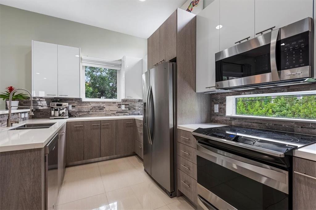 Absolutely stunning, contemporary gated residence situated in a chic boutique townhome community enviably located across from Holiday Park in sought-after Victoria Park. Spacious & stylish corner unit boasts your own deeded private yard upgraded w/ maintenance free synthetic grass & landscape lighting. This spectacular magazine quality home w/ all the bells & whistles has been professionally decorated & designed & may be purchased completely furnished. Sleek Euro-style kitchen w/ modern Quartz counters & breakfast bar, 3/3.5 all w/ ensuite baths, cool Porcelain flooring & 10ft ceilings. Private elevator provides convenient access to all floors including the expansive roof top terrace with wonderful downtown views. Hard to beat location just minutes to Las Olas dining & vibrant nightlife.
