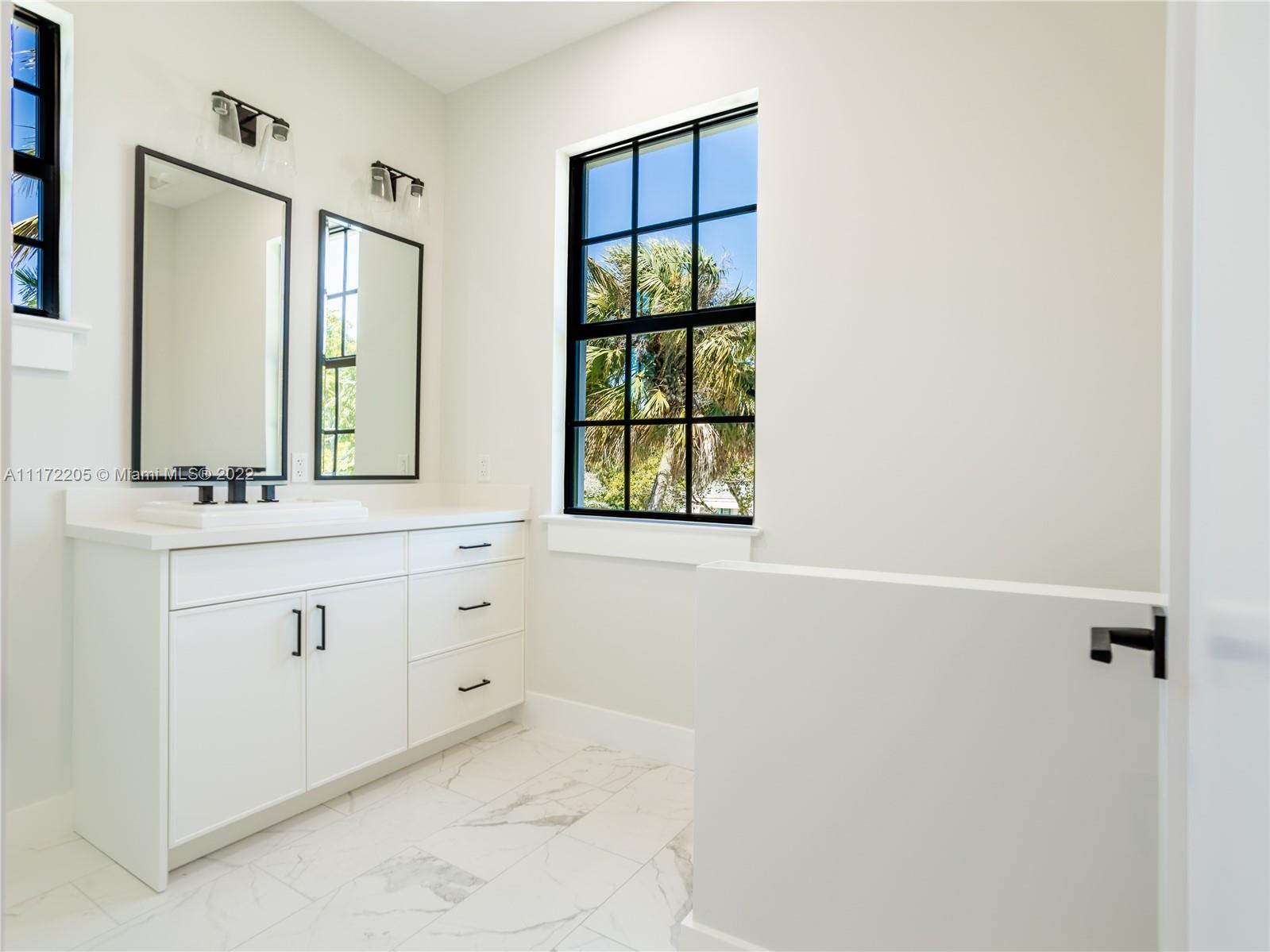 Exquisite new construction designed by a leading Palm Beach island architect! Open concept design. Kitchen with a huge island, custom cabinets & European SS appliances. Imagine the possibilities in the adjacent flexible room – office, exercise space, playroom, etc. walk-in butlers pantry for all your storage and hobby needs. 3 bedrooms on the 2nd floor, w/ vaulted ceilings, generous built-in closets & en-suite w/ soaking tub & oversized shower. Embrace outdoor entertaining on your large patio, by the pool, in the private and impeccably landscaped, fully fenced yard. Exterior Low maintenance Hardie Board siding, PVC columns and trim, high energy efficiency- isonyne insulation and super-efficient top of the line Trane 2 stage 18 seer AC system, impact windows and doors.