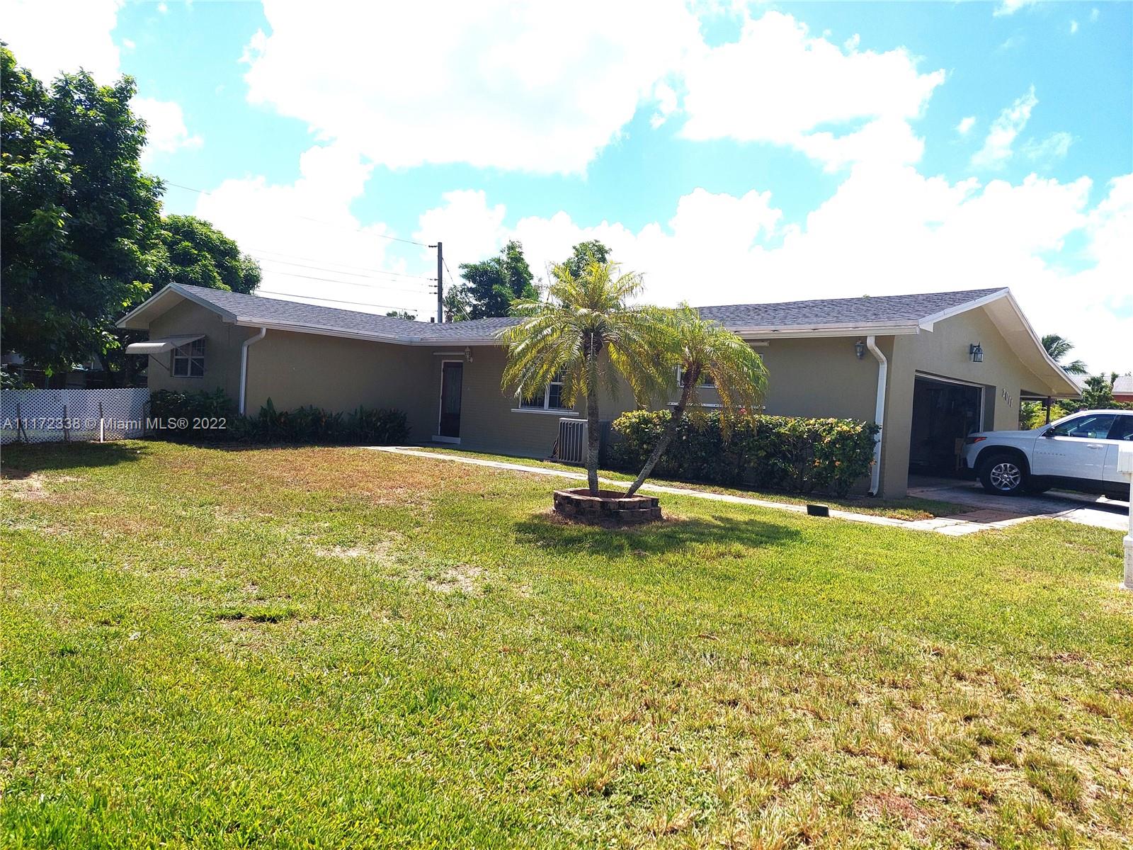 Picture perfect curb appeal with stone walkway that leads to this spacious home as big as a 3 bedroom house, perfect for a small family, with abundance of windows and doors that lets the sunshine in! Enjoy outdoor living in the expansive garden with avocado, mango and ackee trees, or relax on the large covered side patio. Kitchen has ample cabinets and counter-top space with room for an eat-in area. Newly refinished terrazzo floors sparkle throughout this home and the master suite has two large closets. Oversized TWO CAR GARAGE has plenty of room for storage with slop sink and door to the exterior of the property. SPACE TO PARK A BOAT. This great home is equipped with new Trane a/c unit, HURRICANE PROTECTION