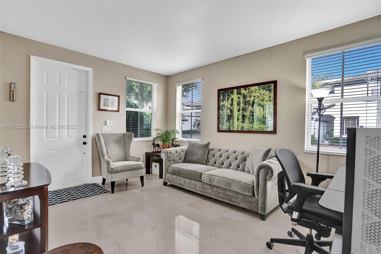 Windward at Island at Doral Gated Community, Spacious 4 Bedrooms and 2.5 Bathrooms completed renovated throughout, Marble on the First floor, Italian Porcelain on the Second floor, dark wood stair, custom mirrors, The Renovated Kitchen comes with top-of-the-line stainless steel appliances and quartz countertops, bathrooms completed renovated, newer Air Condition, Washer and Dryer, Impact Windows & sliding door, Paved Patio, 1 car garage with two overhead ceiling garage rack and two slat wall panel for storage. Residents have access to Islands at Doral Clubhouse amenities Including: 2 Pools, Gym, Kids Playground, Basketball Court, Tennis Court, Great Location, Close to Major Roads, Schools, Shopping Restaurants, Malls, Parks. We are expecting multiple offers with NO Appraisal Contingency.