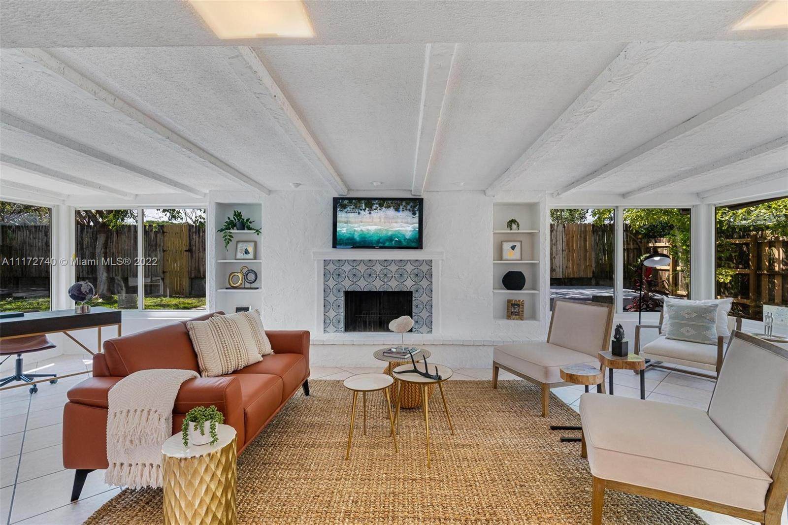 Stunning 3 bed and 2 bath mid-century classic modern home, located in sought after neighborhood of Lauderdale Isles. House was carefully remodeled to preserve the original architecture, offering an open floor plan with breathtaking vaulted beam ceilings throughout, hardwood floors, plenty of windows all over the house bringing light and nature into the home. Charming Florida room with fireplace, large formal dining area, open and unique layout kitchen with atrium dining area, quartz countertops and stain steel appliances. Completely fenced and private backyard, with access to the park and community boat ramp from the gate on your fence. Lots of natural sun light makes this a Hidden paradise, with a tropical landscape a dream home, a Must see home. Call for appointment today.