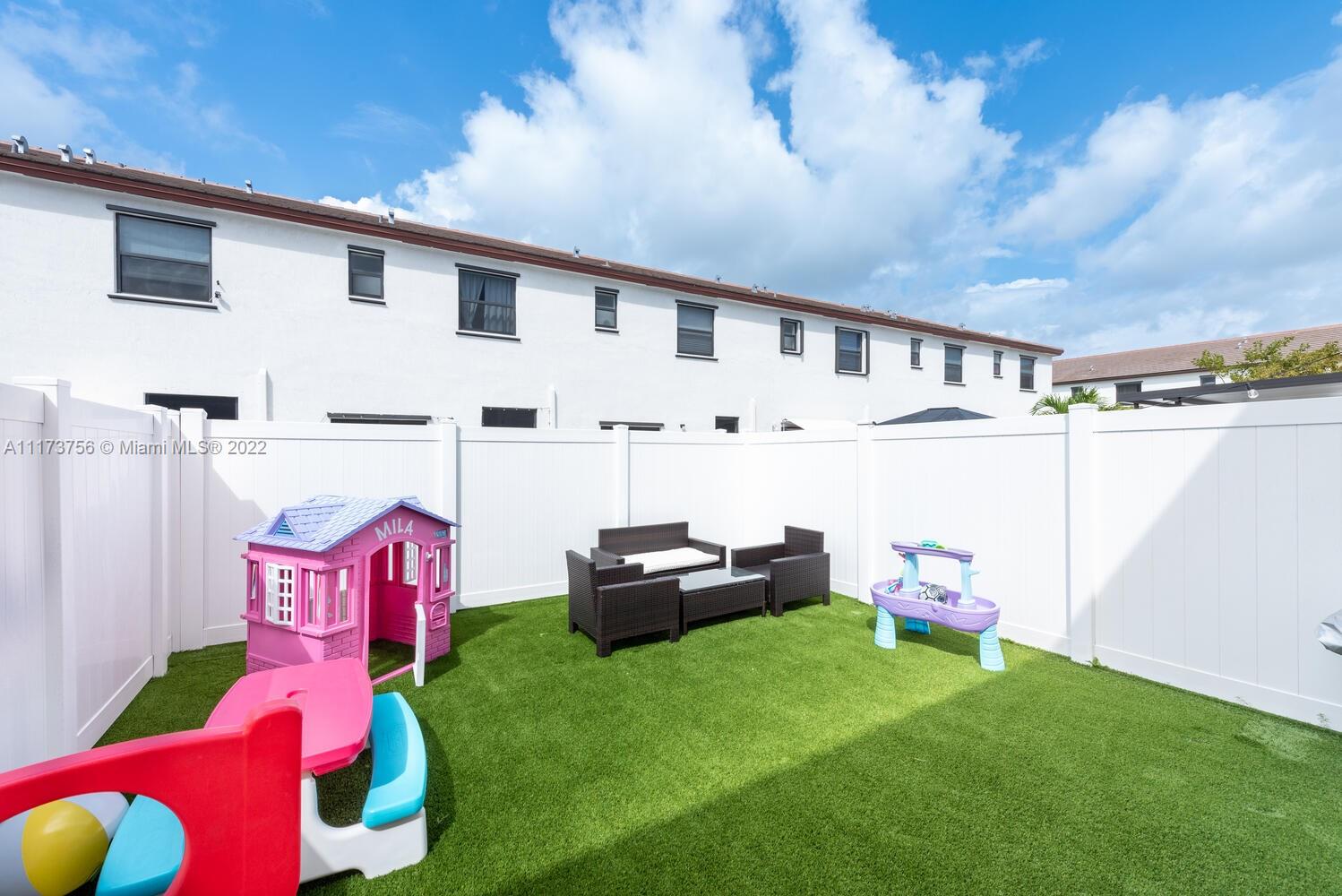 Spectacular 3 bed / 2.5 Bath Townhome located in the New and Privately Gated community of Aquabella. Built-in 2020 this Townhome boasts high volume ceilings, recessed lighting throughout, upgraded window treatments, and an open concept eat-in kitchen complete with all SS Appliances. The Townhome offers the convenience of a Downstairs Half-Bathroom, 2-assigned parking spaces, plus a generously fenced backyard- complete with New easy-to-maintain synthetic grass. Resort-Style Amenities include a LakeFront Club House, Bussiness Center, Gym, Oversized Pools, BBQ Area, Playground, Water Park, Roaming Security, and more!