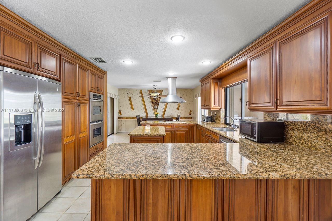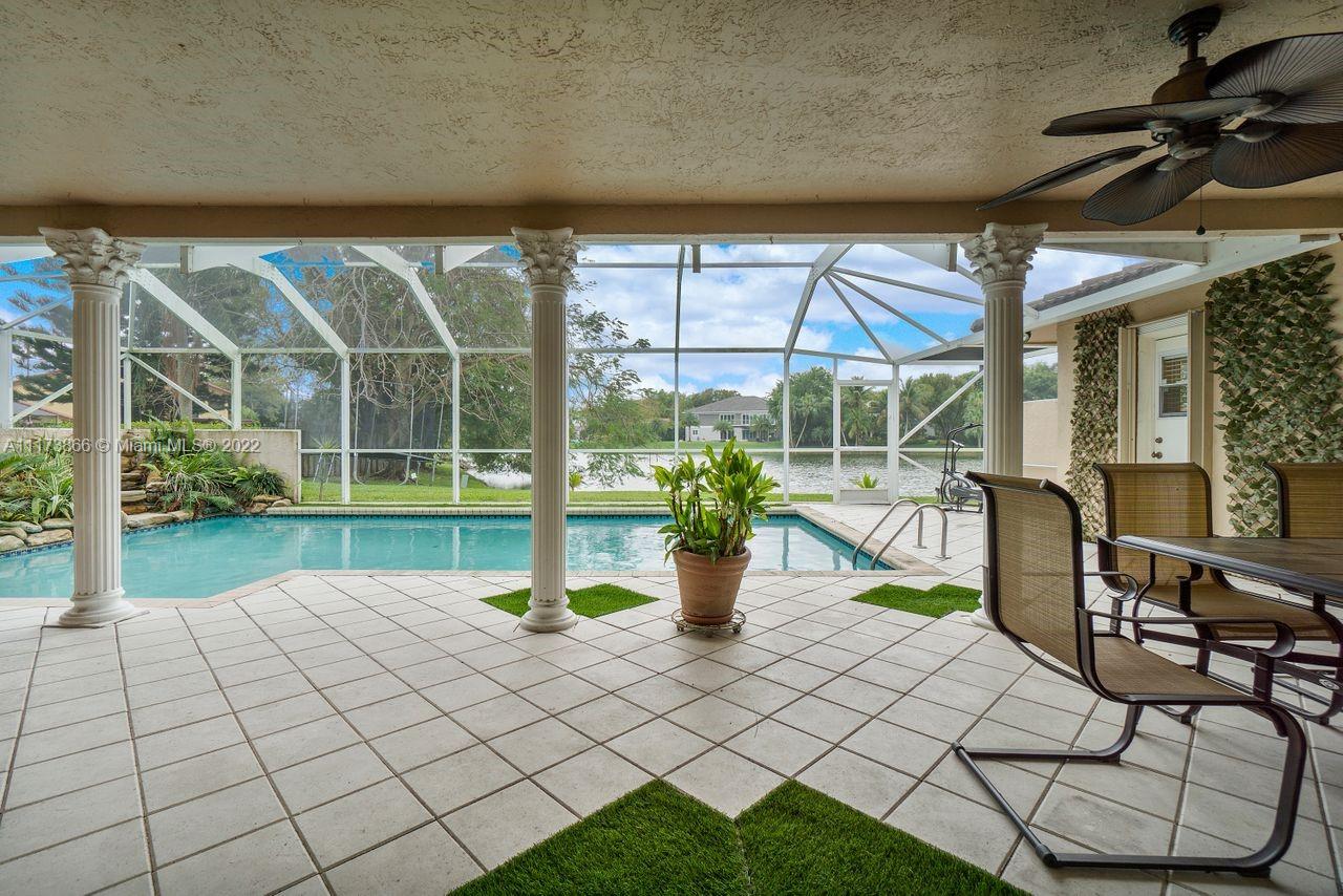 This Beautiful 4 bedroom 2.5 bath home is nestled in the heart of Coral Springs. Circular driveway leads you to the stunning mahogany double doors entrance. This spacious home features an open concept kitchen design with wood cabinetry, granite countertops, stainless steal appliances (Wolf and GE signature line appl.) Home also features cabana baths allowing easy access to refreshing newly resurfaced pool, with screened in patio. Enjoy Florida living while sitting in your covered porch enjoying the pool and stunning expansive lake views. Patio also features Stainless steal gas grill with side burners and faucet for all your cooking needs. Great home for entertaining family and friends! A MUST SEE! Open House will be held on Saturday March 19th between 12-4 pm.