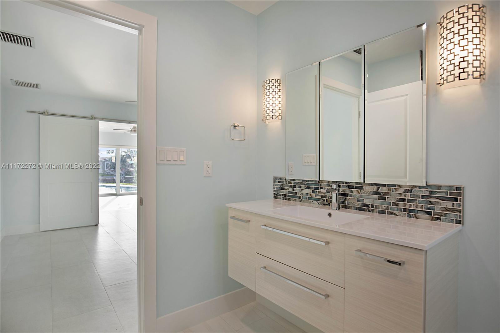 Stunning 2020 new construction 3/2.5 pool home w/ 70 ft of waterfront, easy ocean-access to live the boating & beach lifestyle. Stunning entryway w/ awning. Dramatic foyer entry w/ incredible views to the water & pool. Volume tray ceilings w/ recessed lighting. Modern kitchen offers custom cabinetry, high-end appliances, 36' Kitchenaid gas range & hood, 2 dishwashers & expansive island lined w/ storage. Dual Owner's-suite w/ upgraded en-suite baths attached. High-end finishes & fixtures. Remote Blinds. Ring doorbell & flood lights throughout. Travertine pool deck and 20ft dock w/ room to expand or add boat lift. New Roof, New A/C, New tankless WH, New Appliances, underground plumbing upgraded to PVC. Amazing location near golfing, entertaining, Pompano Pier w/ beach, dining & much more!