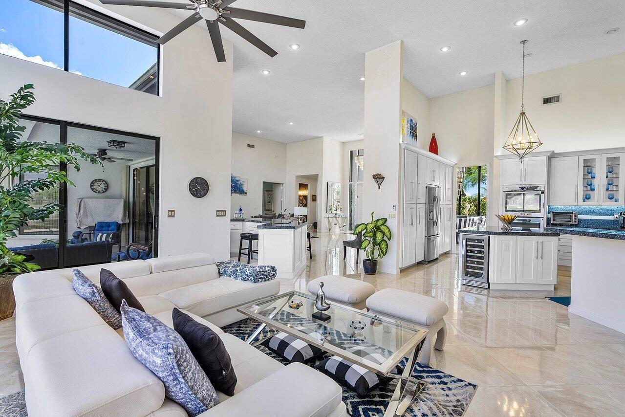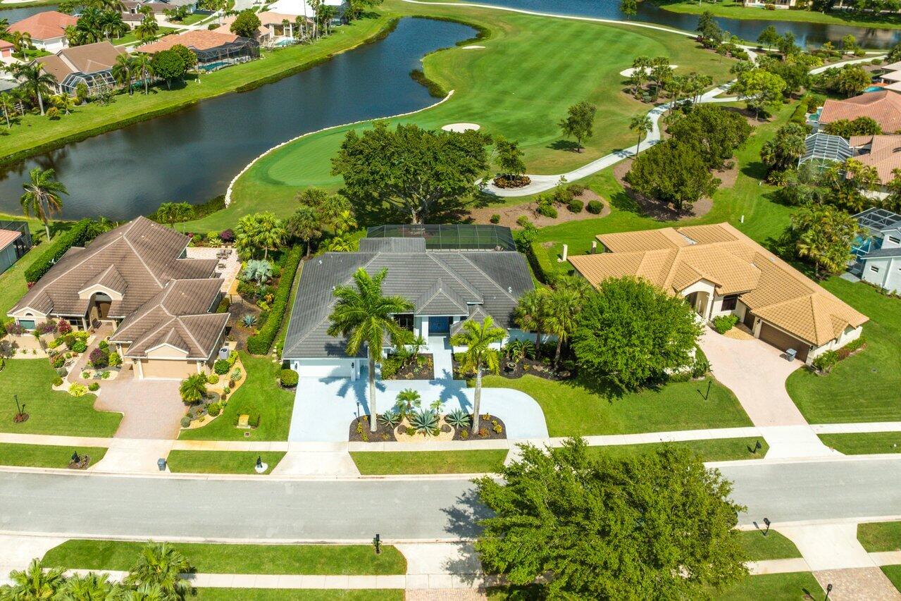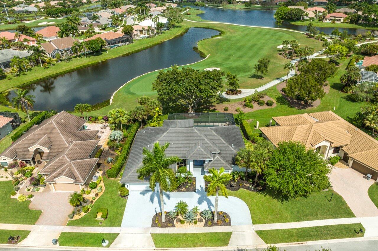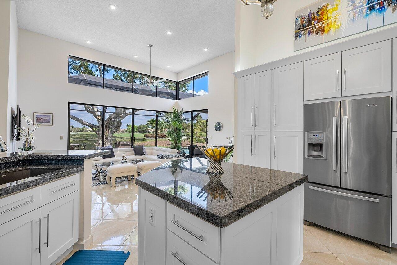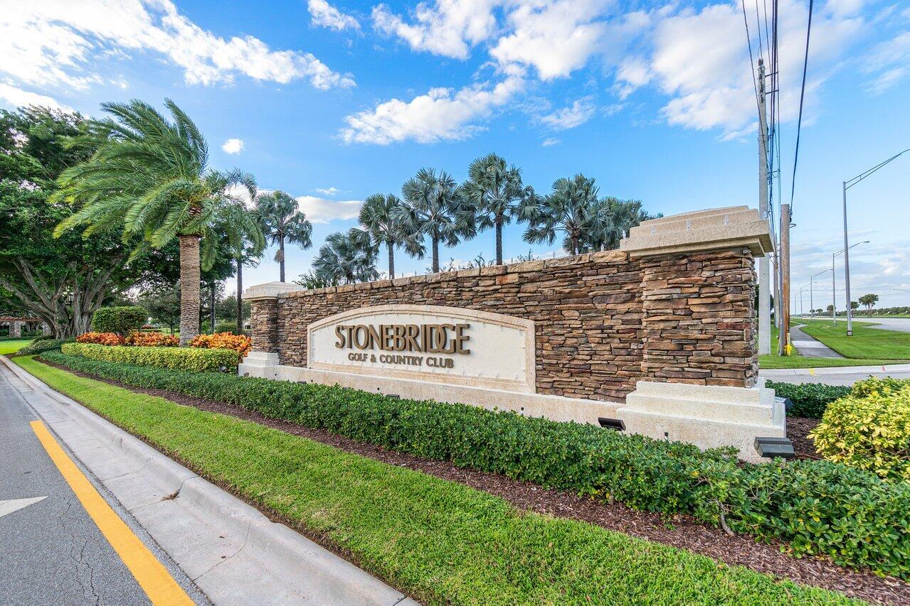 This rarely available, 3400 plus sqft stunning, light & bright renovated home located on a premium golf course lot overlooking two lakes in Stonebridge Country Club is like NO OTHER with 4 bedrooms, 3.5 Bathrooms and optimal design with no step down entry. The home has custom, kitchen with white Shaker cabinetry, luxury granite and backsplash, porcelain floors, and newer roof (2016), A/C (2021) and W/H (2021). Plus soaring ceilings throughout this one of a kind home. Designer lighting throughout. Fabulous master suite with two large walk-in closets. Split floor plan. New landscaping. Hurricane shutters. Spacious, 2 car + golf cart, garage. Many upgrades throughout. Enjoy your private Golf Course, Club room, State of the Art Gym, 6 tennis courses, Pickle Ball courts, restaurant and more.