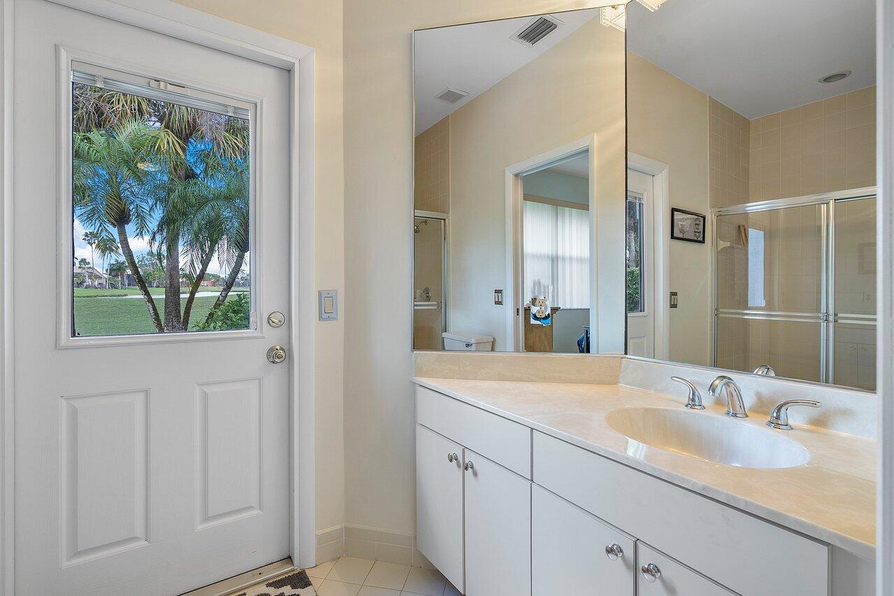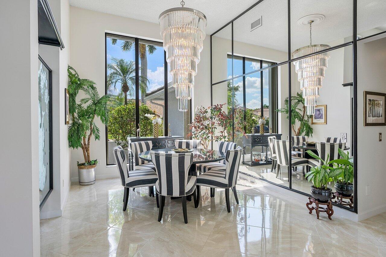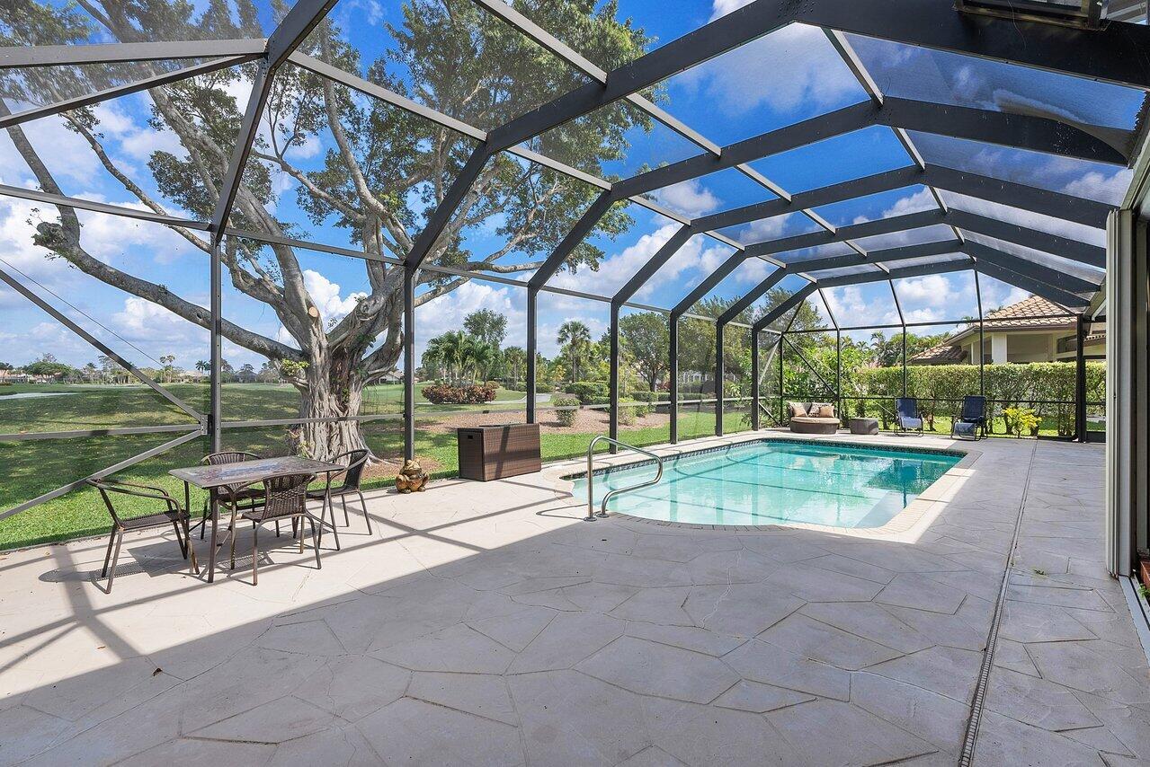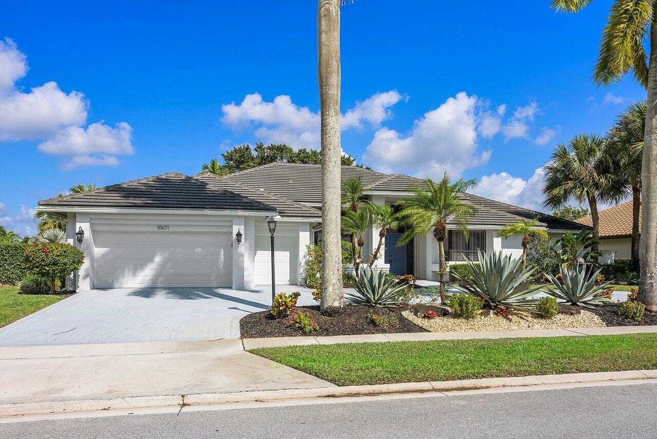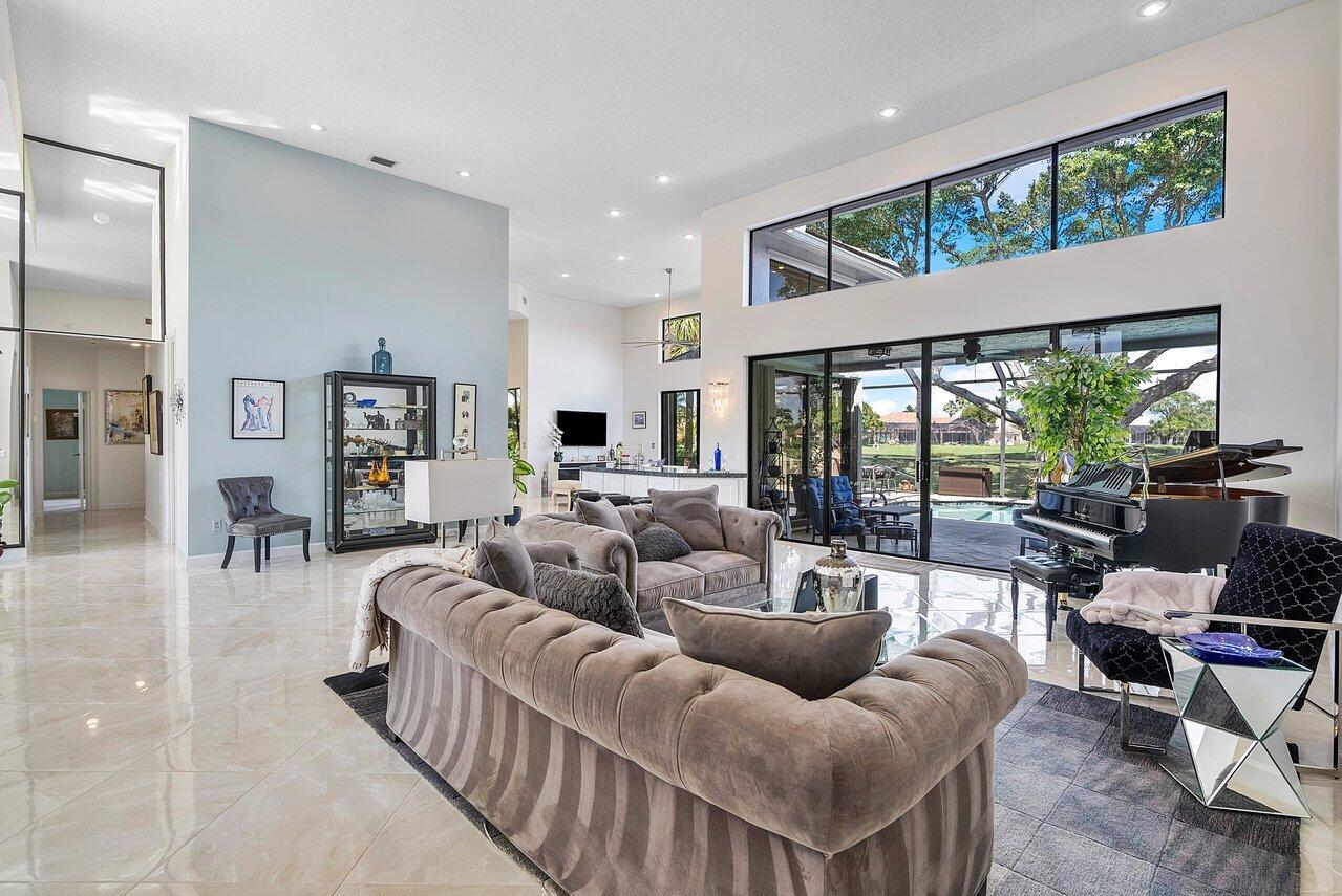 This rarely available, 3400 plus sqft stunning, light & bright renovated home located on a premium golf course lot overlooking two lakes in Stonebridge Country Club is like NO OTHER with 4 bedrooms, 3.5 Bathrooms and optimal design with no step down entry. The home has custom, kitchen with white Shaker cabinetry, luxury granite and backsplash, porcelain floors, and newer roof (2016), A/C (2021) and W/H (2021). Plus soaring ceilings throughout this one of a kind home. Designer lighting throughout. Fabulous master suite with two large walk-in closets. Split floor plan. New landscaping. Hurricane shutters. Spacious, 2 car + golf cart, garage. Many upgrades throughout. Enjoy your private Golf Course, Club room, State of the Art Gym, 6 tennis courses, Pickle Ball courts, restaurant and more.