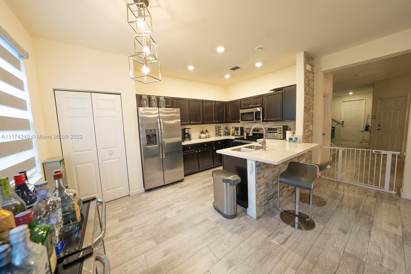 OPEN HOUSE WED 3/16 6-8PM THIS IS WHAT YOU HAVE BEEN WAITING FOR,SELLER HAS DONE IT ALL Porcelain floors in all common areas Waterproof acrylic laminate in all rooms, Master bedroom has expanded connected walk in grand closet with included closet furniture, Upgraded, kitchen, Premium ZEBRA shades through out. all downstairs shades are electric ,Backyard completely paved, Custom gazebo with electricity. Connected TV on powered tilt stand and fan with light included., Upgraded downstairs bathroom with stone wall, Custom glass staircase with porcelain steps, AC unit with UV light and auto shut off to prevent overspill, All lighting fixtures included,New Accordian shutters, Garage has ceiling storage shelving throughout, Alarm and camera systems,Custom BBQ Island is optional.CALL LISTING AGENT