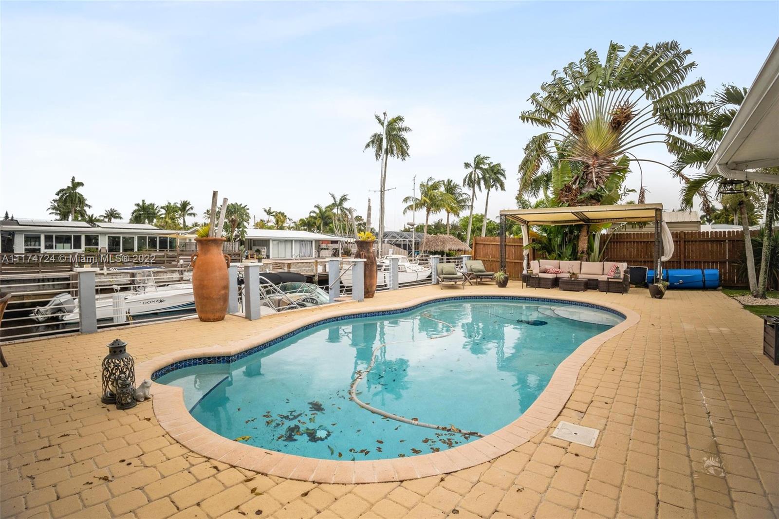 OCEAN ACCESS WITH NO FIXED BRIDGES, 65 FULL FEET OF WATERFRONT WITH WELL MAINTAINED SEAWALL AND DOCK WITH ELECTRICITY. ROOF IS WELL MAINTAINED AND NEWER. NEWER KITCHEN,CENTER ISLAND AND APPLIANCES, TILED FLOORS AND PLANTATION SHUTTERS. HOME RECENTLY TENTED WITH WARRANTY. FREE STANDING STORAGE/ WASHER DRYER FACILITY AND OFFICE/MAN CAVE WITH ELECTRICITY ARE EXTRA BLDGS FOR ENJOYMENT. TIKI OUTDOOR BAR/BARBEQUE AREA, COVERED SITTING AREA AROUND WELL MAINTAINED OPENED POOL AND PARTY AREA. MAJOR HIGHWAYS/SHOPPING/BEACHES AND GREAT RESTAURANTS CLOSE. (IN EXCELLANT CONDITION SEA RAY AMBERJACK 30 FT BOAT IS AVAILABLE FOR SALE AT A REASONABLE PRICE) FURNISHING ALSO AVAILABLE.