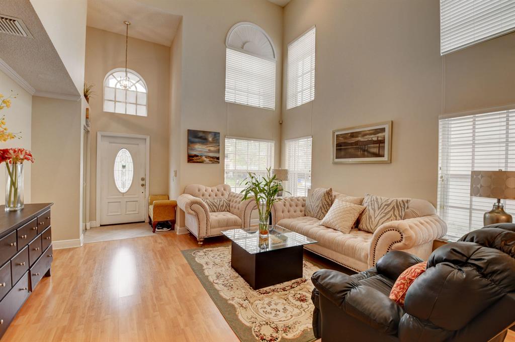 Beautiful 4 BR pool home in desirable gated west Boca community of Meadow Lakes. Kitchen w/ Bk Area opens to a spacious Family Room & features wood cabinets, granite counters & S/S French refrigerator. Living Room has double tiered windows & volume ceiling. Adjacent Formal dining room is perfect for entertaining.2nd floor features beautiful wood floors. Master has walk-in closet w/ custom shelves & drawers. Both baths have updated vanities, sinks & commodes. The master bath features dual sinks, Roman tub & stall shower w/ updated tile & glass enclosure.A large fenced yard includes an in ground pool plus ample patio area highlighted with newly installed pavers. A screened in porch for relaxing outdoor living. Garage has a newer insulated & hurricane proof door plus numerous shelves