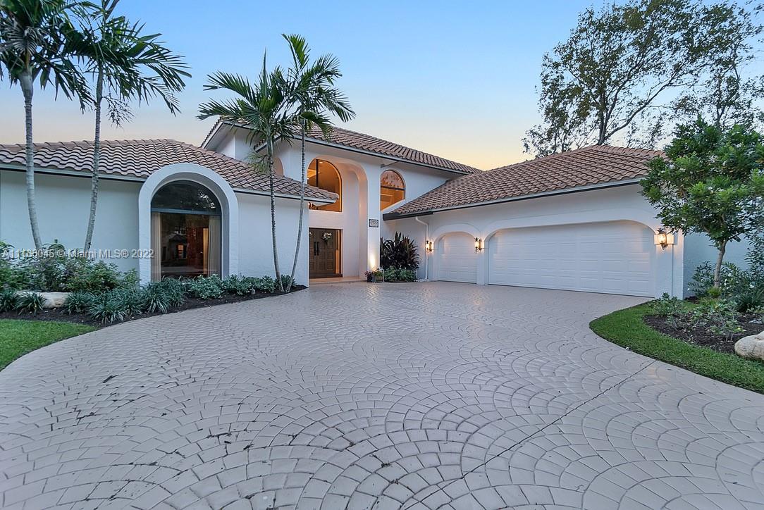 Must-see! Move-in ready 4BR/5BA home, nestled in the quaint gated community of Maplewood Isle. The large driveway & manicured landscaping set the scene for the stunning interior. Solid wood doors open to an expansive 2-story foyer and living room which feature a stacked stone fireplace, wet bar, media room with projector/screen & a kitchen that boast granite counter tops, Sub-zero refrigerator, induction range and other GE Monogram appliances.The first floor houses 3BRs with en-suite BAs. Upstairs has an office that connects to a breathtaking main BA with over-sized frameless shower, and multiple closets. The main BR overlooks a beautiful waterfront backyard where a heated salt-water system pool is surrounded by lush landscaping, a tiki hut and SS grill area - all perfect for entertainment