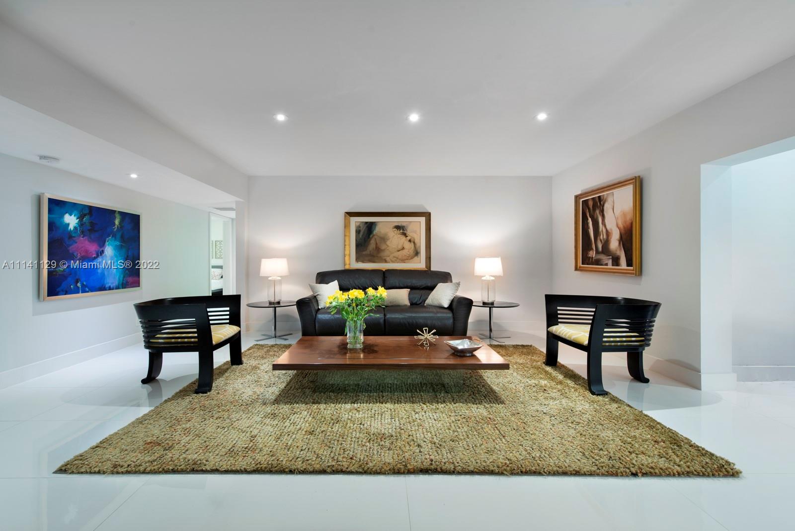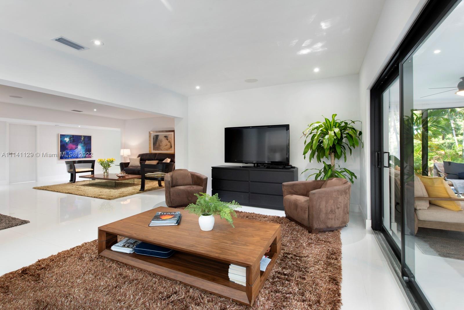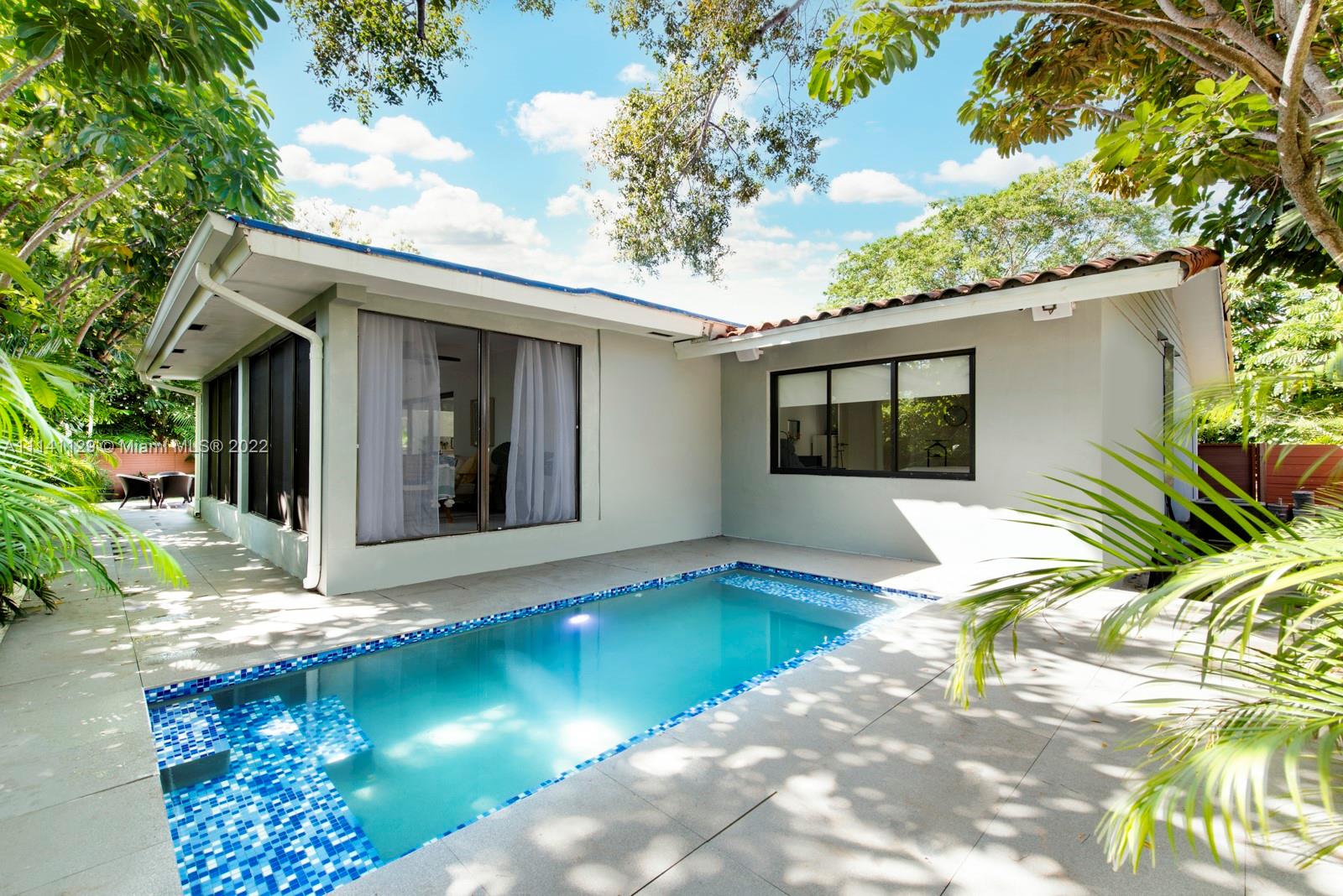 Sensational home in a prime Miami Shores location. foyer entry, white Porcelanosa 36x24 tiles throughout the home. Open and spacious living area w/ flexible spaces and sliding doors across the back introducing a private dining area, swimming pool and beautiful screened porch for entertaining and private enjoyment. Master bedroom commands attention w/ its larger than life walk-in closet and offers a peaceful view of the backyard and pool. All bedrooms loffer private bath and built-in closets. Unsurpassed kitchen space, grand center island, quartz countertops, double deep sink w/ Ville faucet, LED lighting in drawers. Smart home automation system, sound system and all the bells and whistles. All this and an oversized 2 car garage & separate laundry room. All improvements done w/ permits.