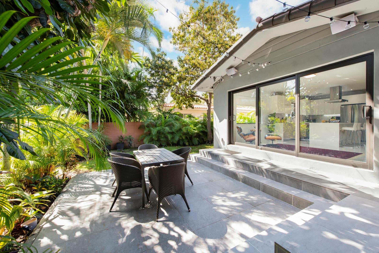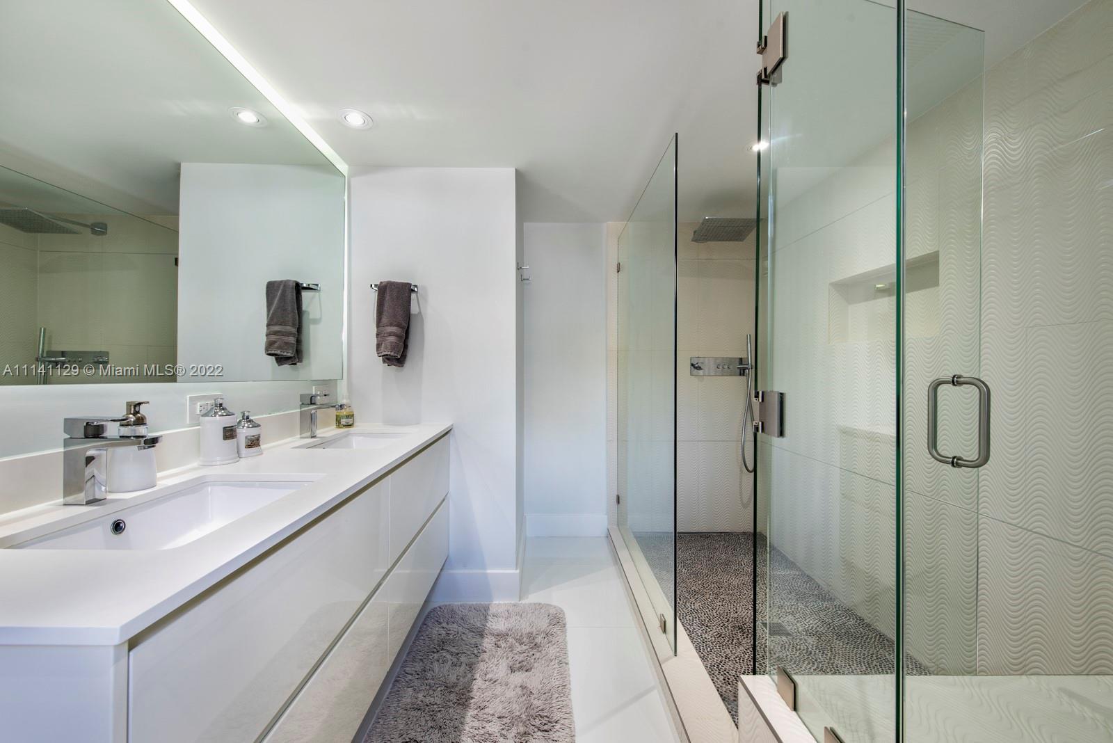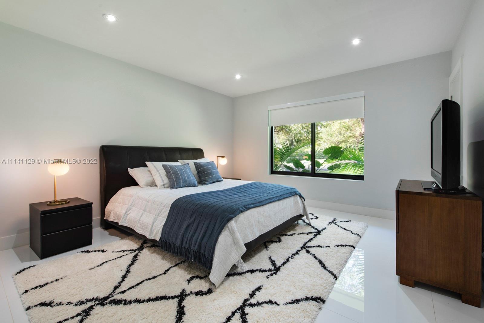 Sensational home in a prime Miami Shores location. foyer entry, white Porcelanosa 36x24 tiles throughout the home. Open and spacious living area w/ flexible spaces and sliding doors across the back introducing a private dining area, swimming pool and beautiful screened porch for entertaining and private enjoyment. Master bedroom commands attention w/ its larger than life walk-in closet and offers a peaceful view of the backyard and pool. All bedrooms loffer private bath and built-in closets. Unsurpassed kitchen space, grand center island, quartz countertops, double deep sink w/ Ville faucet, LED lighting in drawers. Smart home automation system, sound system and all the bells and whistles. All this and an oversized 2 car garage & separate laundry room. All improvements done w/ permits.