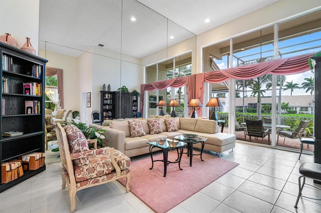 Opportunity awaits with this sun-filled townhome with views of a pond with a sparkling water fountain. The dramatic ceiling heights will impress you upon entering the open concept family room. The eat-in kitchen extends to a large screened-in patio where you will experience a perfect outdoor living space to view beautiful sunsets. The primary bedroom and bath have been updated with beautiful finishes and features a walk-in closet, vaulted ceilings and access to the patio. A private second bedroom is close to the updated second bathroom. A purposeful den/third bedroom offers a built-in office and wet bar located off of the great room. This home boasts IMPACT resistant hurricane windows and doors, a separate laundry room and two car garage. This home is located in the Windsor Parke section