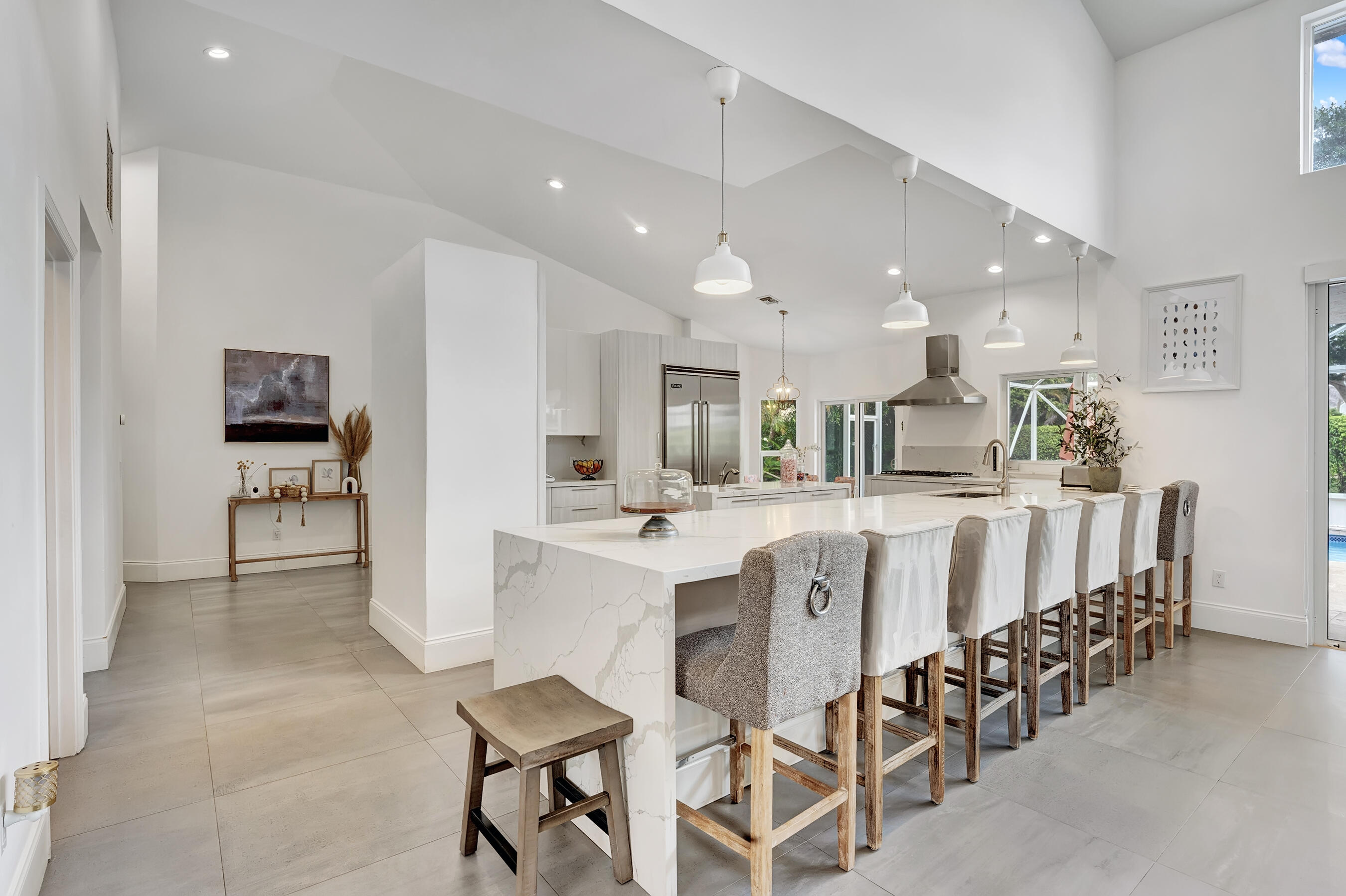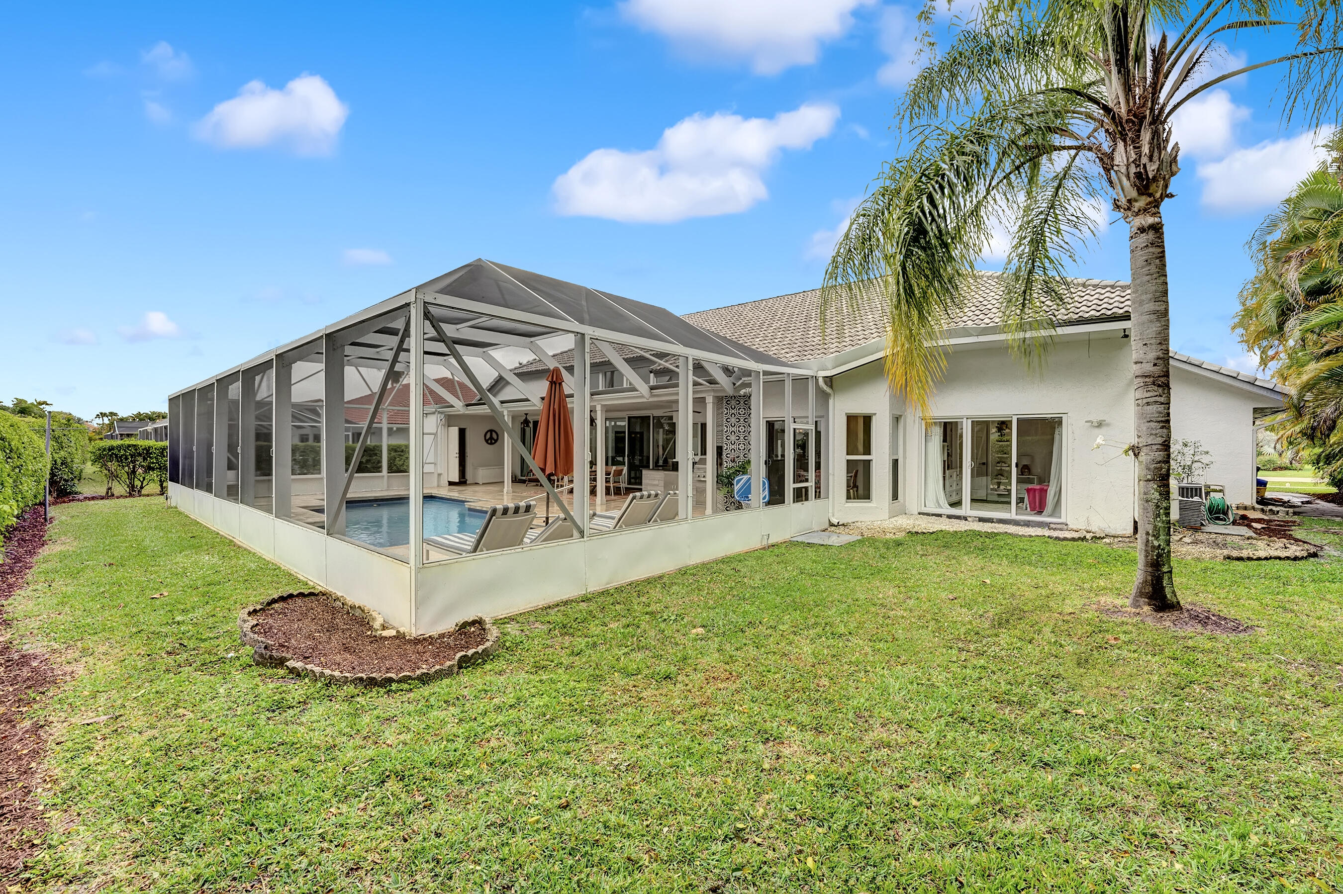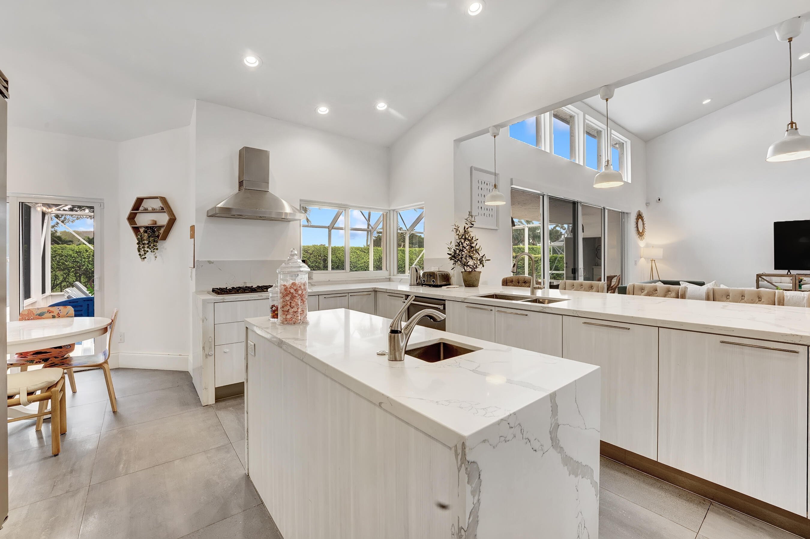 OPEN HOUSE CANCELLED. Experience the elegance and luxury of this stunning home with private saltwater pool nestled on a sprawling oversized lot in the desirable Boca Woods Country Club community. Design details include cathedral ceilings, tile flooring, transom windows and updated fixtures and finishes throughout plus double impact glass for added peace of mind. Spectacular outdoor spaces include lanai with pool, sauna, covered terrace and outdoor greenspace with privacy hedge. Incredible chef's kitchen features quartz countertops, waterfall island, imported wood cabinetry and Viking professional-grade appliances. Owner's suite features direct terrace access and spa-like en suite bath with vessel tub and double-sink vanity.