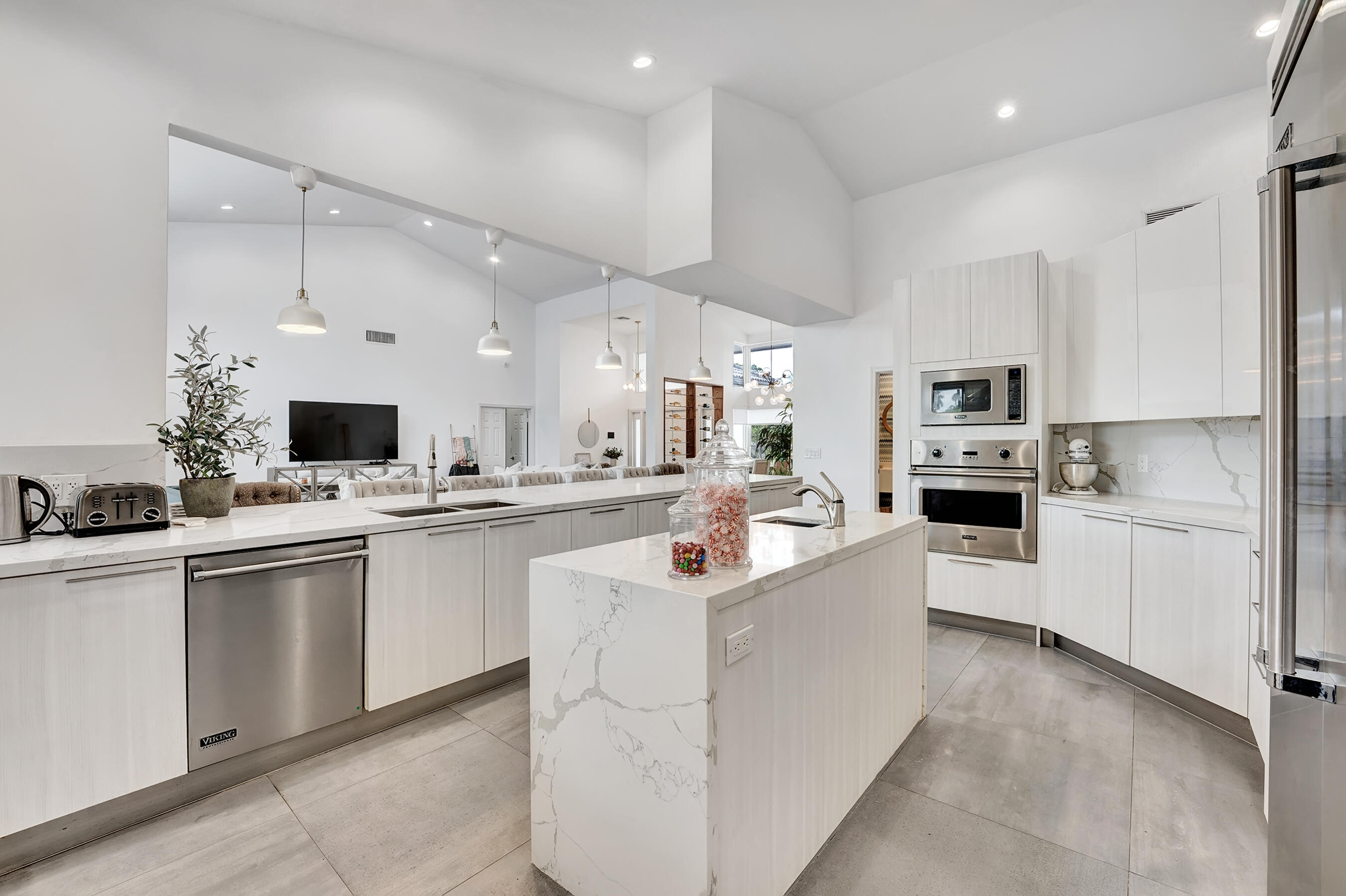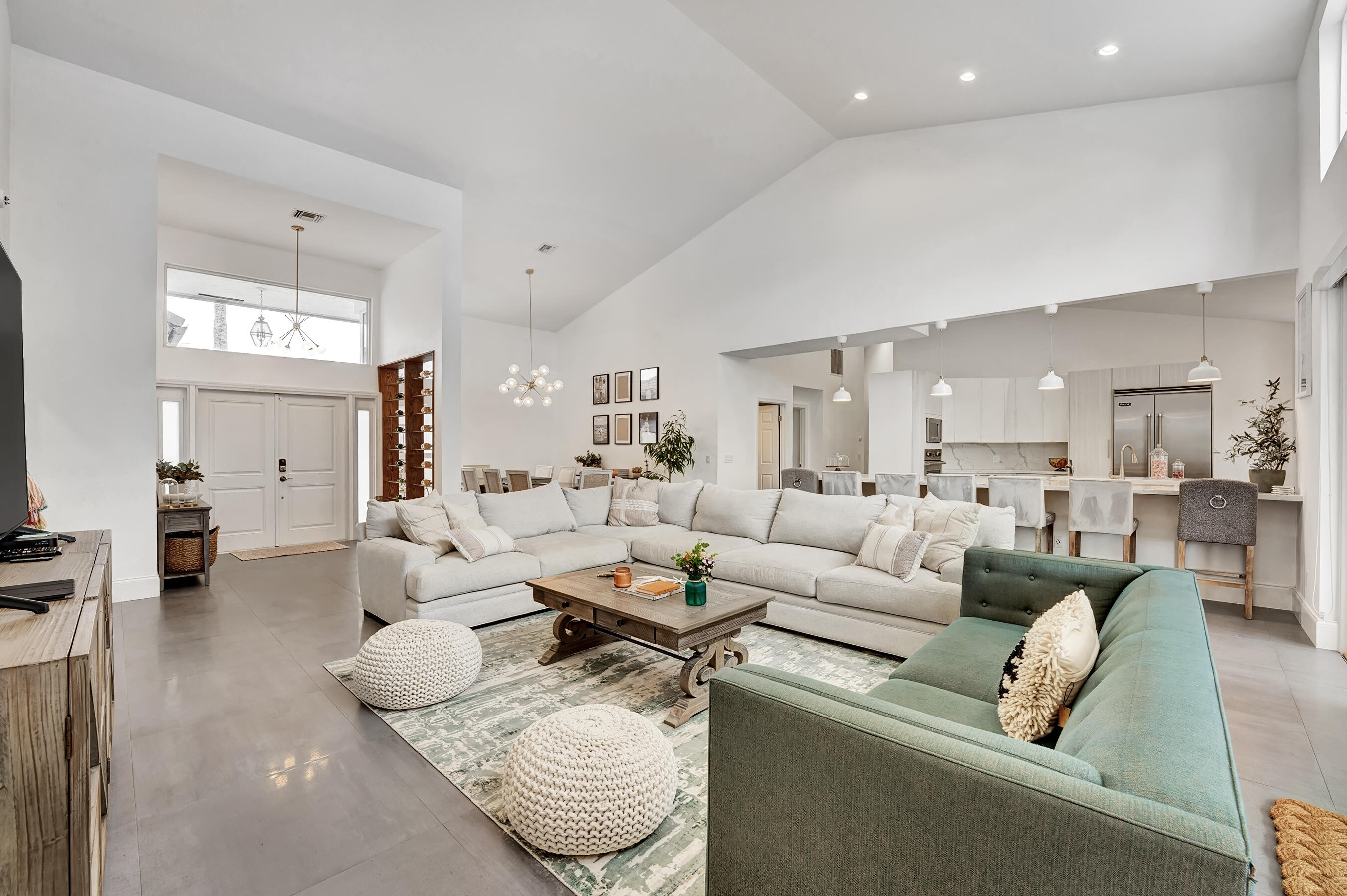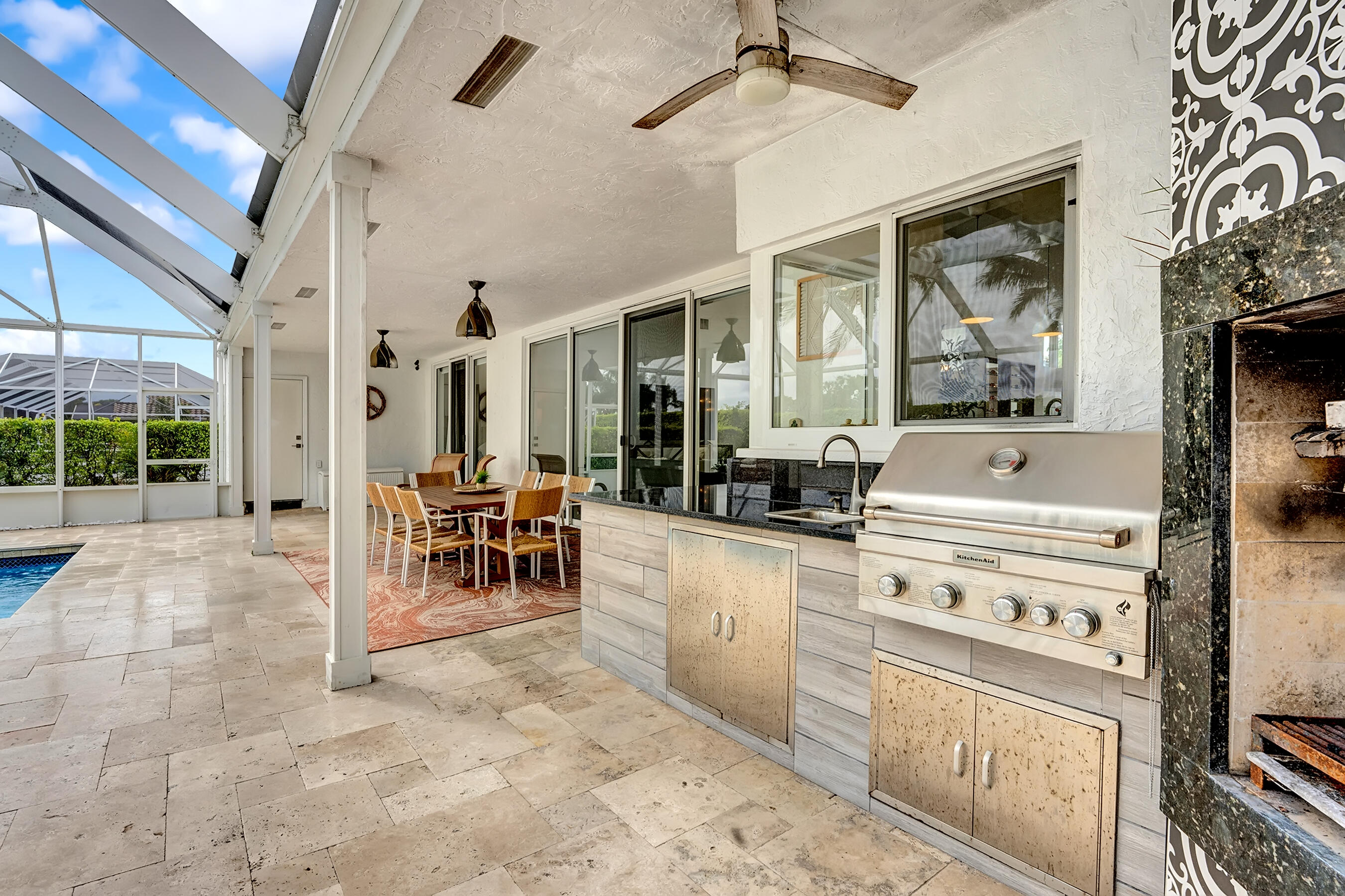 OPEN HOUSE CANCELLED. Experience the elegance and luxury of this stunning home with private saltwater pool nestled on a sprawling oversized lot in the desirable Boca Woods Country Club community. Design details include cathedral ceilings, tile flooring, transom windows and updated fixtures and finishes throughout plus double impact glass for added peace of mind. Spectacular outdoor spaces include lanai with pool, sauna, covered terrace and outdoor greenspace with privacy hedge. Incredible chef's kitchen features quartz countertops, waterfall island, imported wood cabinetry and Viking professional-grade appliances. Owner's suite features direct terrace access and spa-like en suite bath with vessel tub and double-sink vanity.