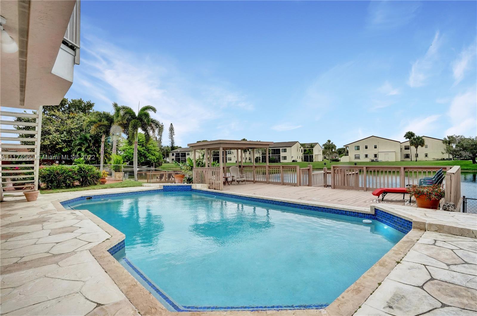 Enjoy outdoor living & beautiful water views - your own private oasis! This gorgeous light & bright home features 4 bedrooms & 3 bathrooms: 3 bedrooms, 2 bathrooms in the main house & 1 bedroom, 1 bathroom + additional kitchenette in the upstairs guest house/in-law suite. Enjoy amazing water views from almost every room! With an extended covered patio perfect for BBQ, sparkling pool, large oversized fenced yard & additional balcony sitting area, this home is ready for entertaining! 2 car garage w/large circular driveway for additional parking. Impact windows for convenience! Excellent location close to great schools, shopping, dining, parks & more!