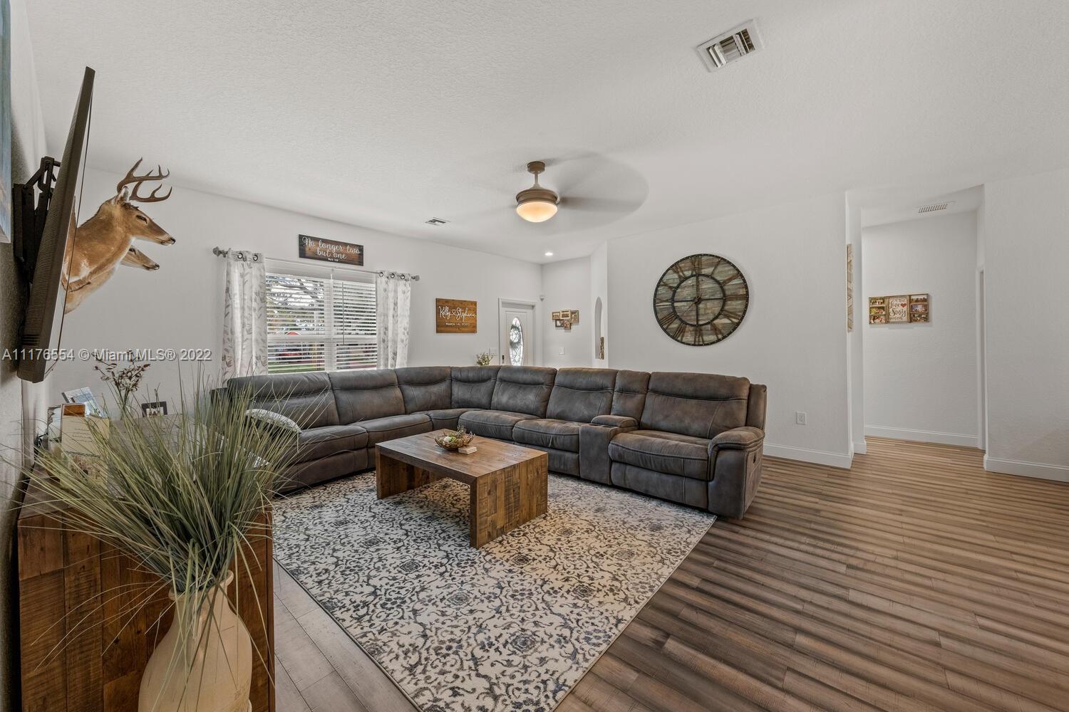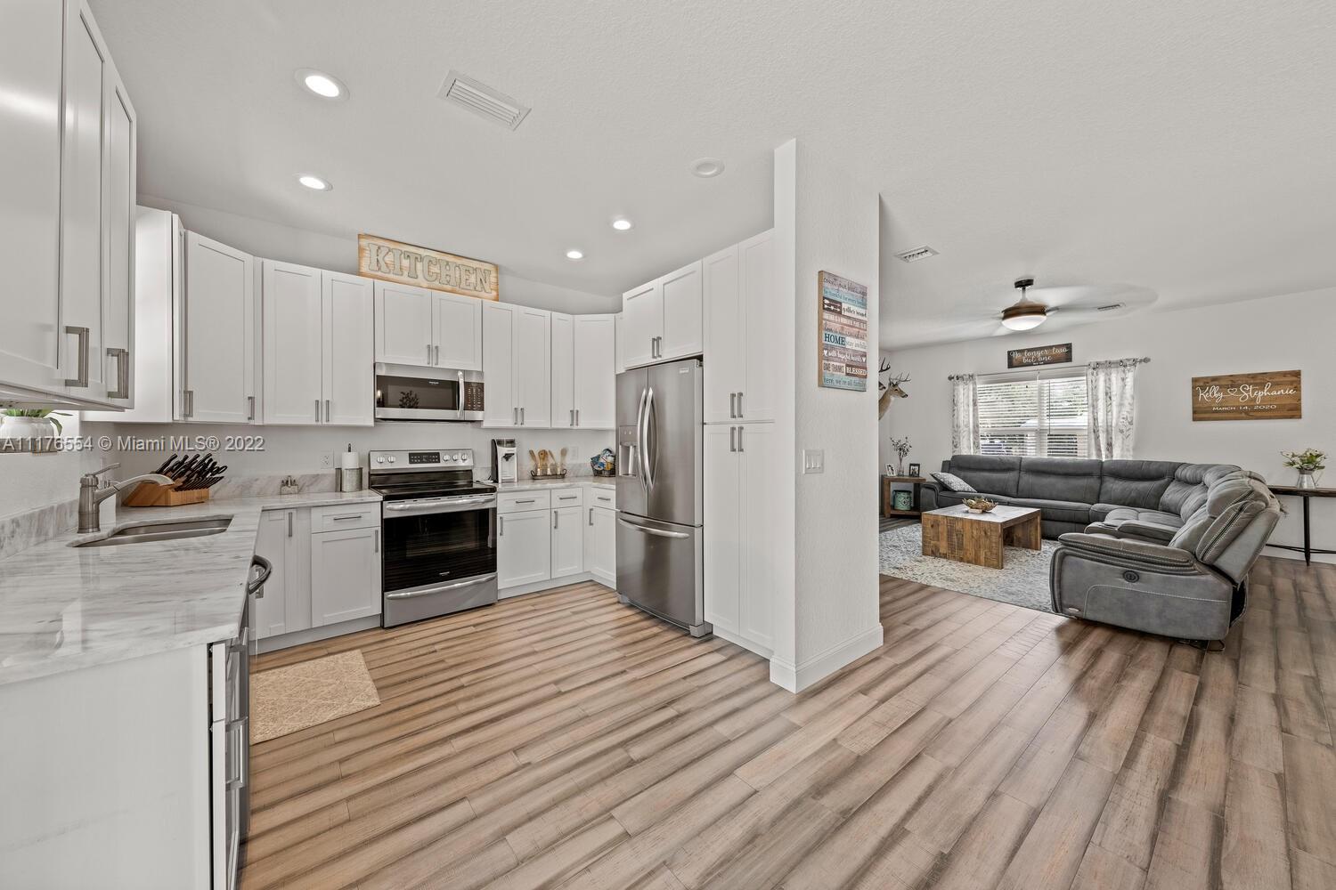 Built 2018. Only 4 years old. 3 bedrooms & 2 full bathrooms, volume 9 ft ceilings, knockdown texture walls, all cooper plumbing, split floor plan, hurricane rated impact windows and doors, spacious kitchen with wood cabinets, granite countertops, porcelain tile, kitchen, walk- in laundry room with full size washer and dryer. Attached 2 car garage. +9,200 SF oversized corner lot.
