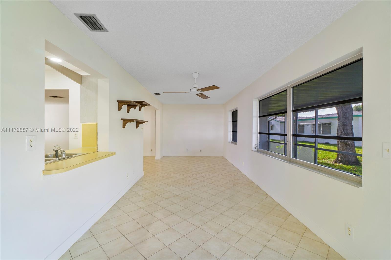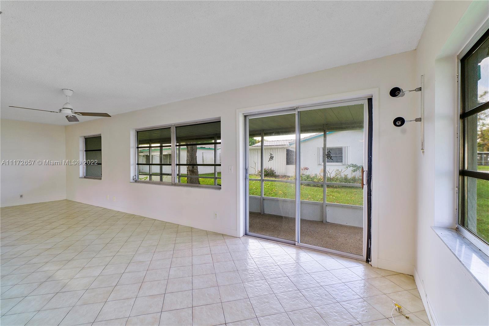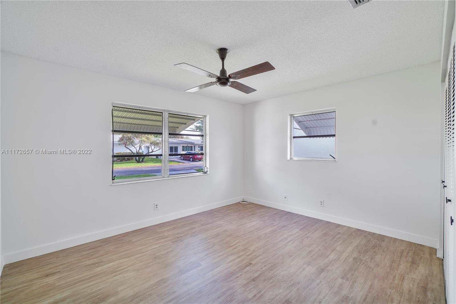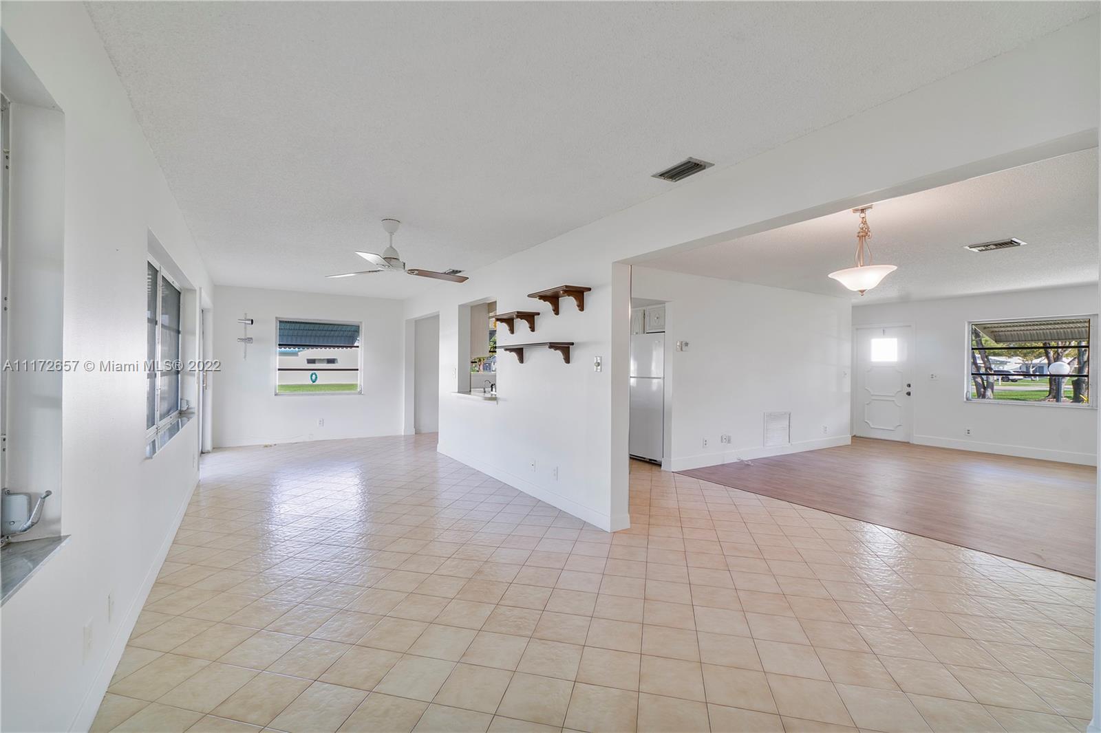Situated On An Oversized Corner Lot With Lots Of Green Space & Mature Trees For Shade, Is This 2 BR, 2 BA Spacious Home.The 1 Car Garage Also Has Bi Fold Screen For Extra Ventilation & Long Driveway For All Your Parking Needs.Large Front Porch Welcomes You To Sit & Enjoy The Peace This Community Offers! Lots Of Room For Family Gatherings In This Open & Airey Space With Lots Of Natural Lighting. Newer Laminate Flooring In Both Bedrooms, Hallway & Living Room. Original Kitchen Has Recessed Lights. Large & Spacious Backyard With Your Very Own Mature Mango Tree To Enjoy & Provides Extra Shade.Newer Roof In 2020. HOA Maintains The Roof With Repairs, Replacement & Painting. Enjoy The Many Amenities, Clubhouse, Fitness Room, Theater, 2 Heated Pools & More. Close To All Major Highways & Shopping.