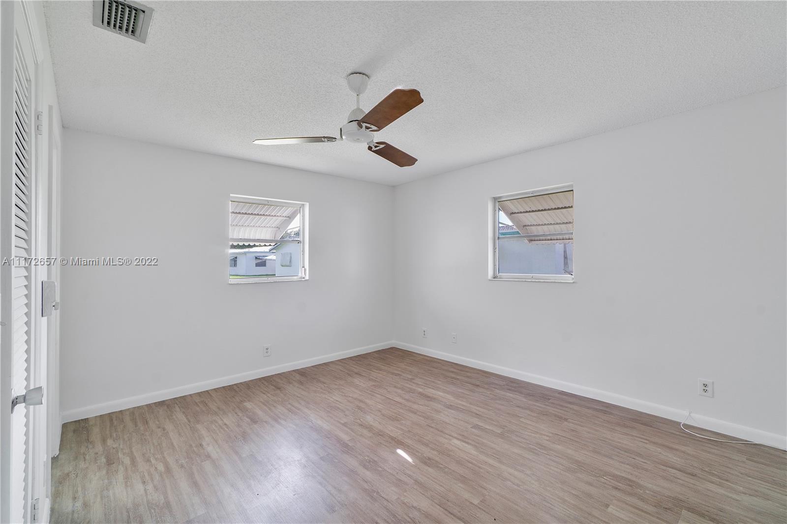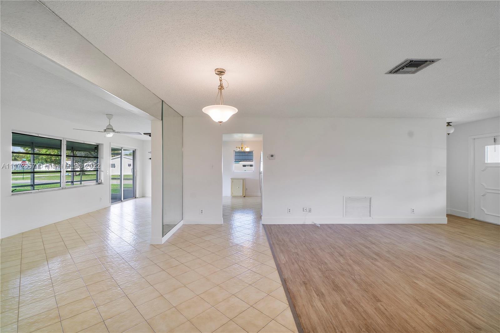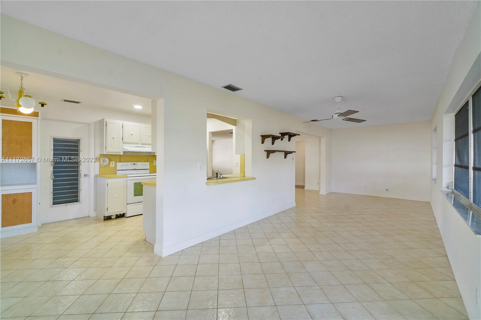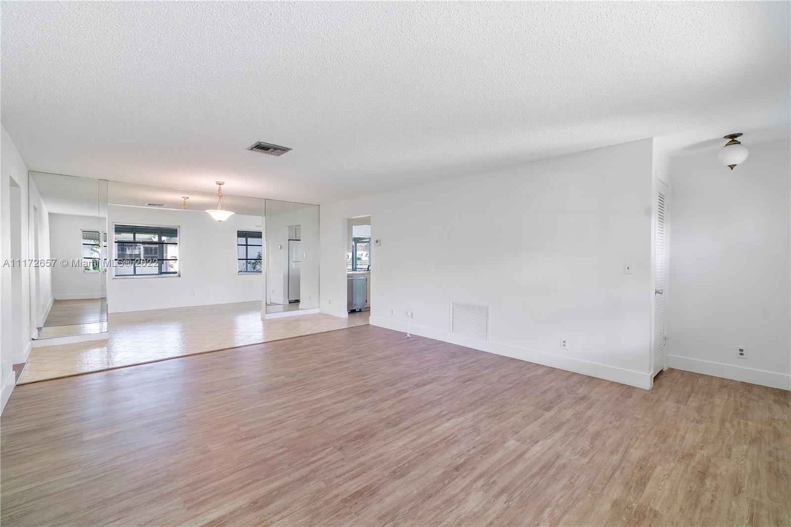 Situated On An Oversized Corner Lot With Lots Of Green Space & Mature Trees For Shade, Is This 2 BR, 2 BA Spacious Home.The 1 Car Garage Also Has Bi Fold Screen For Extra Ventilation & Long Driveway For All Your Parking Needs.Large Front Porch Welcomes You To Sit & Enjoy The Peace This Community Offers! Lots Of Room For Family Gatherings In This Open & Airey Space With Lots Of Natural Lighting. Newer Laminate Flooring In Both Bedrooms, Hallway & Living Room. Original Kitchen Has Recessed Lights. Large & Spacious Backyard With Your Very Own Mature Mango Tree To Enjoy & Provides Extra Shade.Newer Roof In 2020. HOA Maintains The Roof With Repairs, Replacement & Painting. Enjoy The Many Amenities, Clubhouse, Fitness Room, Theater, 2 Heated Pools & More. Close To All Major Highways & Shopping.