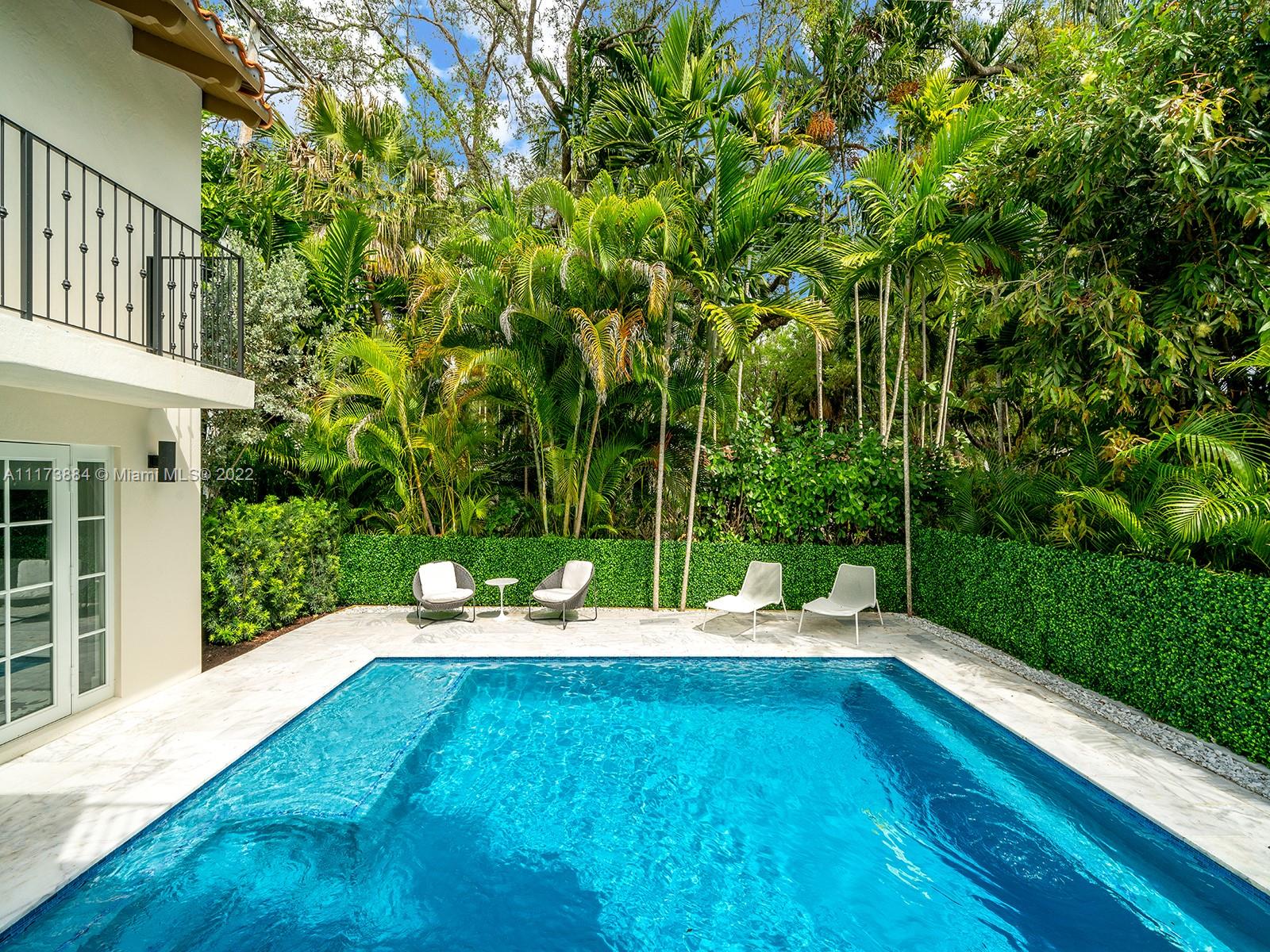 Impeccably designed turn-key 2021 new construction home in the heart of downtown Coral Gables. Natural light floods this 2-story home featuring 3 bedrooms and 2.5 bathrooms in the Main House. Separate Guest House includes 1 bedroom, full bathroom and balcony. Primary Suite upstairs with double walk-in closets and sundeck. Perfect for families and entertaining, top-of-the-line Chef's kitchen with Sub-Zero and Wolf appliances, oversized island & quartz countertop. Porcelain tiles throughout, fireplace, plus sound system, impact windows & doors and high ceilings. Family room opens to covered terrace, summer kitchen and salt water pool. Ideally located blocks from Miracle Mile, Biltmore Hotel, the best schools, golf courses, parks, restaurants and shops nestled in the heart of Coral Gables.