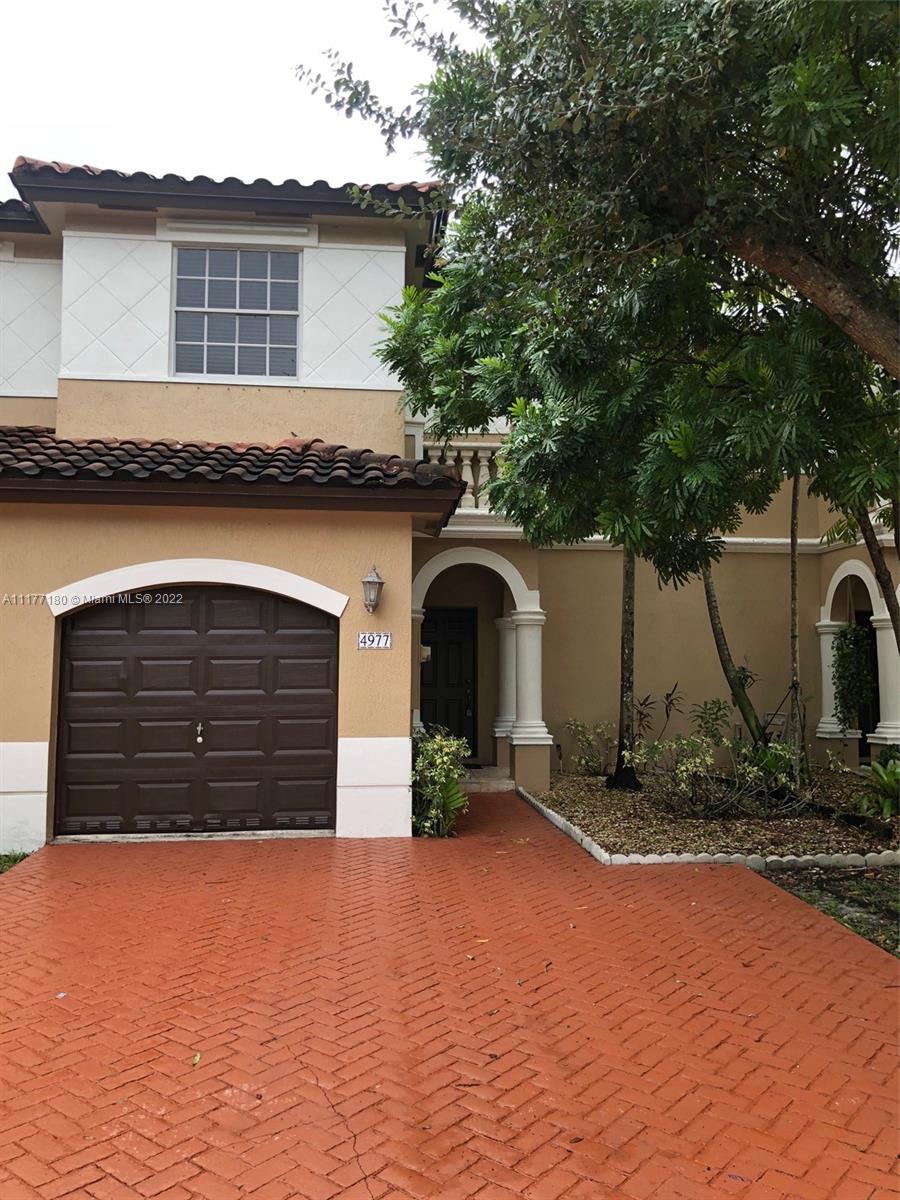 Mediterranean style townhouse 3 bed, 2.5 bath with a 1 car garage in the beautiful Bellagio Vizcaya complex. Great layout with plenty of room, ceramic tiles on the first and laminate on the second floor, nice size patio for your outdoor entertainment no neighbors on the back.