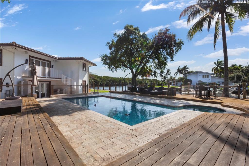 421 Ft Of Deep Waterfront Ideal For The Avid Yachtsman looking to dock a large or multiple vessels. Gated & secured estate, a point lot comprised of almost 1 full acre on the New River, no fixed bridges & across from the protected Secret Woods Nature Center. Experience the S. Florida tropical dream with breathtaking waterway views, multiple outdoor living spaces, a heated pool & spa, an oversized patio area, lanai & tremendous green space with lush foliage. This contemporary estate features an open design, soaring ceilings, a media room & gourmet kitchen opening to a large family room. The enormous primary bedroom boasts unparalleled views of the waterway, private access to the pool & spa, a seating area, spacious dressing area with custom closets & lavish bathroom. Sq ft from BCPA
