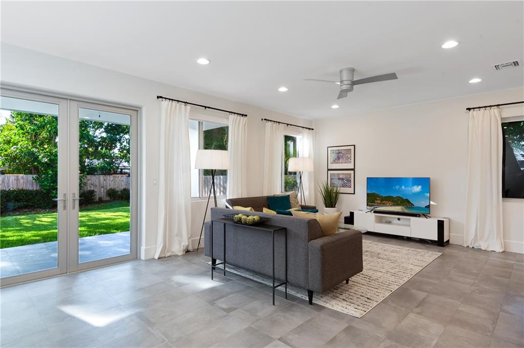 WOW!! Newer construction home! 4 bedrooms. 4 full & 1 half bath. 2 car garage. HUGE yard. Covered patio. High end finishes include porcelain tile & wood floors throughout, Italian cabinetry, quartz countertops, oversized baseboard, 8' doors, enormous laundry room, anodized aluminum frames on hurricane impact doors & windows, TONS of storage, every closet is custom & fully built out, Pull out drawers in kitchen, Solar shades on windows, walk in pantry, upgraded stainless steel banister, chefs kitchen with cooktop & wall oven, oversized island, sliding barn doors, Fenced in yard (Room for pool), custom drapes, gorgeous light fixtures & Ceiling fans, energy efficient LED lights. Bedroom with ensuite bath and private entrance on ground level. Close to Las Olas & Beach!! NO HOA!!