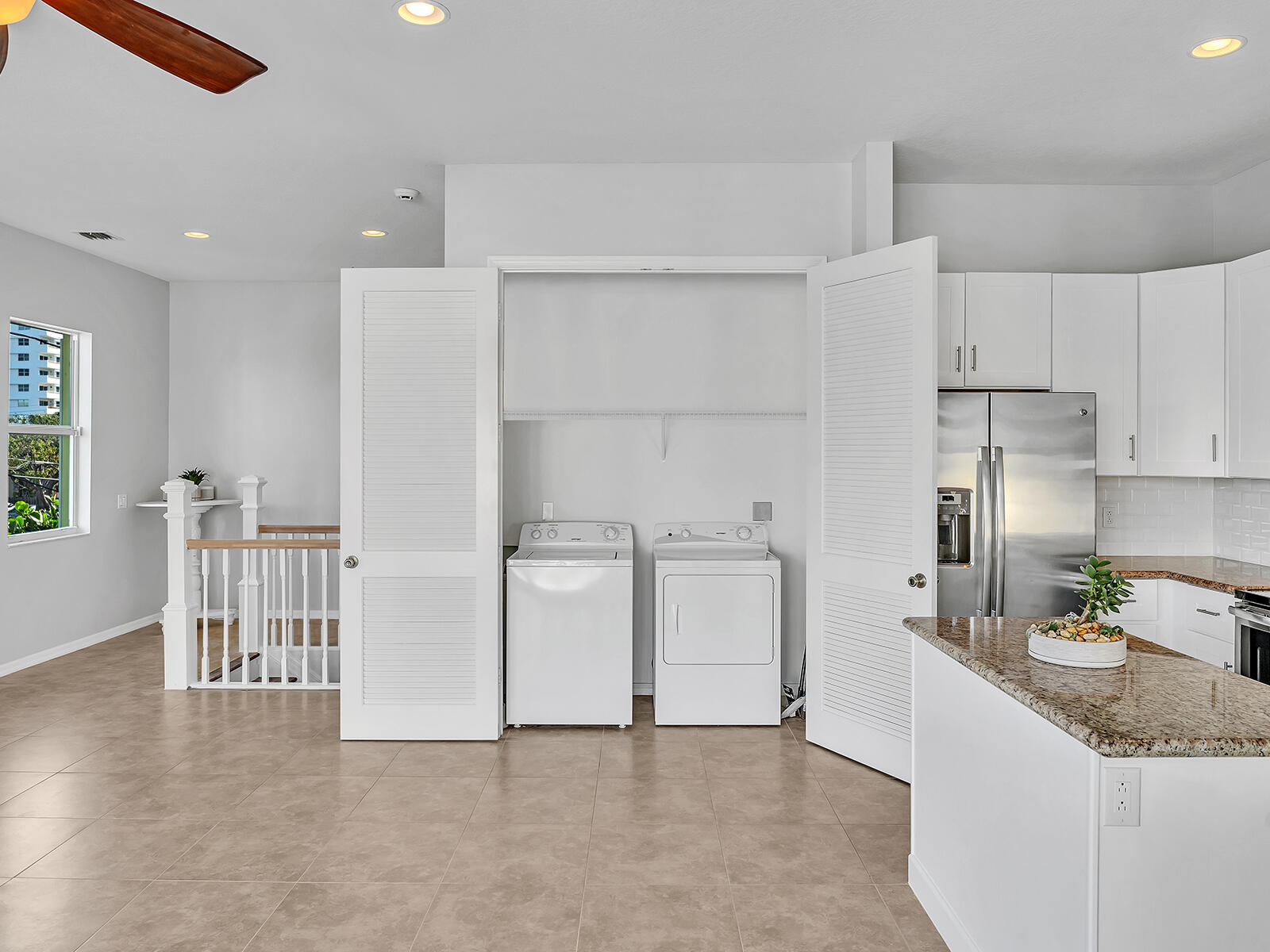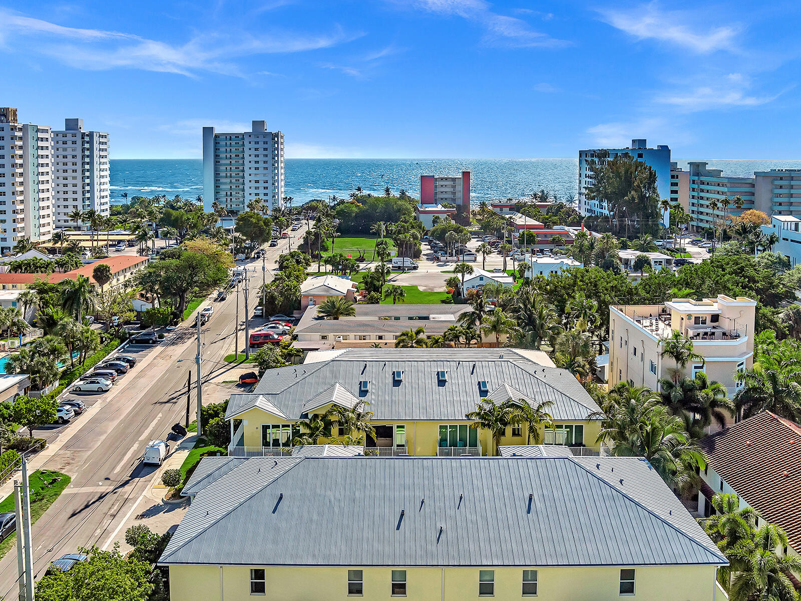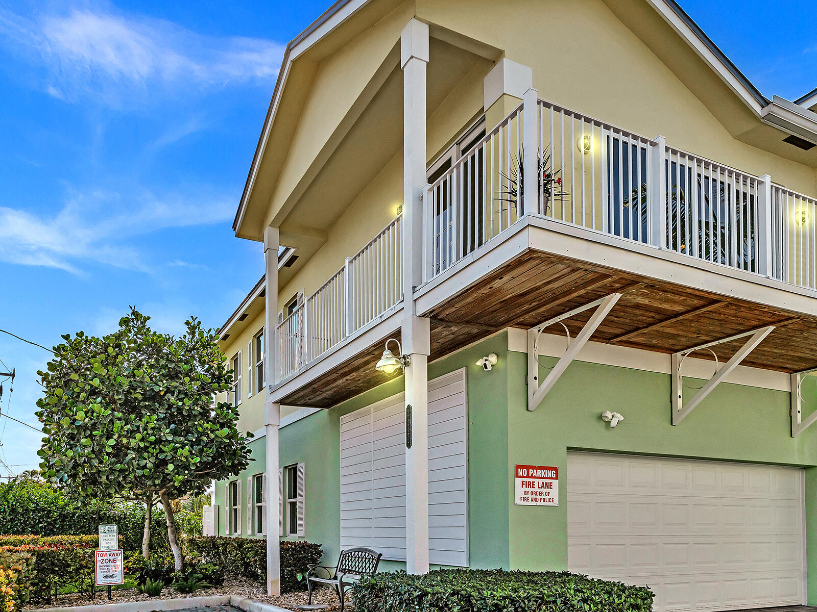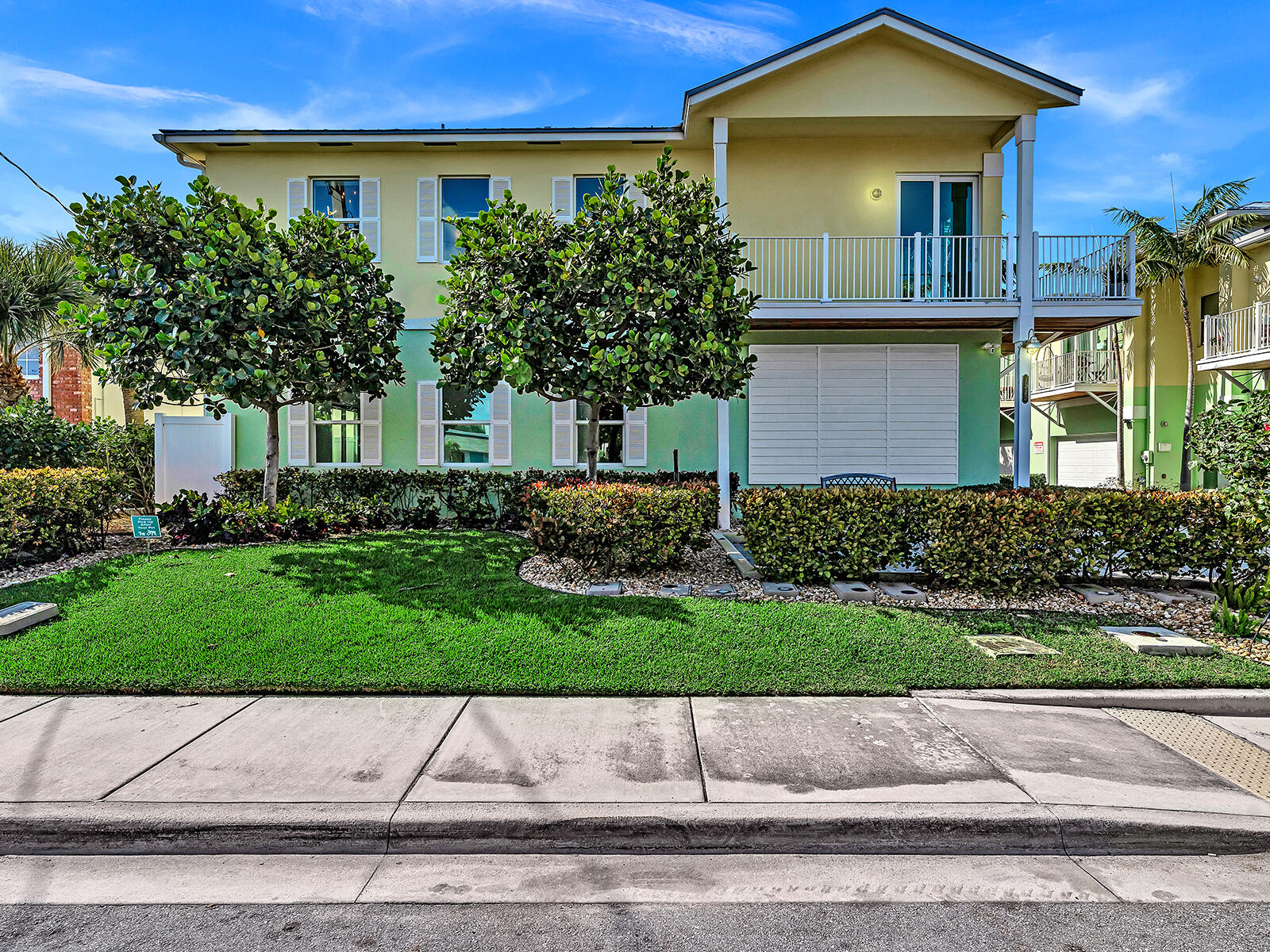 Your beach home awaits on the cozy 16th street with direct beach access! This 2014 Key West inspired townhome boasts a metal roof, impact windows/doors, and lofty ceilings. 1-block walk east to the beach, 1-block walk west to a park with intracoastal views and access to the water taxi. 3 bedrooms and 3 full bathrooms including modern gray wood-plank tile flooring in bedrooms, upgraded baseboards and a new premium stair railing. Giant 700 sq ft master bedroom, 2-stall garage, and private patio on the main floor. En-suite upstairs along with an open concept living room/kitchen. Enjoy watching the sunrise with your coffee on the wrap around balcony. Pet friendly community! Investors: lease right away, min 120 days up to 3x a year. HOA has reserves! Beach town living has never been this easy!