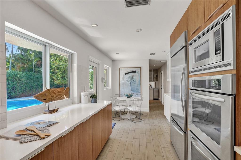 Spectacular 3 bedroom 3 bath home in the heart of Coral Ridge Country Club. Fantastic split bedroom floorplan with an abundance of natural light. Gourmet eat-in kitchen with KitchenAid appliances, quartz countertops and-glass front wood cabinetry. Features include impact windows and doors, polished Terrazzo flooring, wet bar, interior laundry room with storage and more. Lushly landscaped backyard features pool, deck plus additional grass area in front of home.