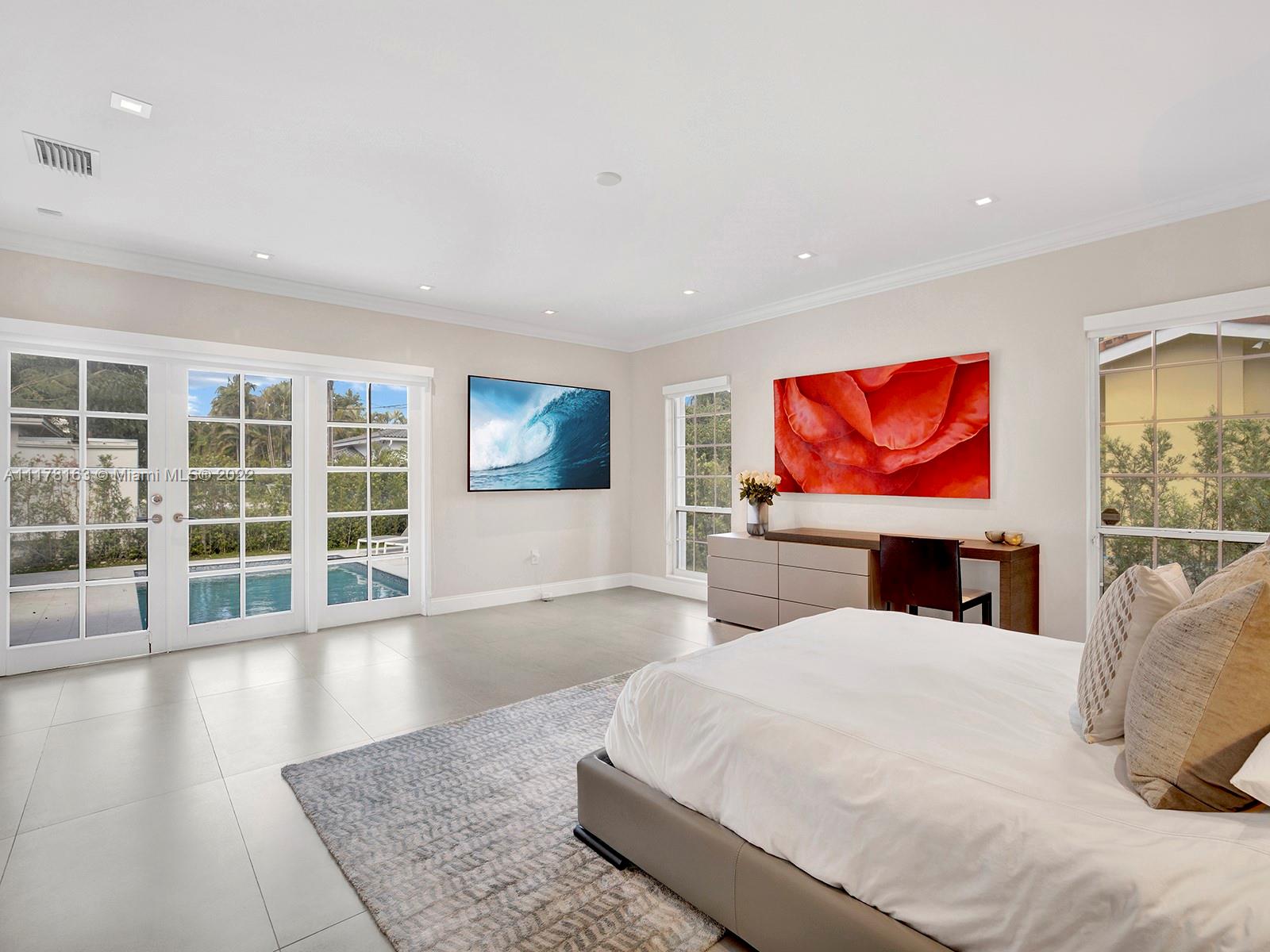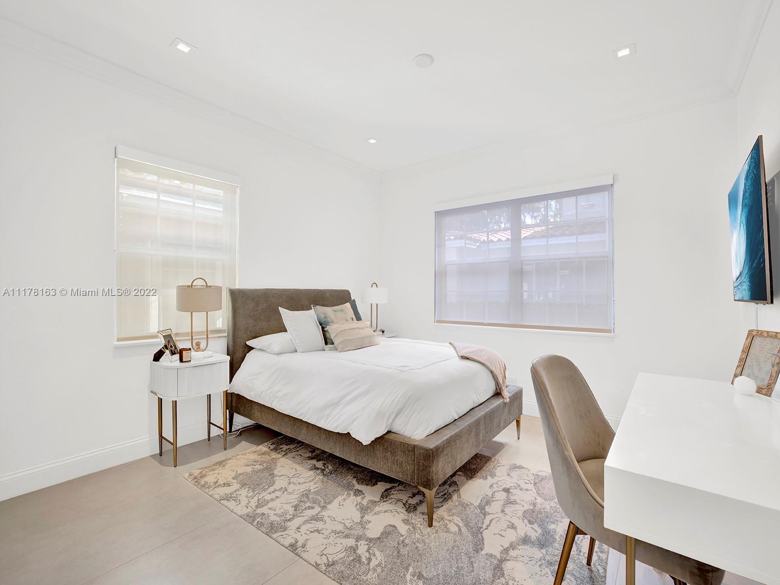 Mid-century South Gables home has incredible charm w/natural light, completely remodeled. Sits on 8,750 SF lot in a quiet tree-lined street w/2,669 adj sf containing a split floor plan of 3 beds/3 and 1/2 baths. Open Kitchen w/ top of the line appliances. Step out through French doors to patio and a brand new pool. Spacious master wing addition w/marble floors overlooks the patio and pool. Master bath boasts walk-in his/her closets, dual vanities, shower and separate tub. Brick driveway leads to 2 car garage. Electrical has been updated / lights through out the house. House has being tastefully renovated w/ modern design in 2021. Custom built-ins & good storage space with Air condition. Shutters. Central location close to UM & Sunset Place. New roof, New septic tank and drain in 2018.