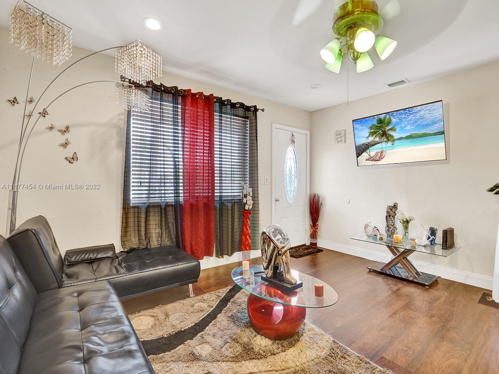 Come see this magnificent Single-Family home in the lovely neighborhood of Hialeah, Fl. (NO HOA) This home has 4 bedrooms/3 bathrooms plus a den/office. Roof replacement (2014), A/c Unit (2019) Tiki Hut (2020) Front electric fence new motor (2020). Upon entering this home, you are welcomed by a large open concept wood laminate open floorplan with a luxurious gourmet kitchen (quartz counter tops, island, wall oven & stainless-steel appliances). Most rooms are very spacious enough to fit a king bed & more. Exit out the back, to an extremely large patio (new privacy 6ft fence) with 5 fruit trees, a stunning tiki hut & a screened in porch. Additional items that will be staying (3 refrigerators, a/c mini split, bar, 2 vinyl storage, 1 metal storage & large pool 15x48. HURRY! Won't last long!