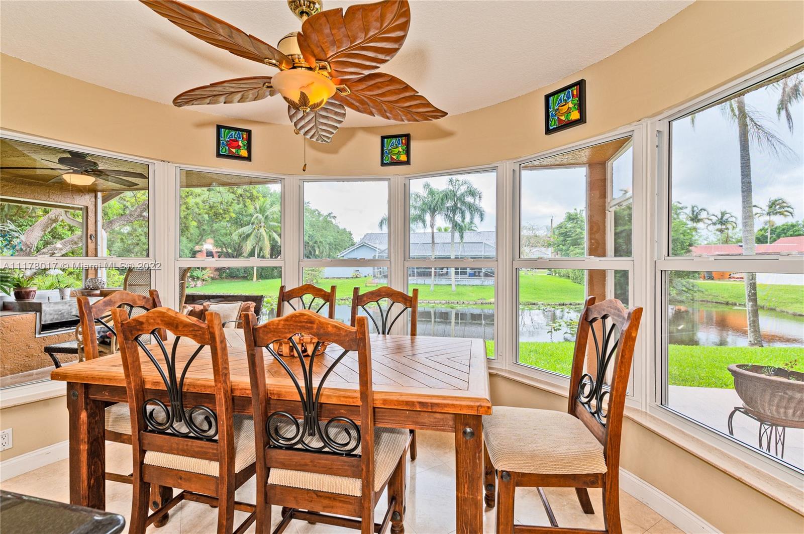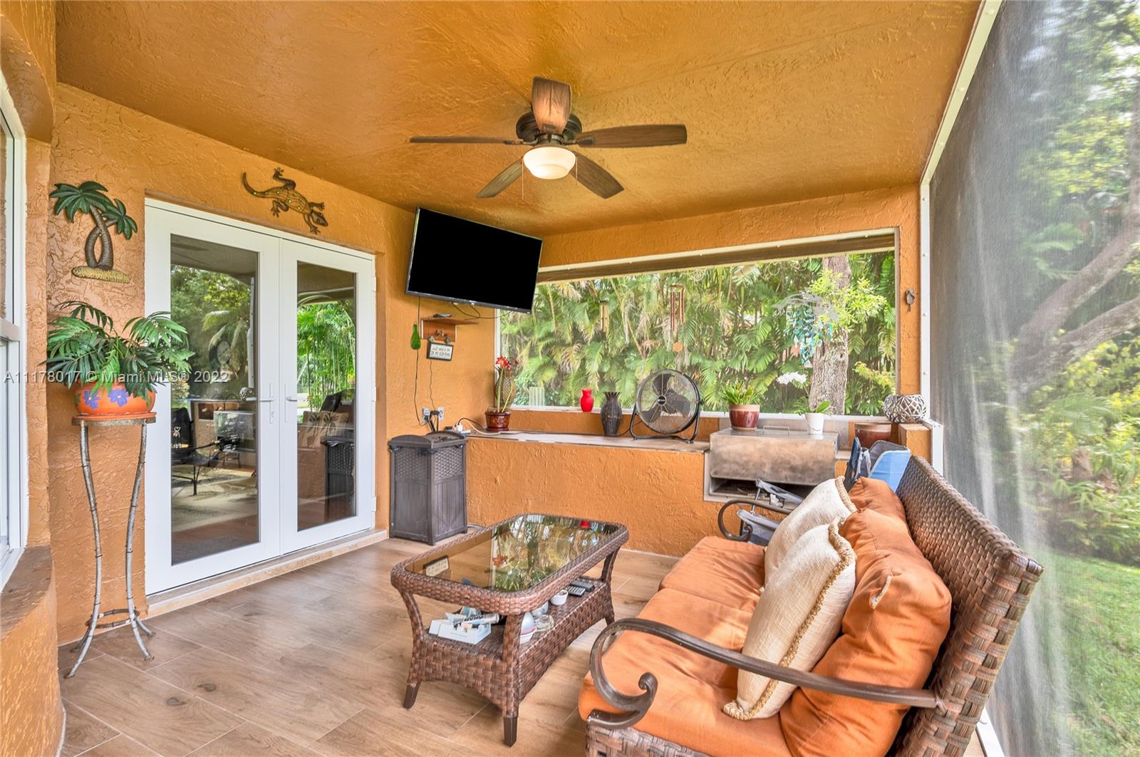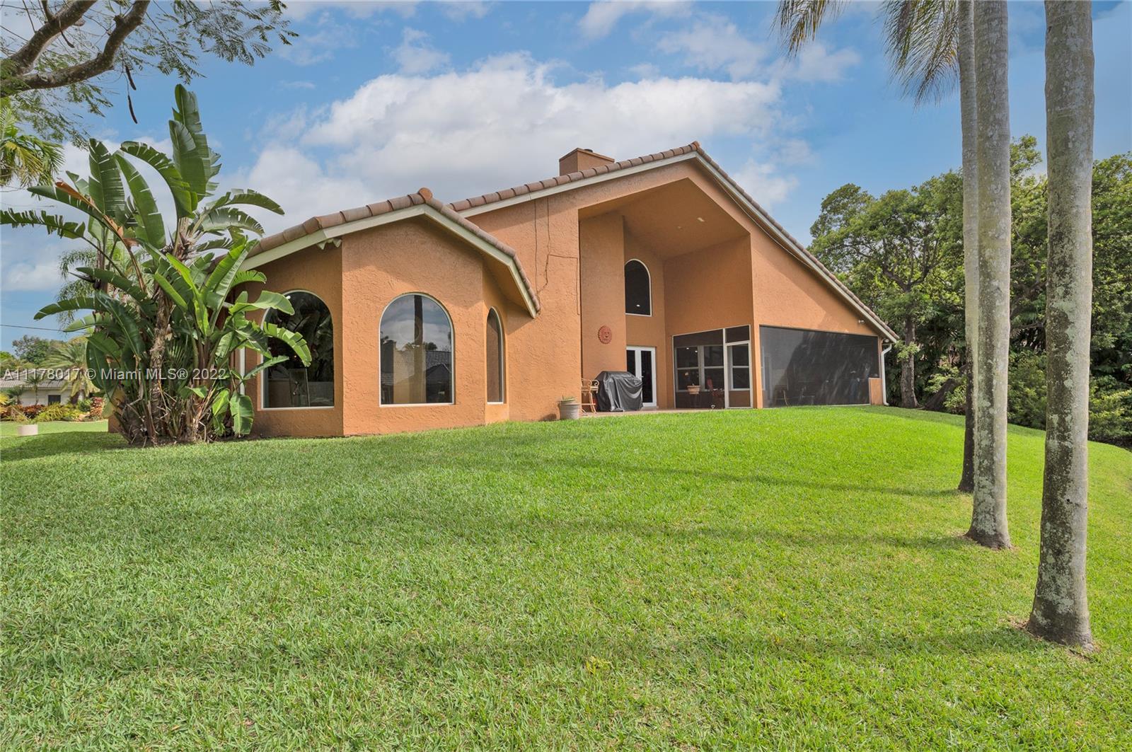 This hidden GEM is centrally located on a quiet street in Plantation Acres. In addition to a great location the home is tastefully updated. Newly installed impact windows throughout the entire home, split floor plan, spacious kitchen, this 3 bedroom 2.5 bathrooms is very open and bright with vaulted ceilings. Crushed Coral stone fireplace in the Family room and plenty of room for a pool overlooking the pond in the backyard. No mandatory HOA.
