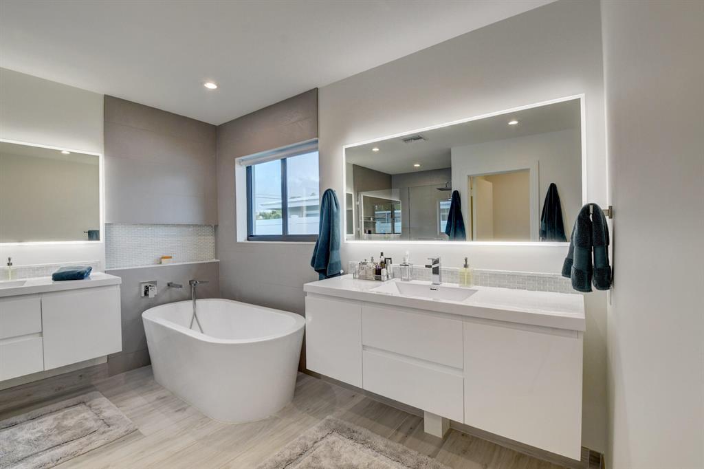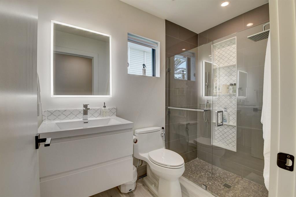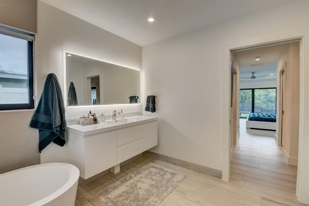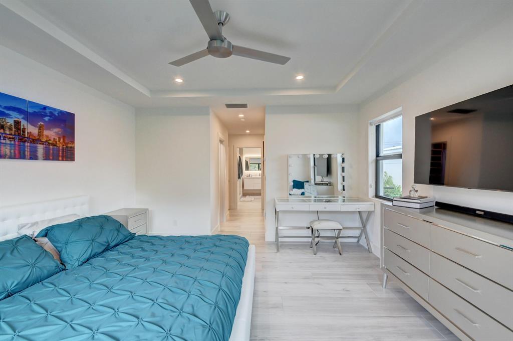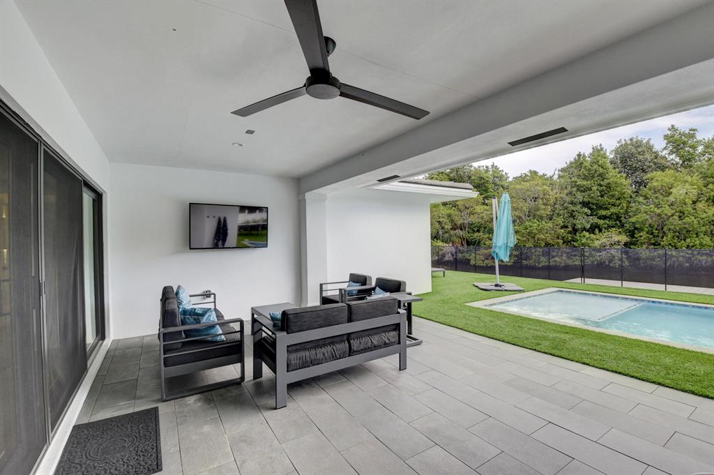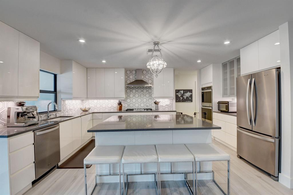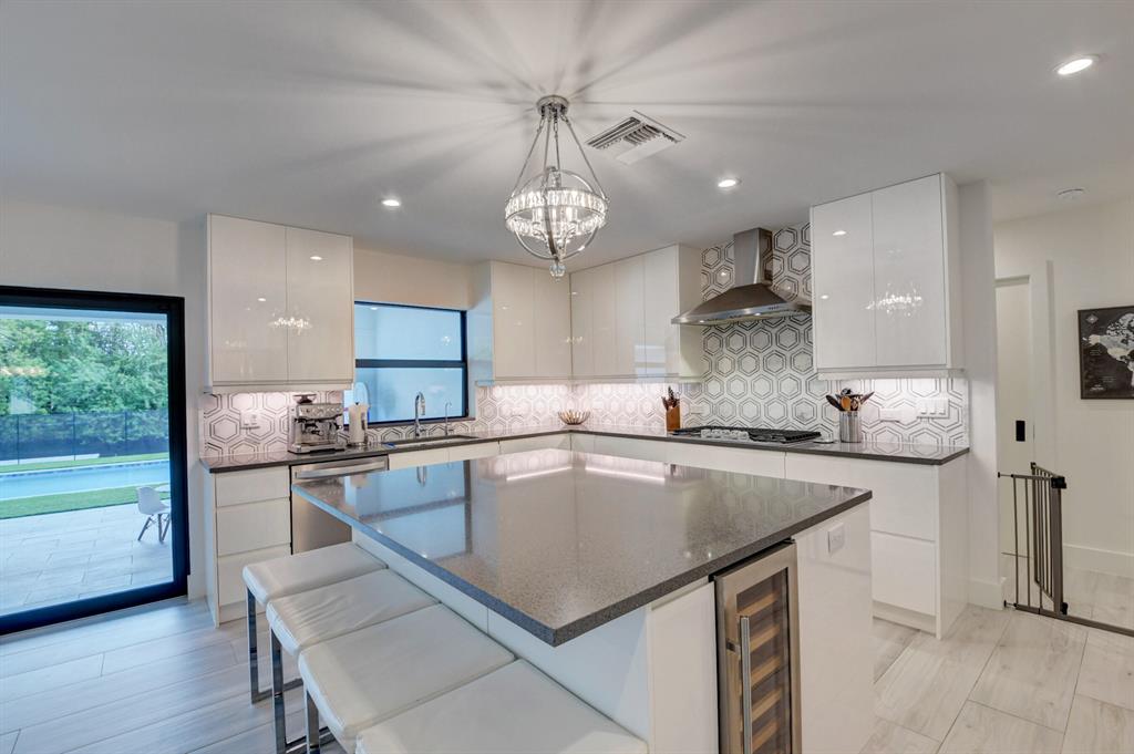 Completely customized and rebuilt in 2019, you will fall in love from the moment you walk into this open, light, bright, modern home. This 4/3.5 plus den pool home overlooks the El Rio waterway that leads to ocean access. The new approximate 40 foot composite dock with a raised, reinforced retaining wall is perfect for any boater. The nature preserve across the waterway provides privacy, as well as, attracts lots of birds and wildlife to enjoy watching from your backyard or large covered patio. The island kitchen offers European white cabinetry to the ceiling with soft close and glass doors, quartz countertops with a marble backsplash. The floor plan is a 3-way split with the master bedroom on the back of the house overlooking the waterway.