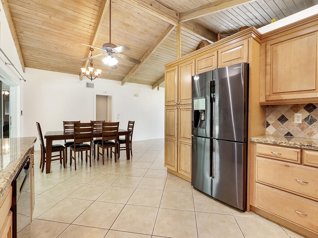 Be ready to love the mid century 4 bedroom 2.5 bath home. The spacious split design and the great room with vaulted wood beam ceiling in the great room makes this perfect. The heated pool/patio is fully screened. It offers sun and shade with a nice sized covered patio to enjoy your Florida lifestyle. This home is hurricane proof with impact windows and impact garage door. The kitchen has granite countertops, new stainless steel appliances and pull out shelves in the pantry. Other upgrades include digital sprinkler that uses an app, brand new circular driveway and new landscaping. The home has a gas range, hot water heater, dryer and new gas meter. There is plenty of room for all of your toys with a nice sized side/backyard with room for a playset, pets and oversized garage.