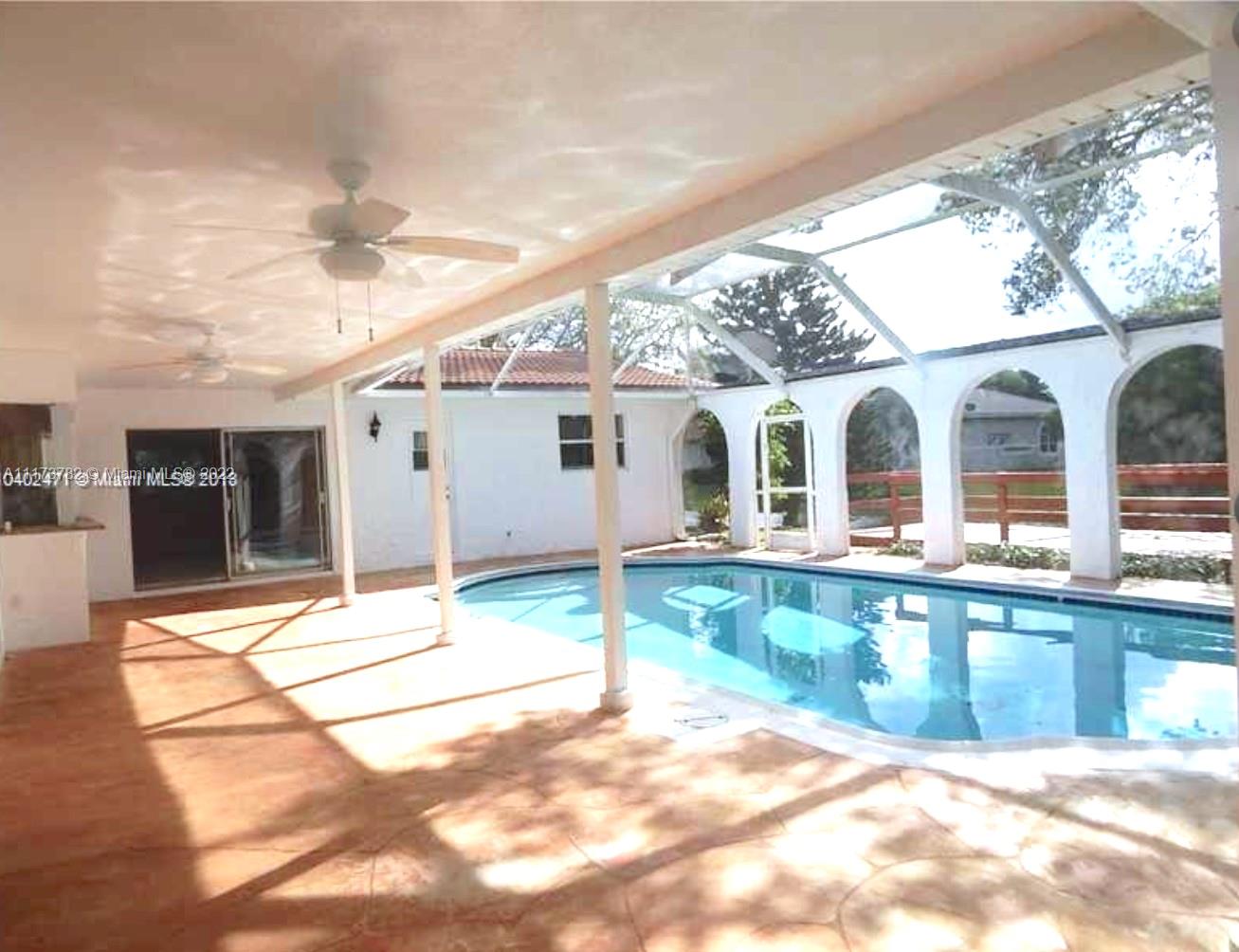 HAVE BOTH WORLDS SERENE CANAL VIEWS FROM THE BACK OF THE HOUSE & ENDLESS GOLF COURSE VIEWS FROM FRONT. HOME FEATURES- 4 BEDRS 2 BATH POOL HOME ON OVER A 1/3 OF AN ACRE. SPACIOUS OPEN FLOOR PLAN TRIPLE SPLIT BEDR PLAN, TILED THRU-OUT IN NEUTRAL COLOR, TEXTURED WALLS, RECESSED LIGHTING, WHIRLPOOL TUB IN 2ND BTH, KITCHEN UPDATED WITH CUSTOM WOOD CABINETS, GRANITE COUNTERS & PASS THRU SERVING BAR FOR OUTDOOR ENTERTAINING, SCREEN IN PATIO OVERLOOKING THE LAKE. NO ASSOCIATION APPROVAL READY TO MOVE IN. Tenant in place till June 1, 2022