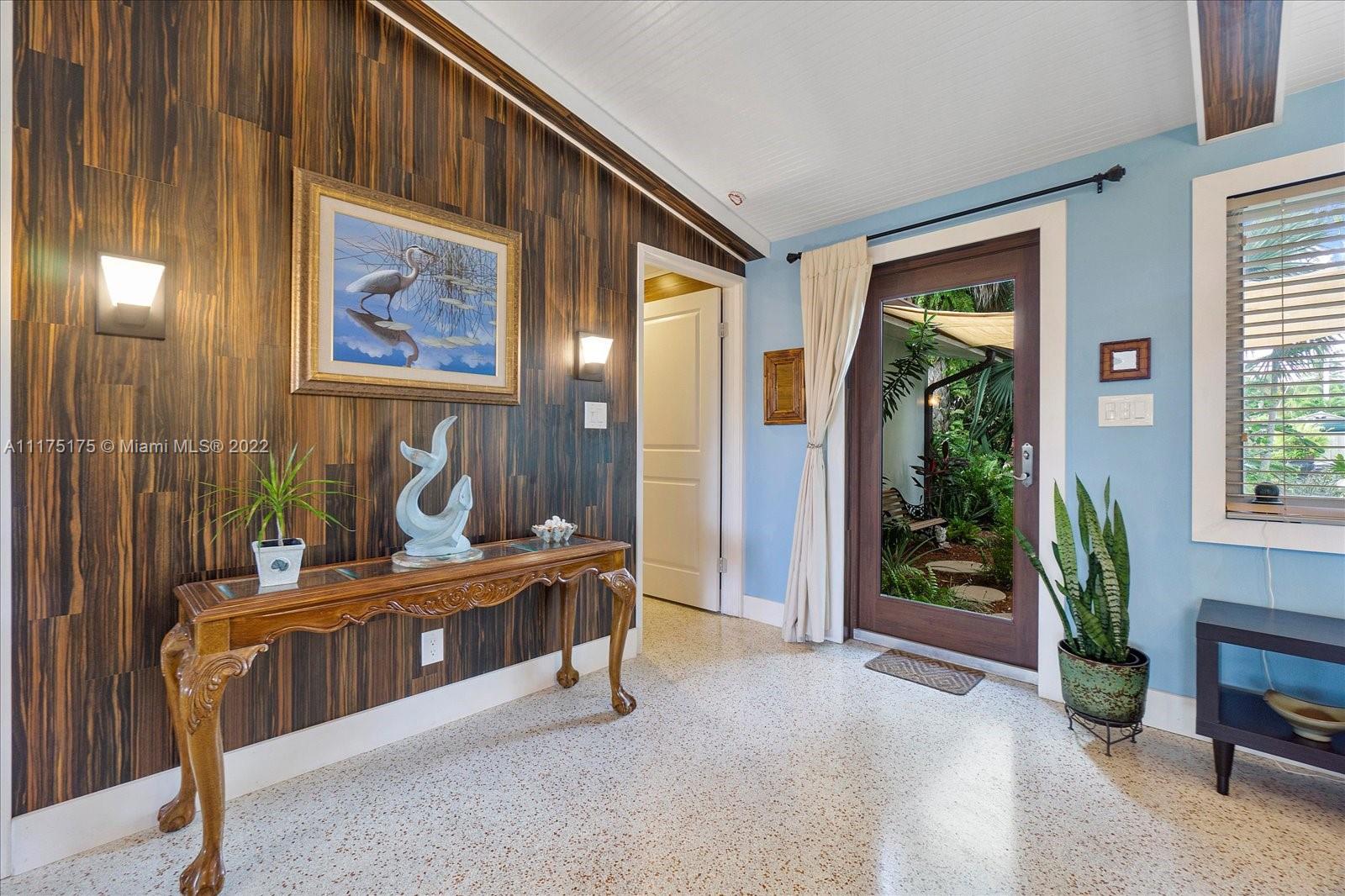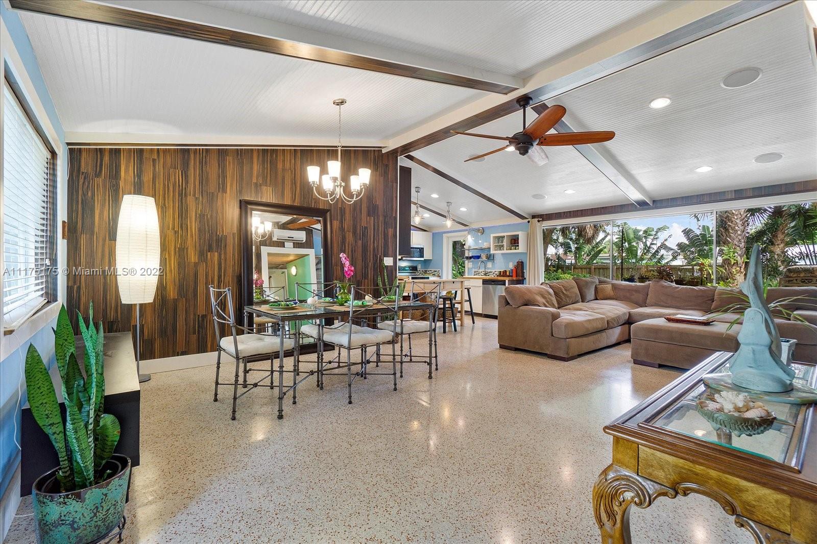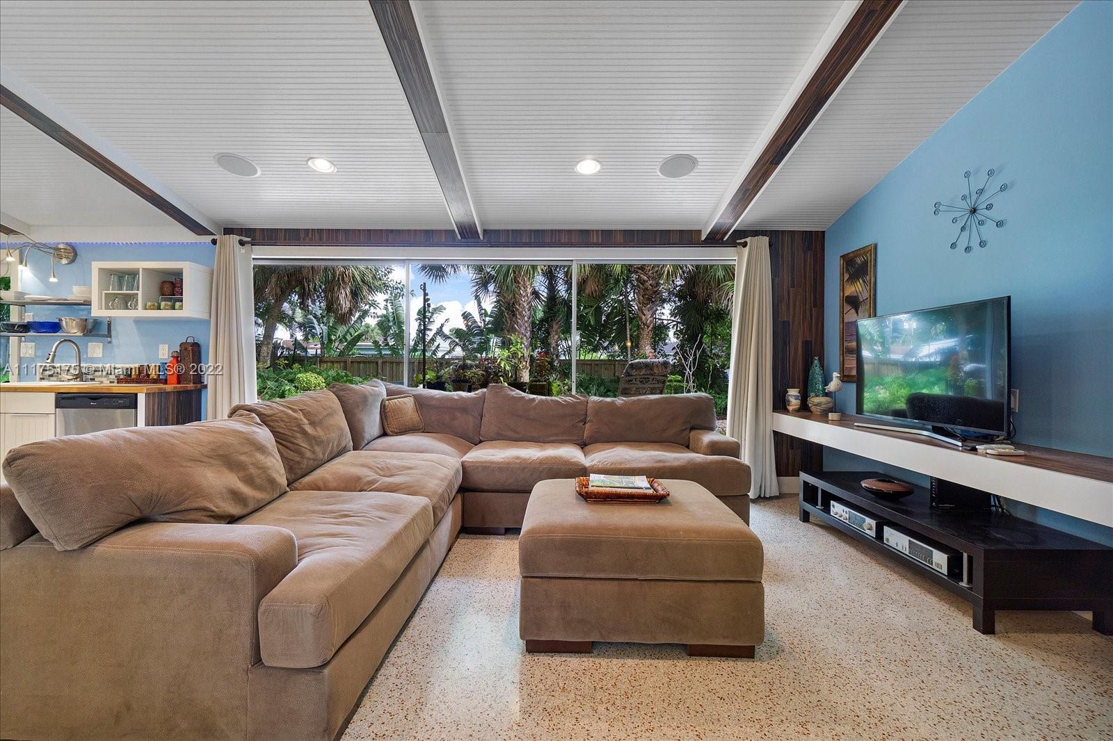 Mid-Century Modern 3 bedroom, 2 bath home lovingly remodeled in desirable Gill Isles. Nestled on a tree lined cul-de-sac street on the New River with lush tropical foliage. The backyard is big enough for a pool and a boat or just enjoy your park-like setting with an outdoor sink, potting area, and shed. This home has vaulted ceilings, recessed lighting, original terrazzo floors, and stainless-steel appliances all in an open great room. There is an integrated system pre-wired for audio, internet, cable and security with a central distribution panel and dedicated outlets throughout. Energy efficient IMPACT windows and doors with newer AC splits and a metal roof with R30 insulation help keep the electrical costs low even in the hot summers. East of 95 and minutes to the beach.